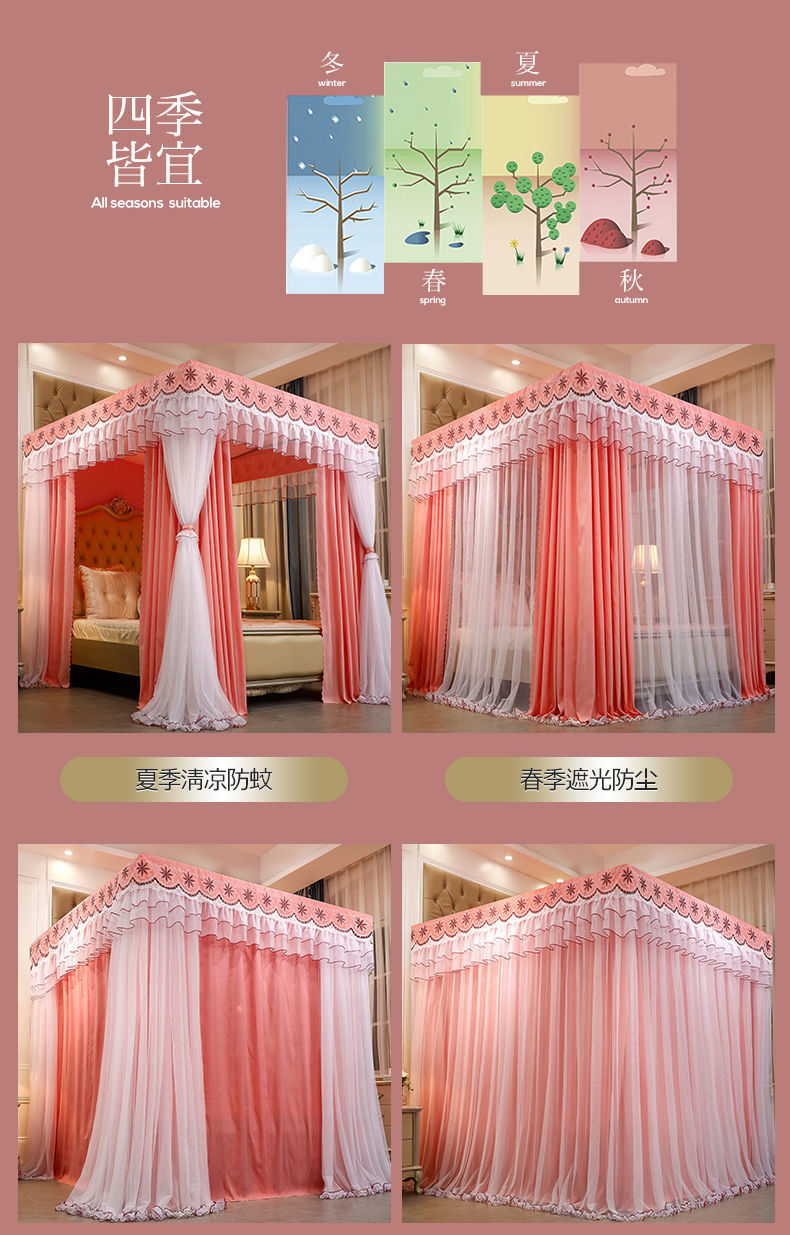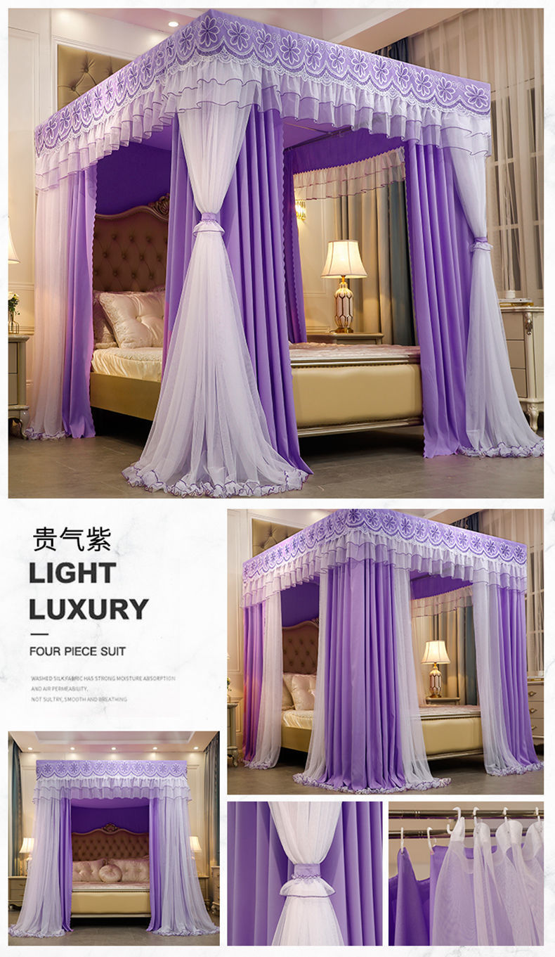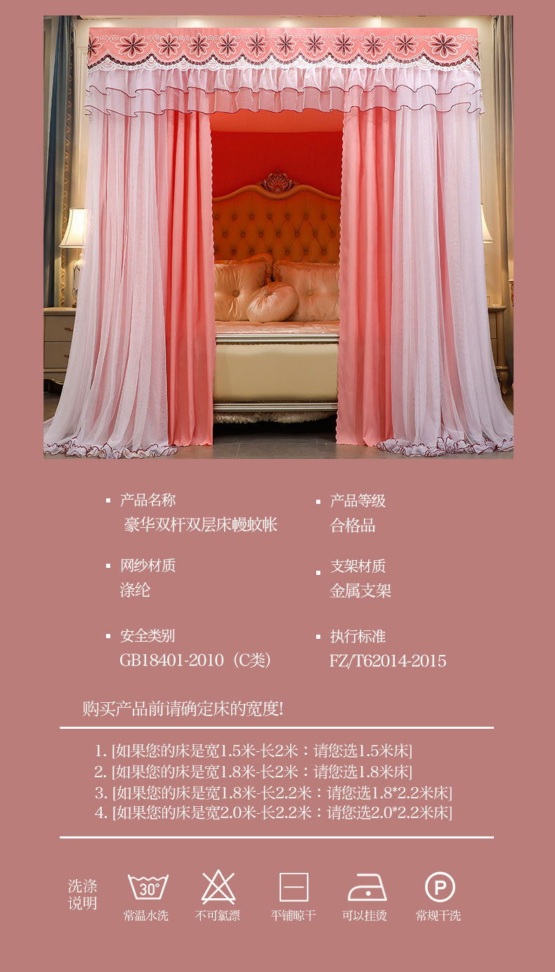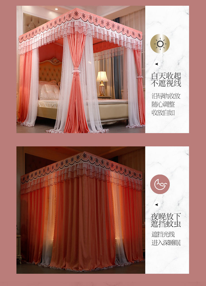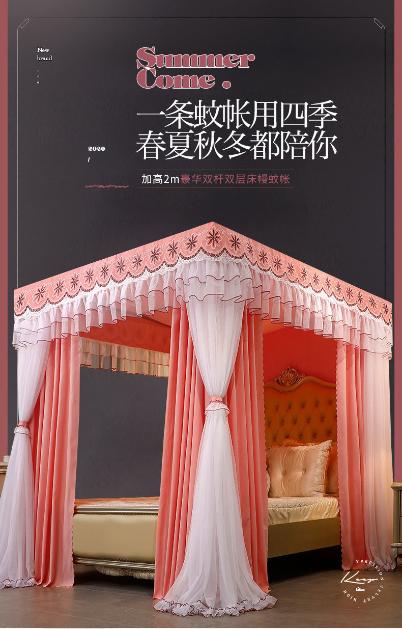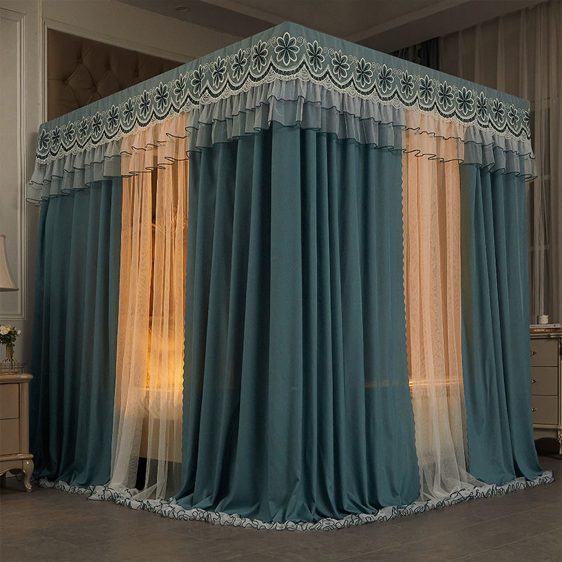 새로운 모기장 공주 스타일 하이 엔드 침대 커튼 브래킷 더블 로드 더블 레이어 차광 방진 방풍 따뜻한 바닥스토어 가기