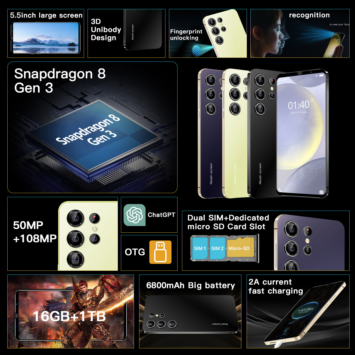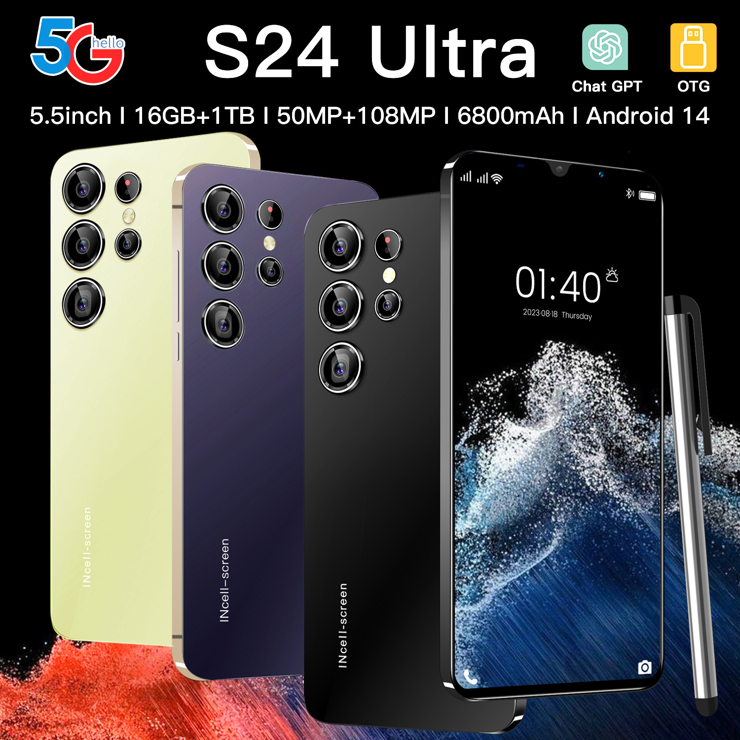 국경 간 휴대 전화 5.5inch S24Ultra 재고 있음 1+8G 저렴한 가격 핫 모델 안드로이드 스마트 폰 제조 업체 도매스토어 가기