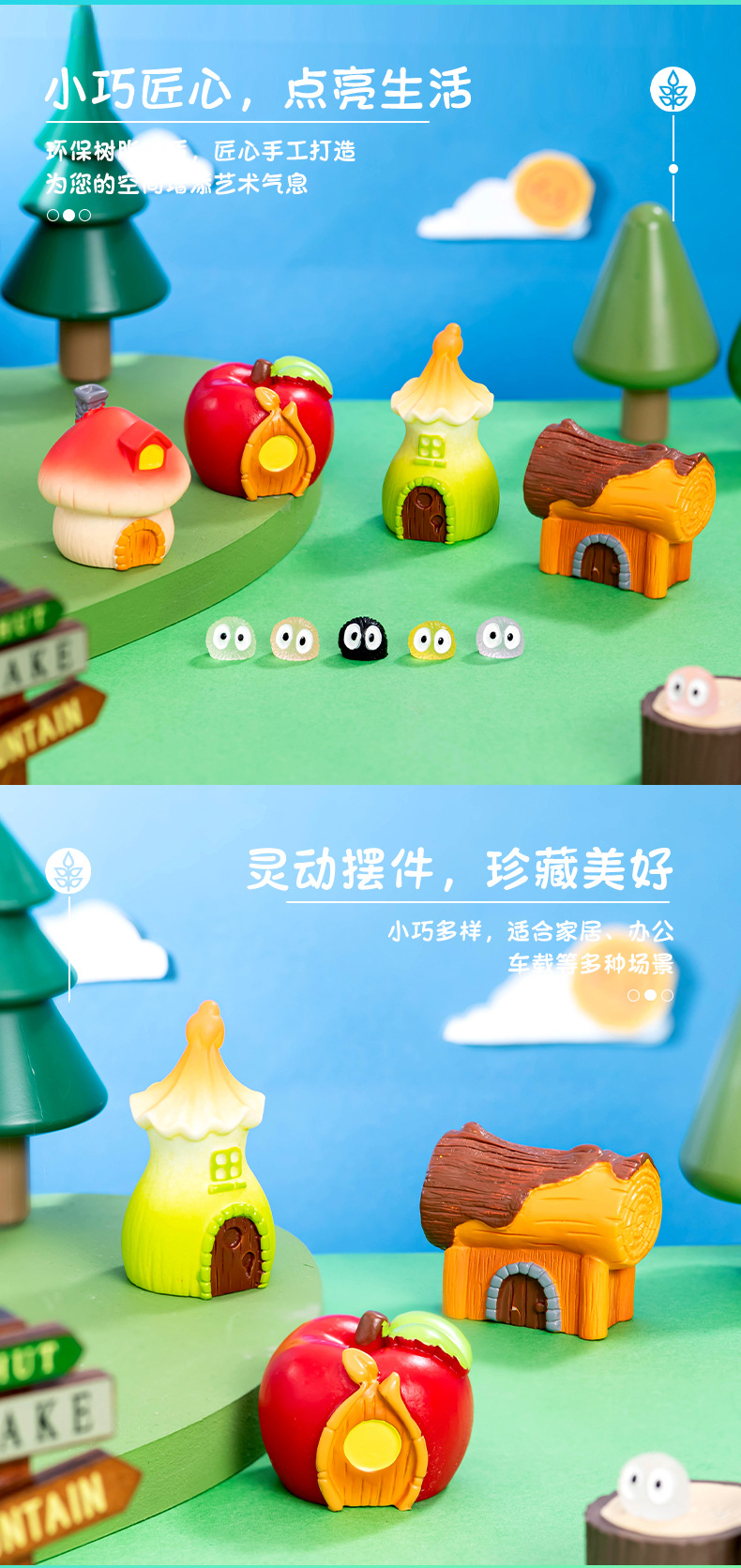 마이크로 풍경 창조적 인 동화 코티지 버섯 사과 집 수지 공예 DIY 데스크탑 인형 집 장식 장식품스토어 가기