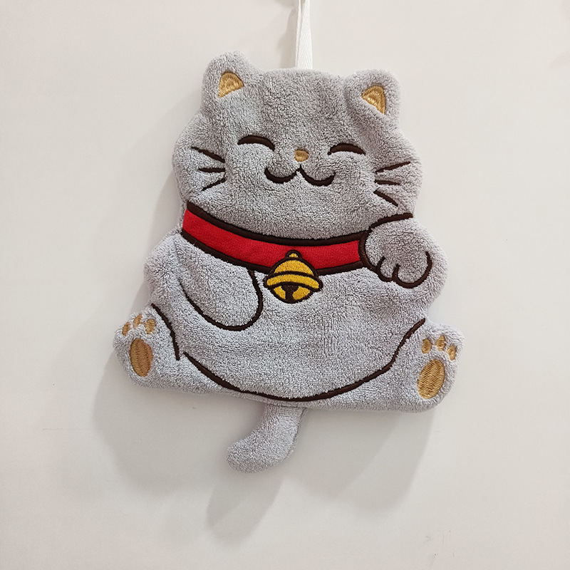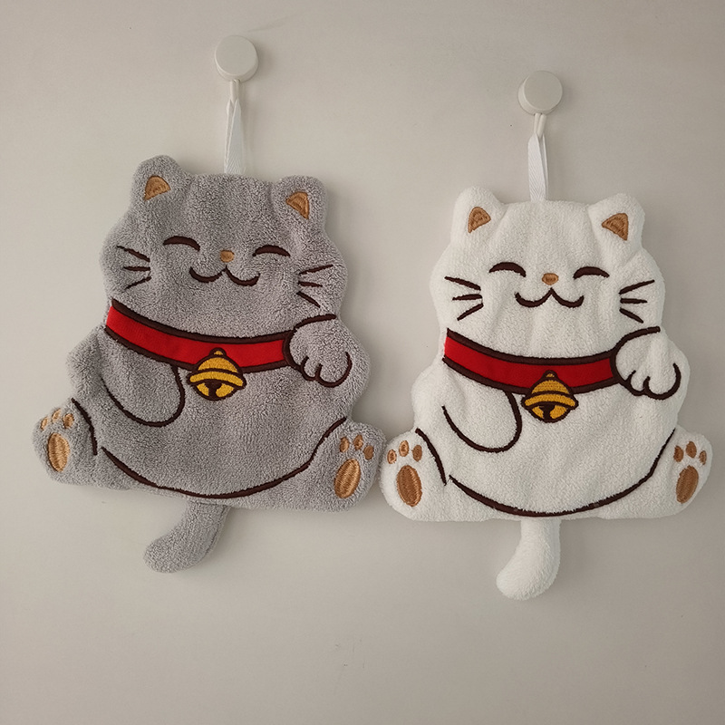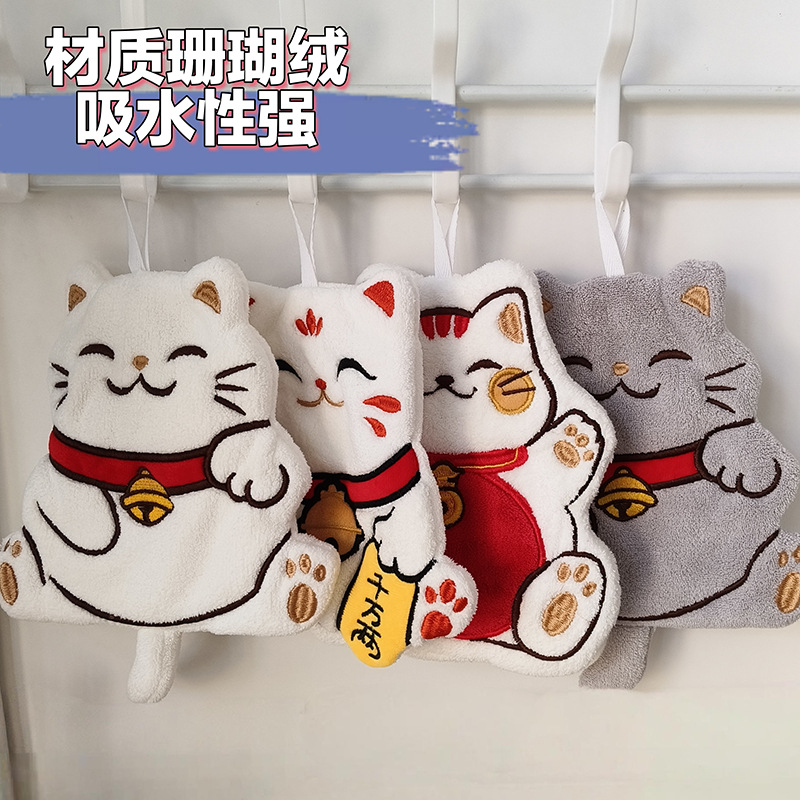 제조 업체 도매 두꺼운 행운의 고양이 산호 벨벳 만화 스타일 교수형 핸드 타올 주방 욕실 어린이 수건스토어 가기