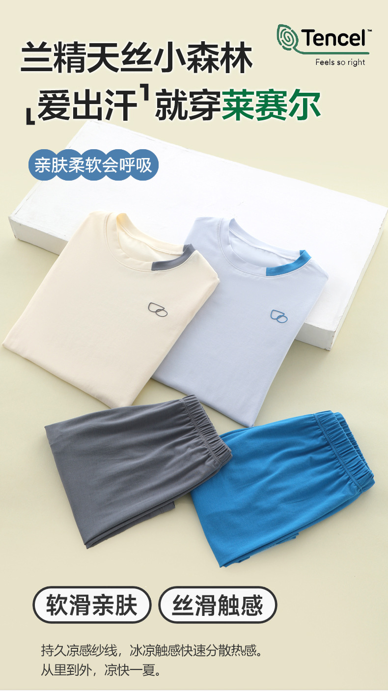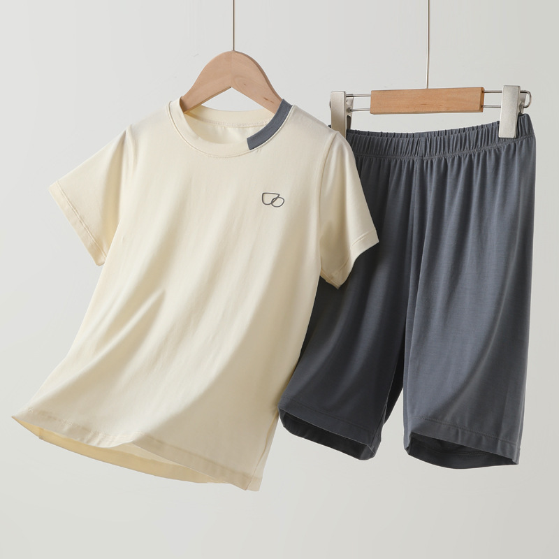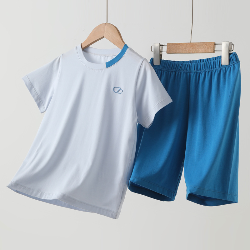 어린이 홈웨어 세트 여름 남아 반팔 잠옷 라이오셀 A급 얇은 에어컨 의류 남아 티셔츠 세트스토어 가기