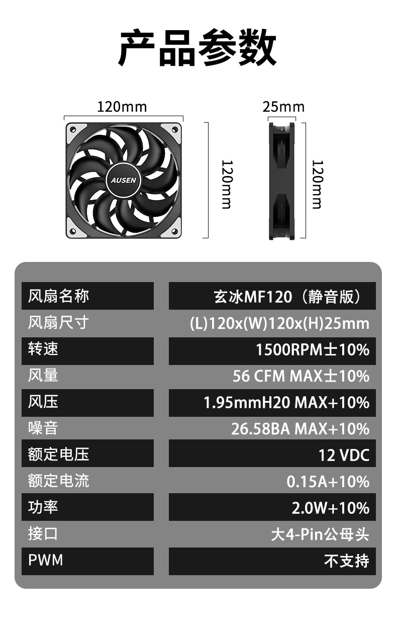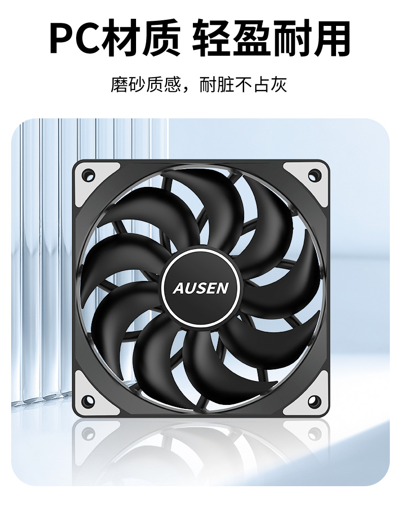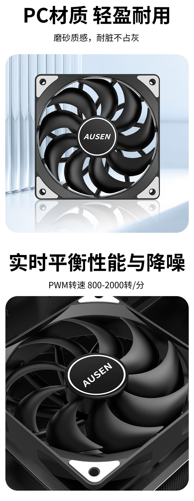 AUSEN MF12CM 무광 팬 PWM 온도 조절 무소음 대용량 2000 rpm 냉각 팬