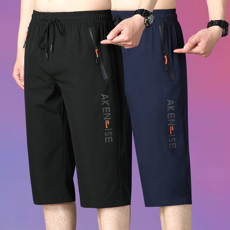 고급 아이스 실크 자른 바지 남성용 느슨한 캐주얼 반바지 남성용 빠른 건조 바지 느슨한 스트레이트 트렌디 자른 바지 중간 길이 바지스토어 가기
