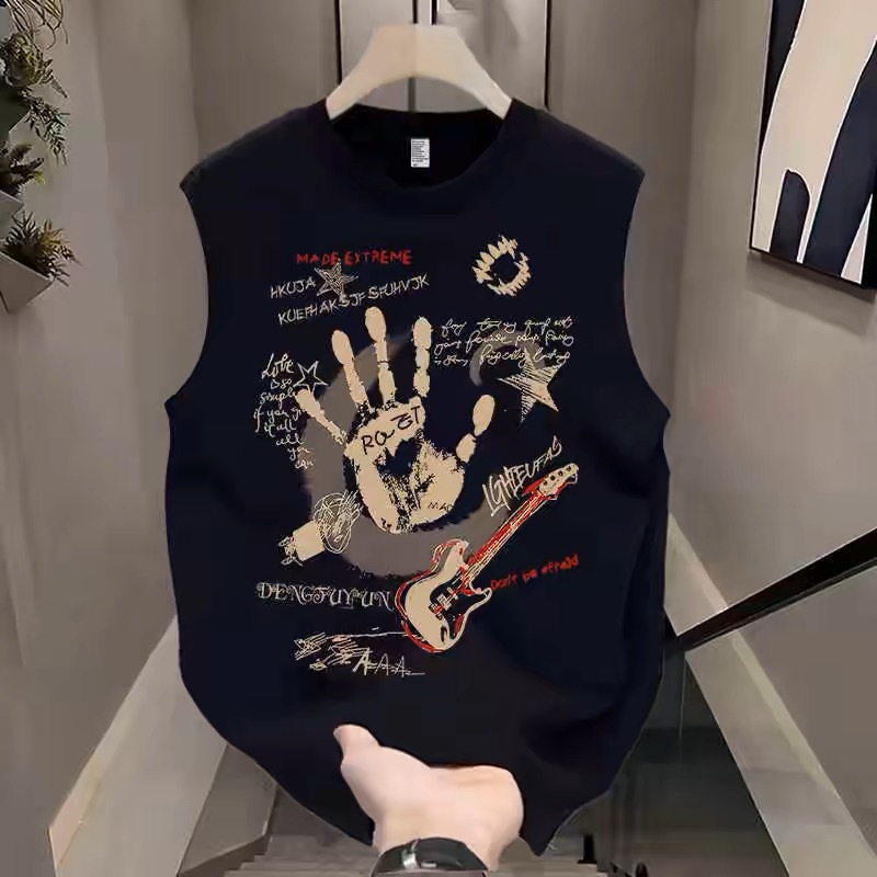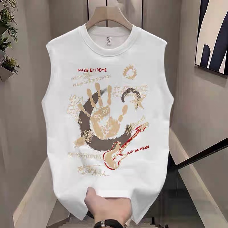 미국 트렌디 브랜드 민소매 티셔츠 남성 조끼 여름 느슨한 피트니스 의류 소년 순수 코튼 스포츠 및 레저 조끼