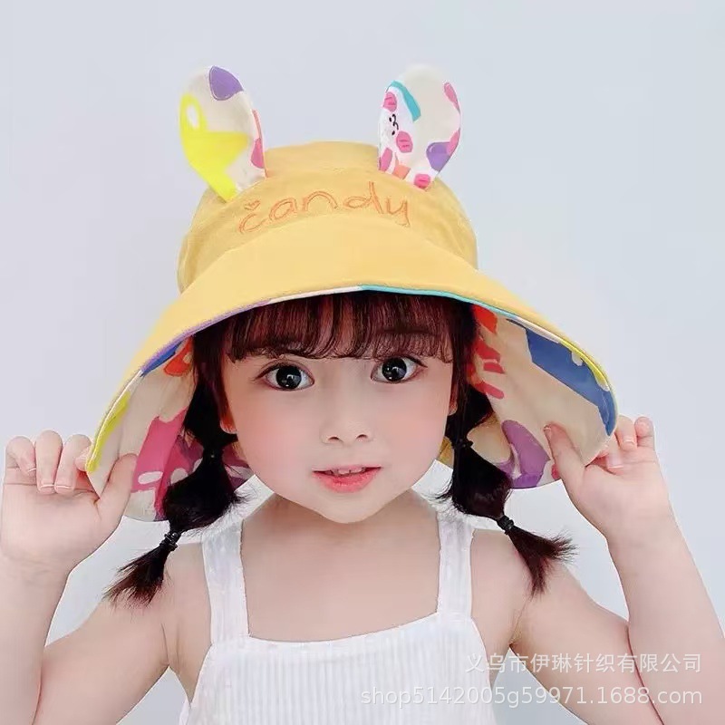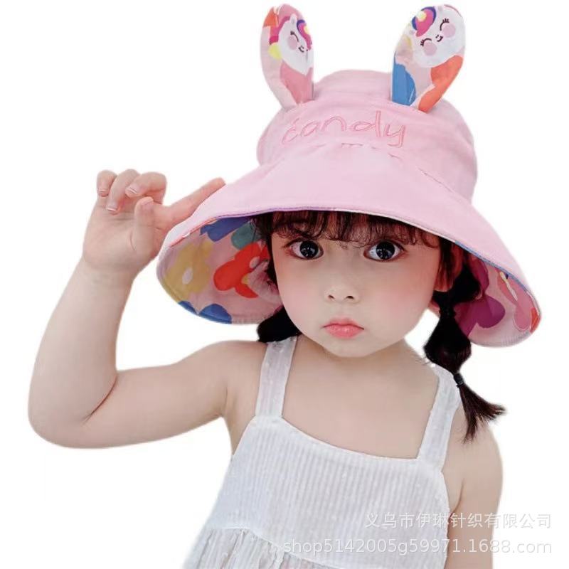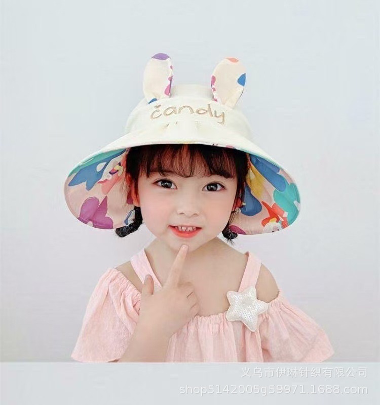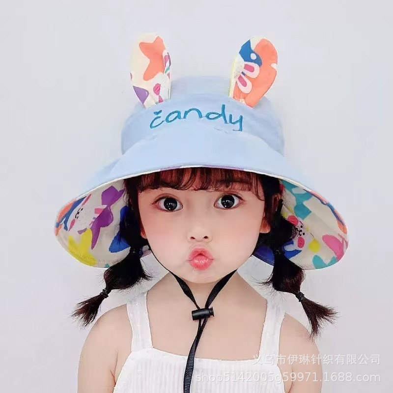 어린이 여름 얇은 달콤한 작은 공주 토끼 귀 아기 소녀 안티-UV 빈 탑 햇빛 큰 처마스토어 가기