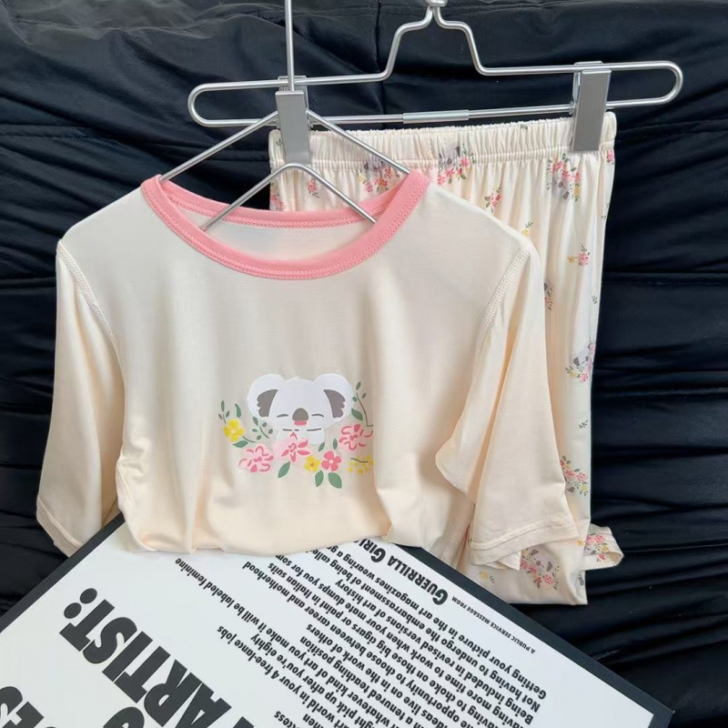 Yukosi Boneless 어린이 얇은 7부 소매 잠옷 세트 남성과 여성의 만화 라운드 넥 속옷 홈 의류스토어 가기