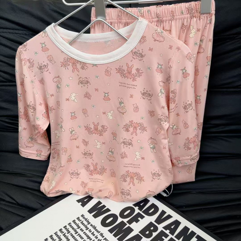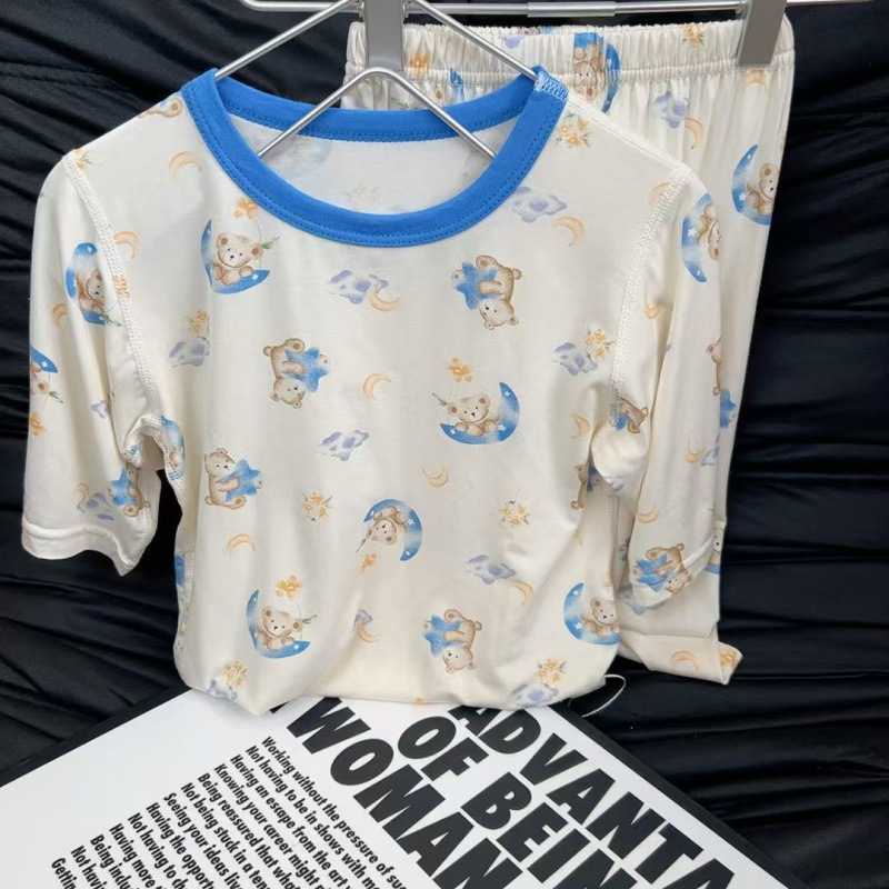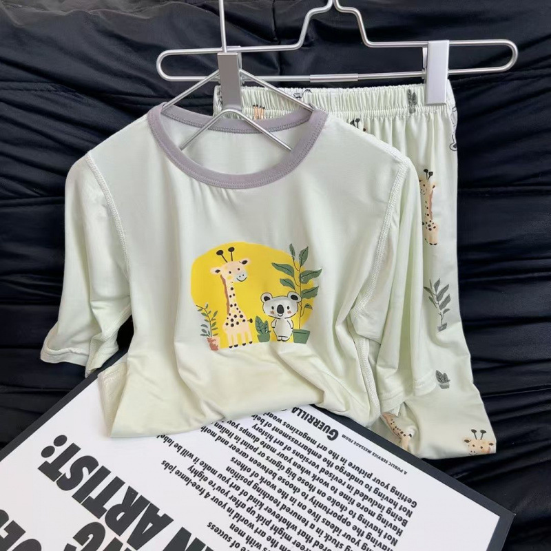 Yukosi Boneless 어린이 얇은 7부 소매 잠옷 세트 남성과 여성의 만화 라운드 넥 속옷 홈 의류