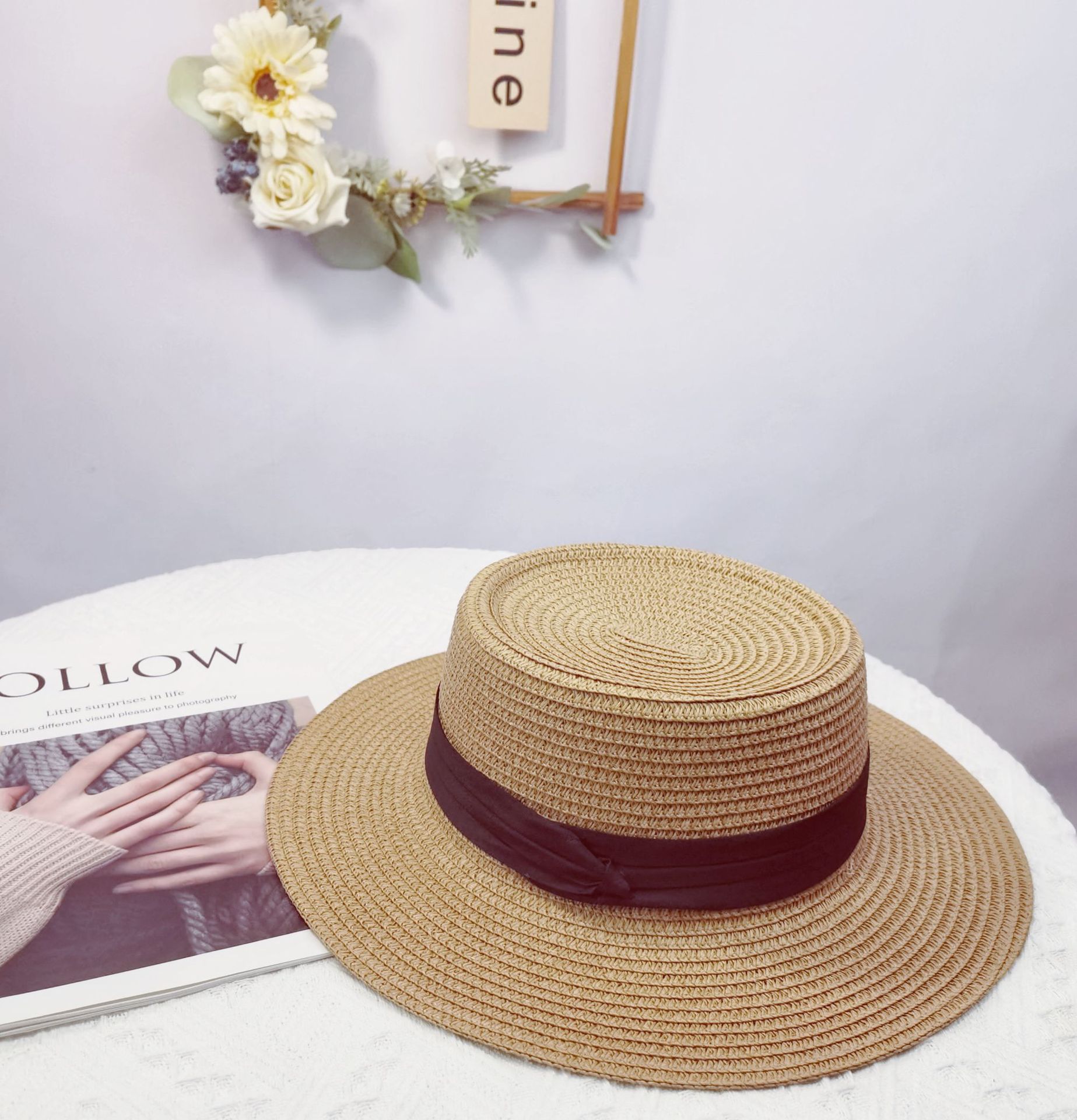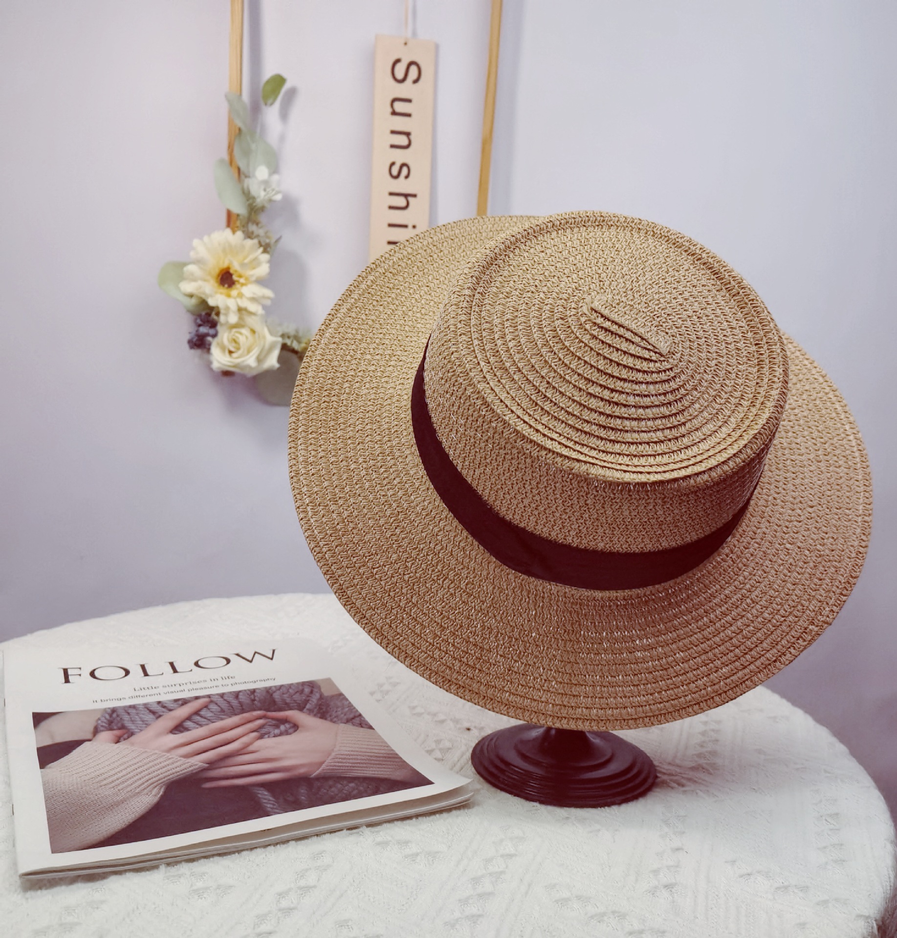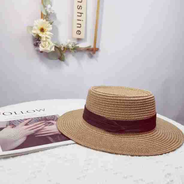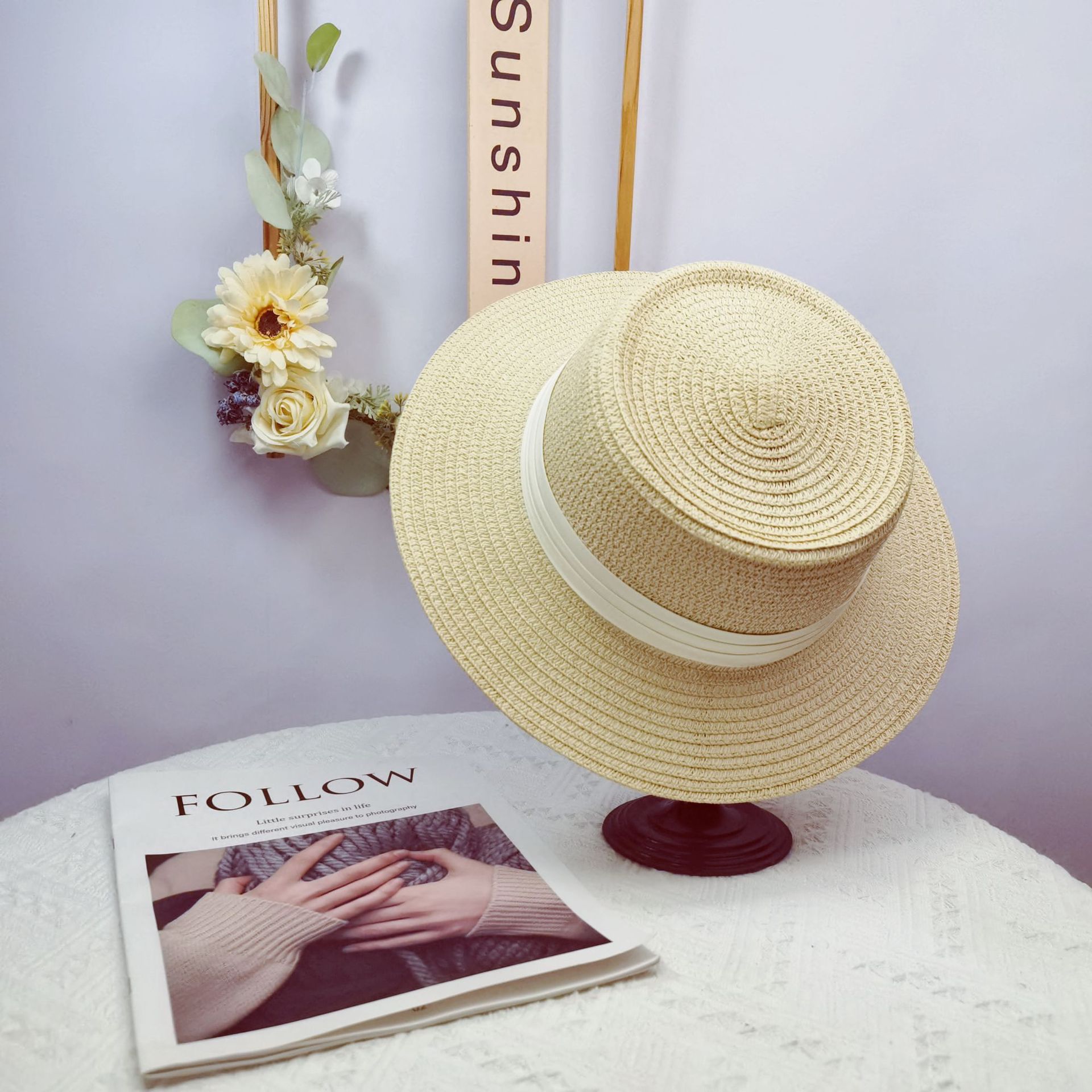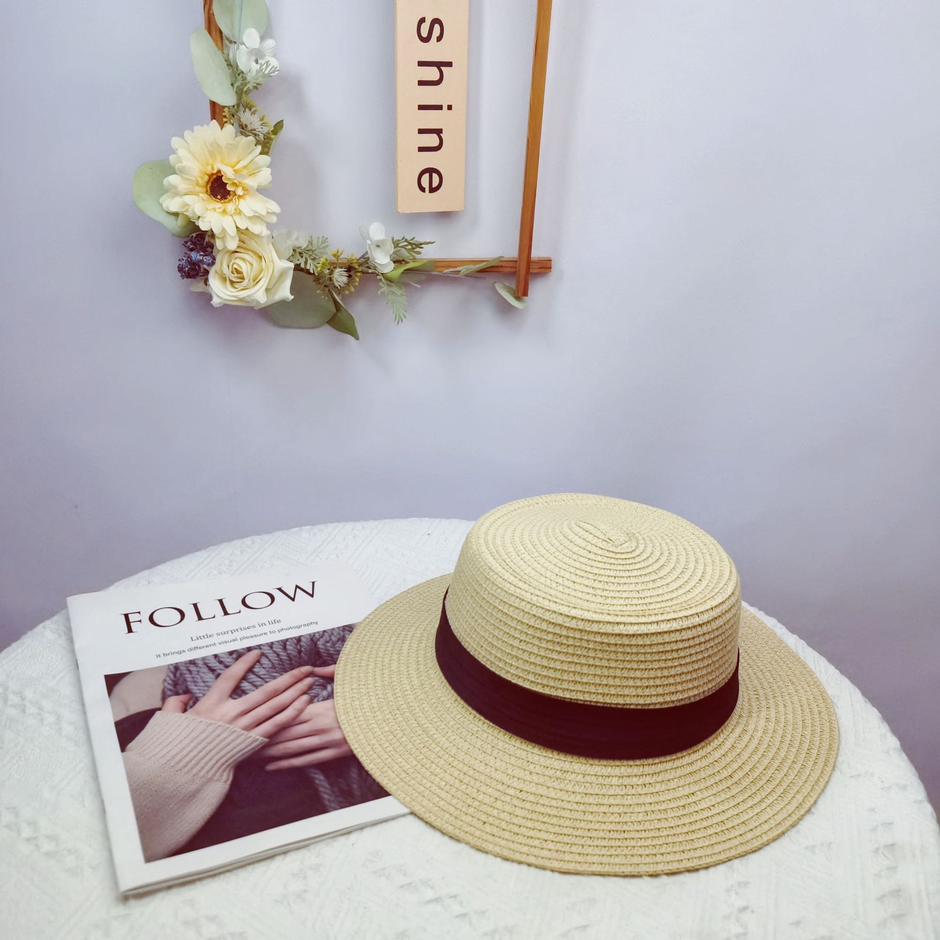 2025년 신형 햅번 스타일 여성용 밀짚모자, 여름 프렌치 플랫탑 플랫 챙 모자, 영국 복고풍 태양 모자스토어 가기