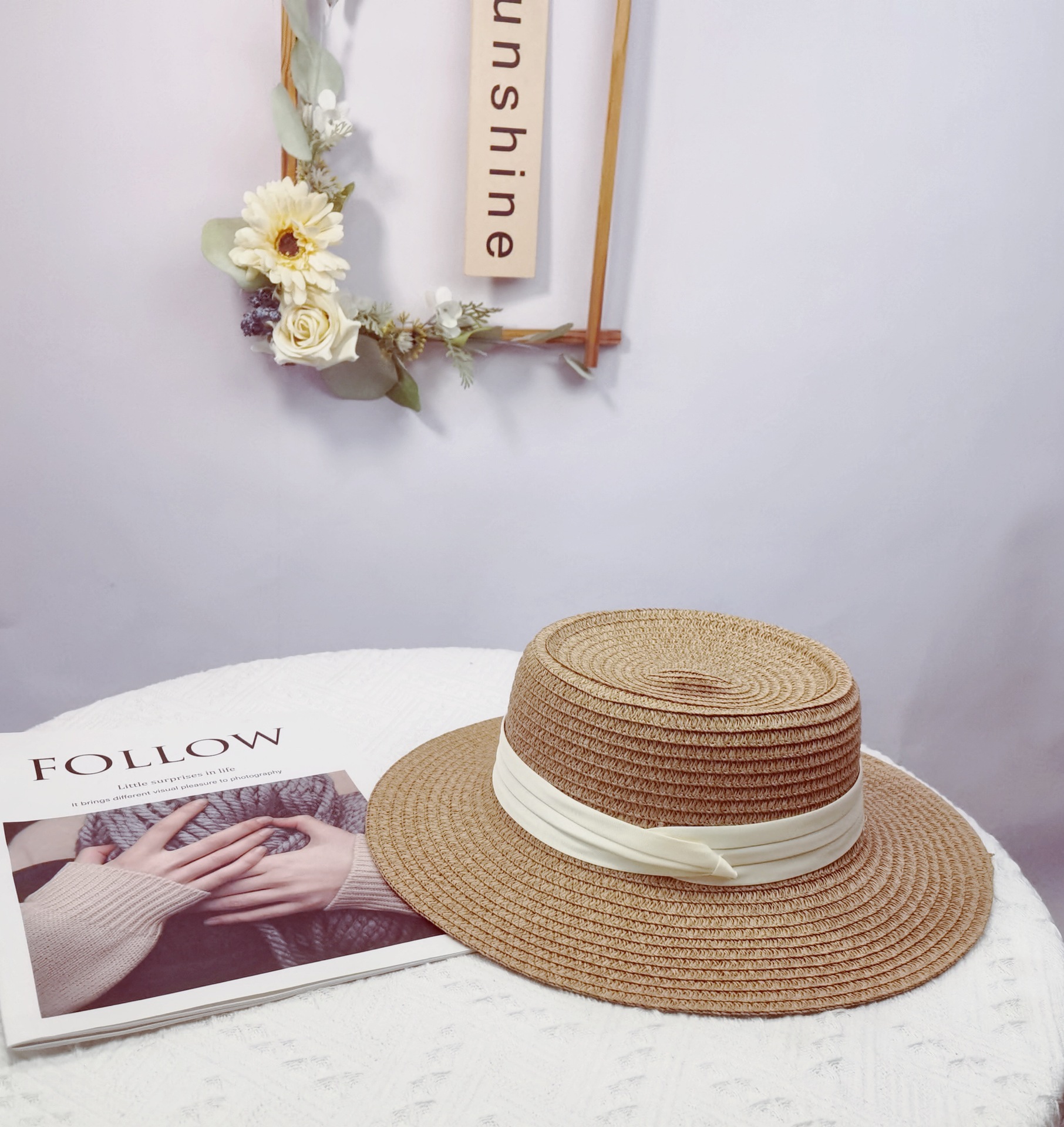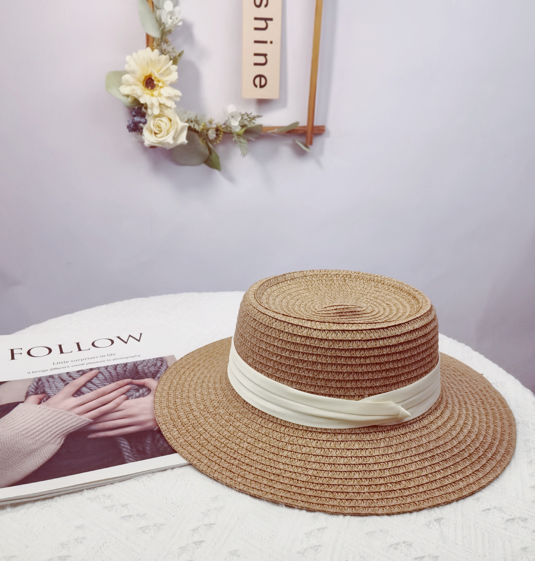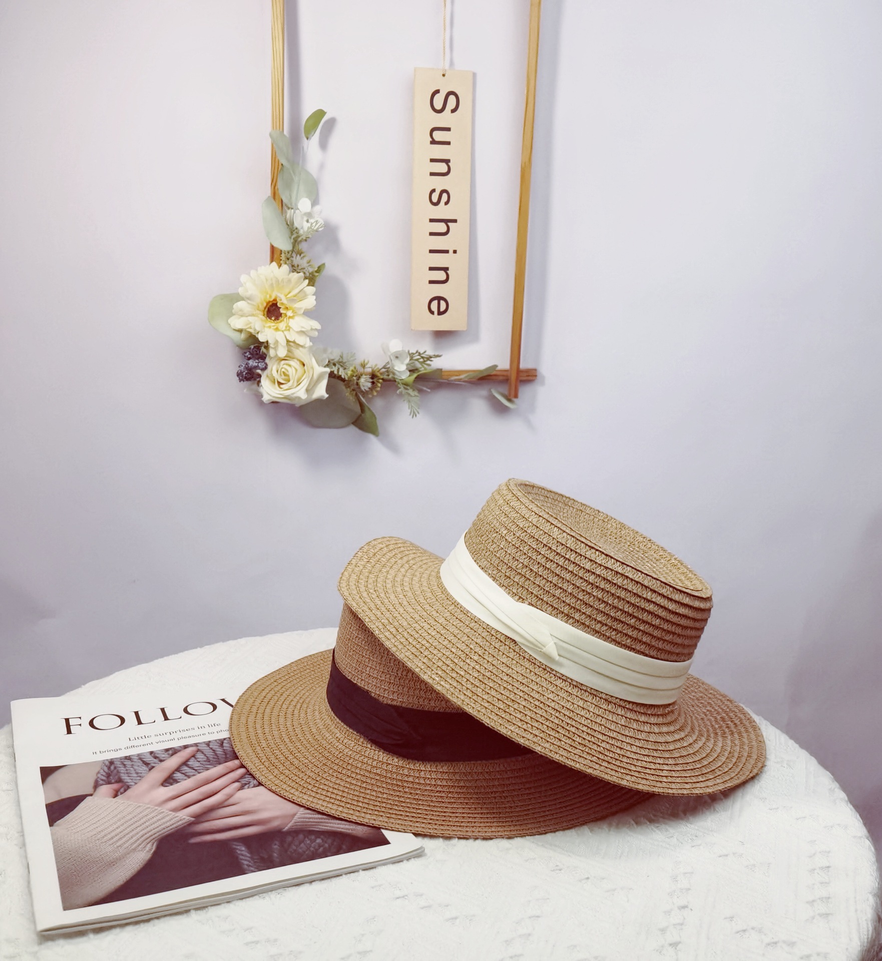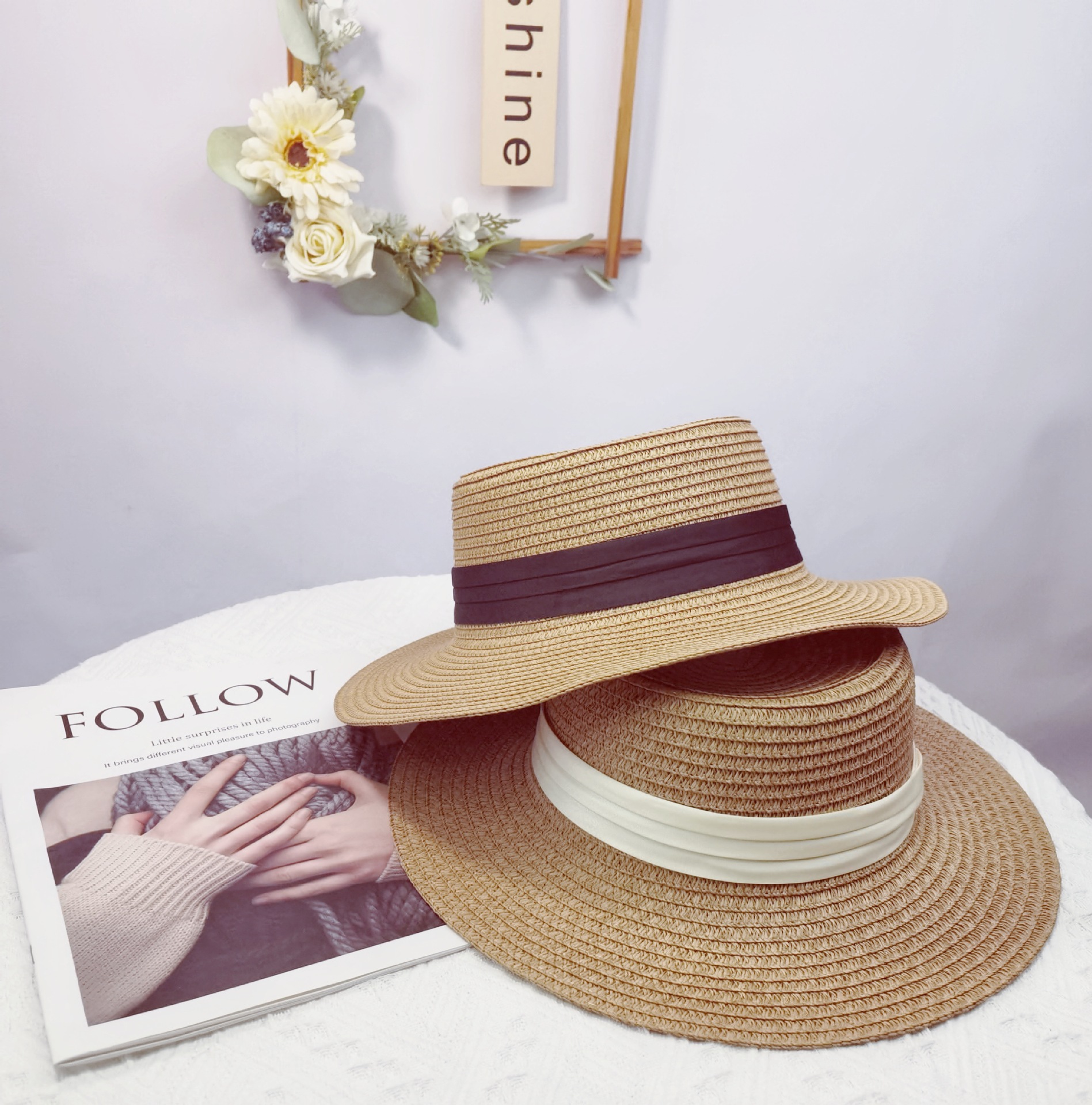 2025년 신형 햅번 스타일 여성용 밀짚모자, 여름 프렌치 플랫탑 플랫 챙 모자, 영국 복고풍 태양 모자스토어 가기