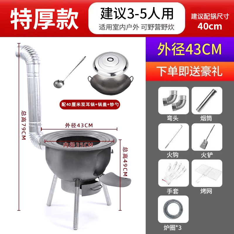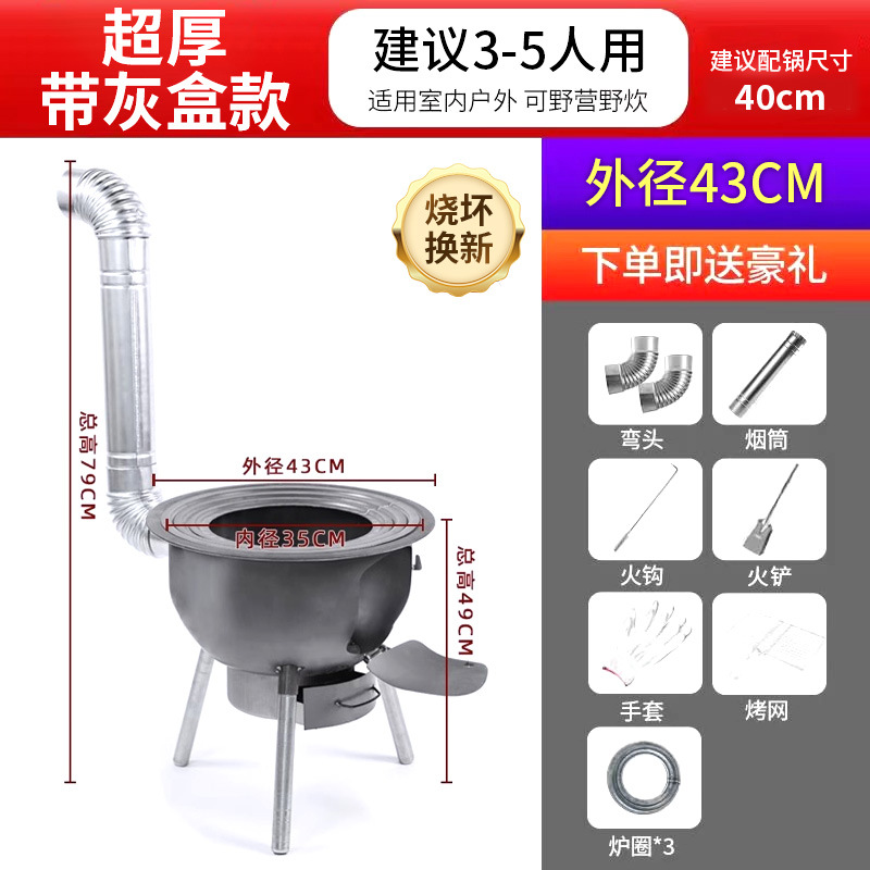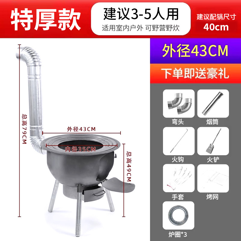 • [특대 두께] 원피스 스토브 43CM 링 없음 + 스토브 선물 패키지.