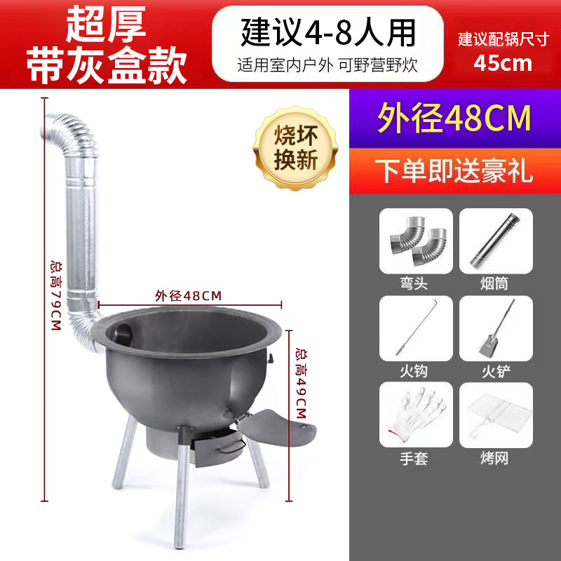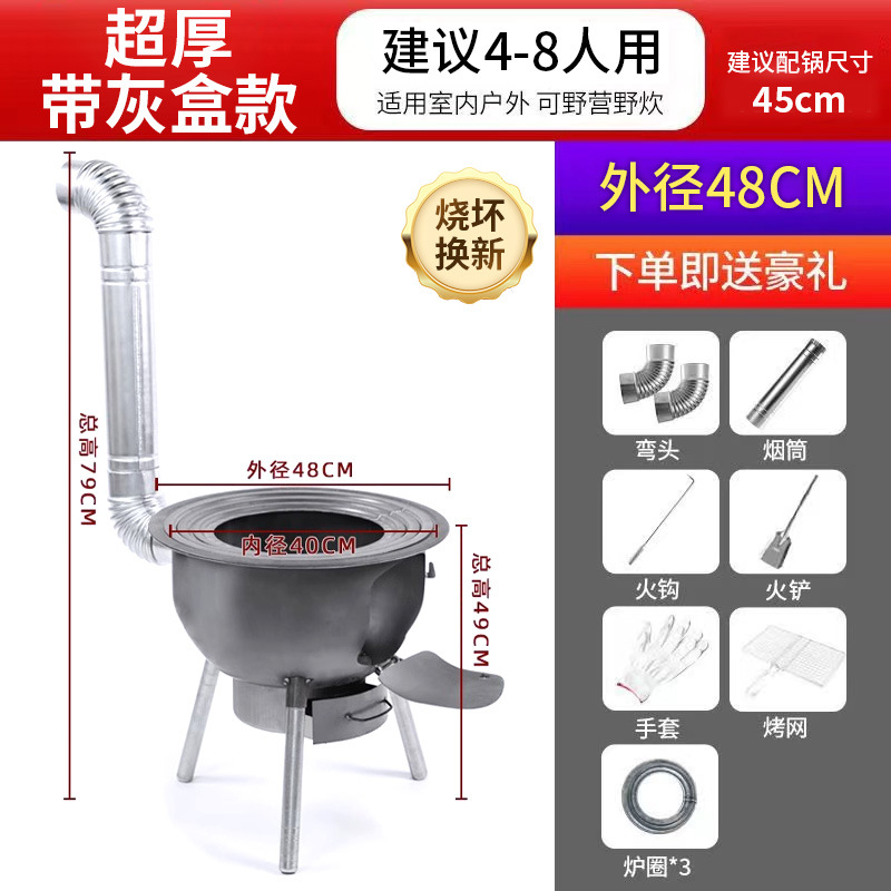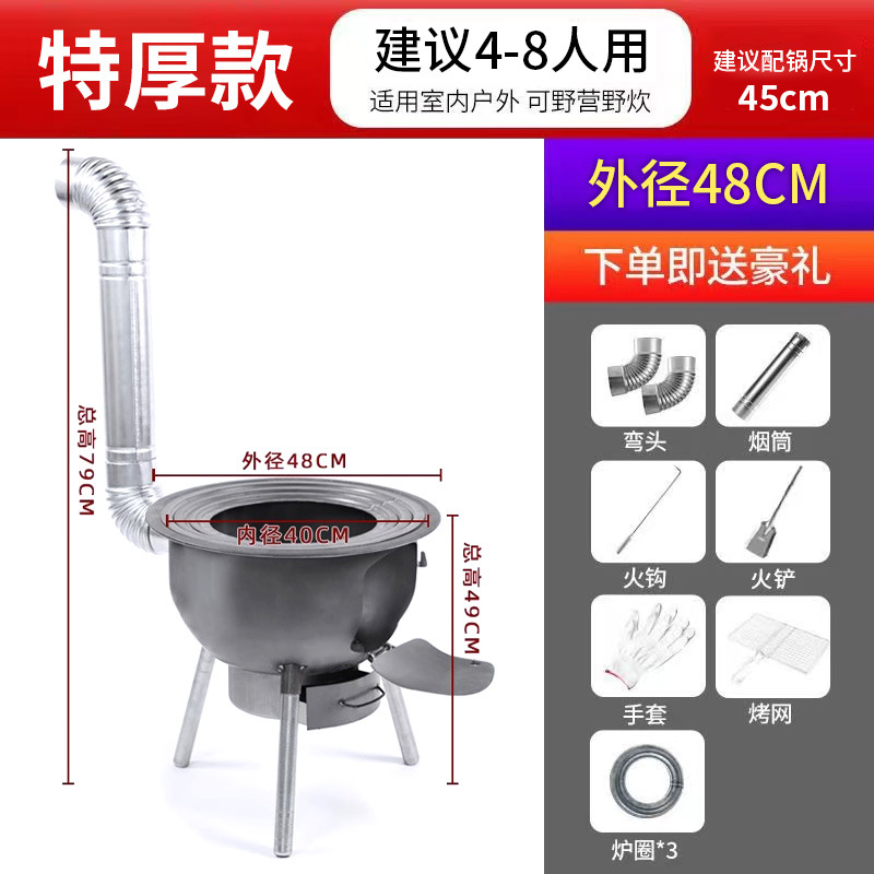 • [특대 두께] 일체형 스토브 48CM + 스토브 링 3개 + 스토브 선물 패키지.