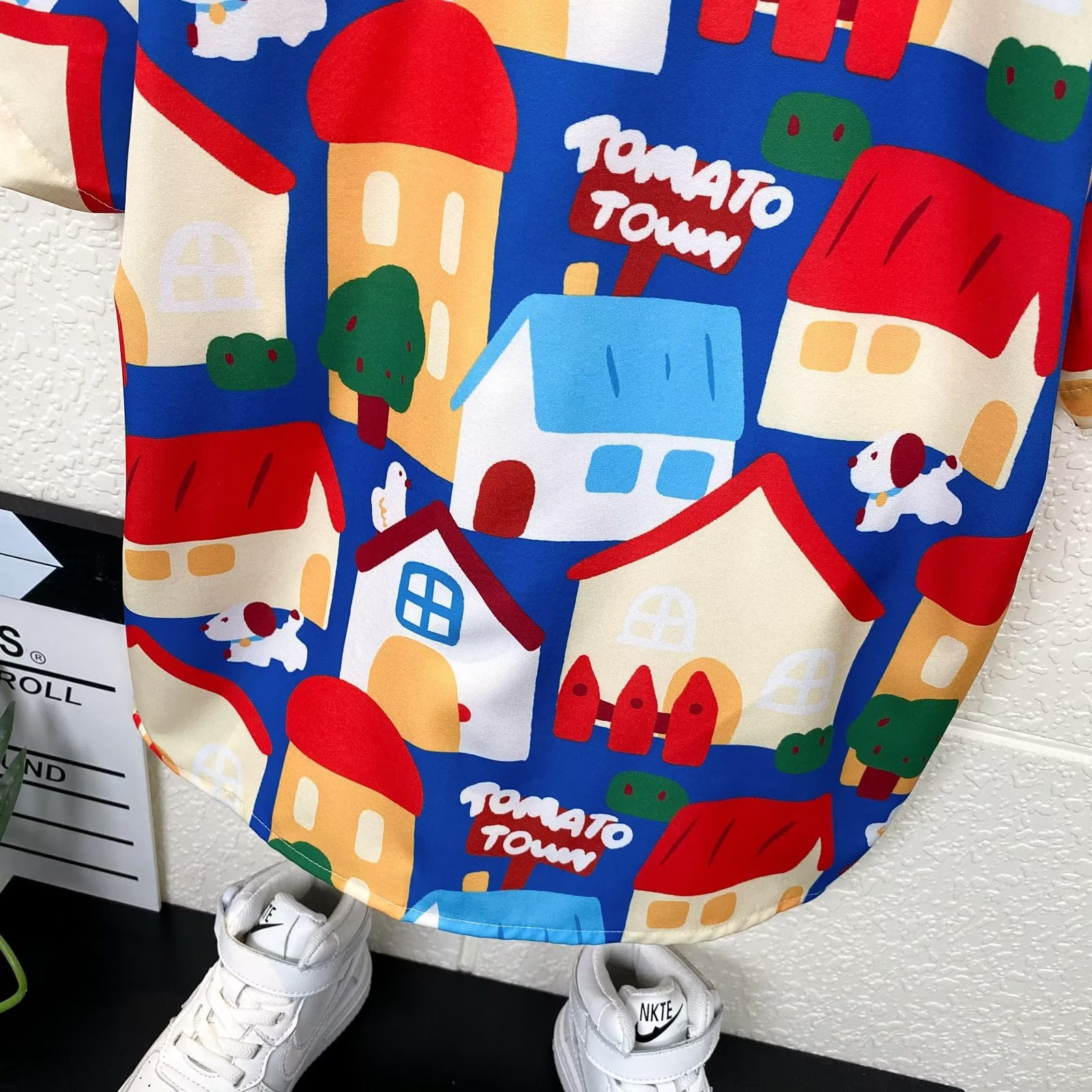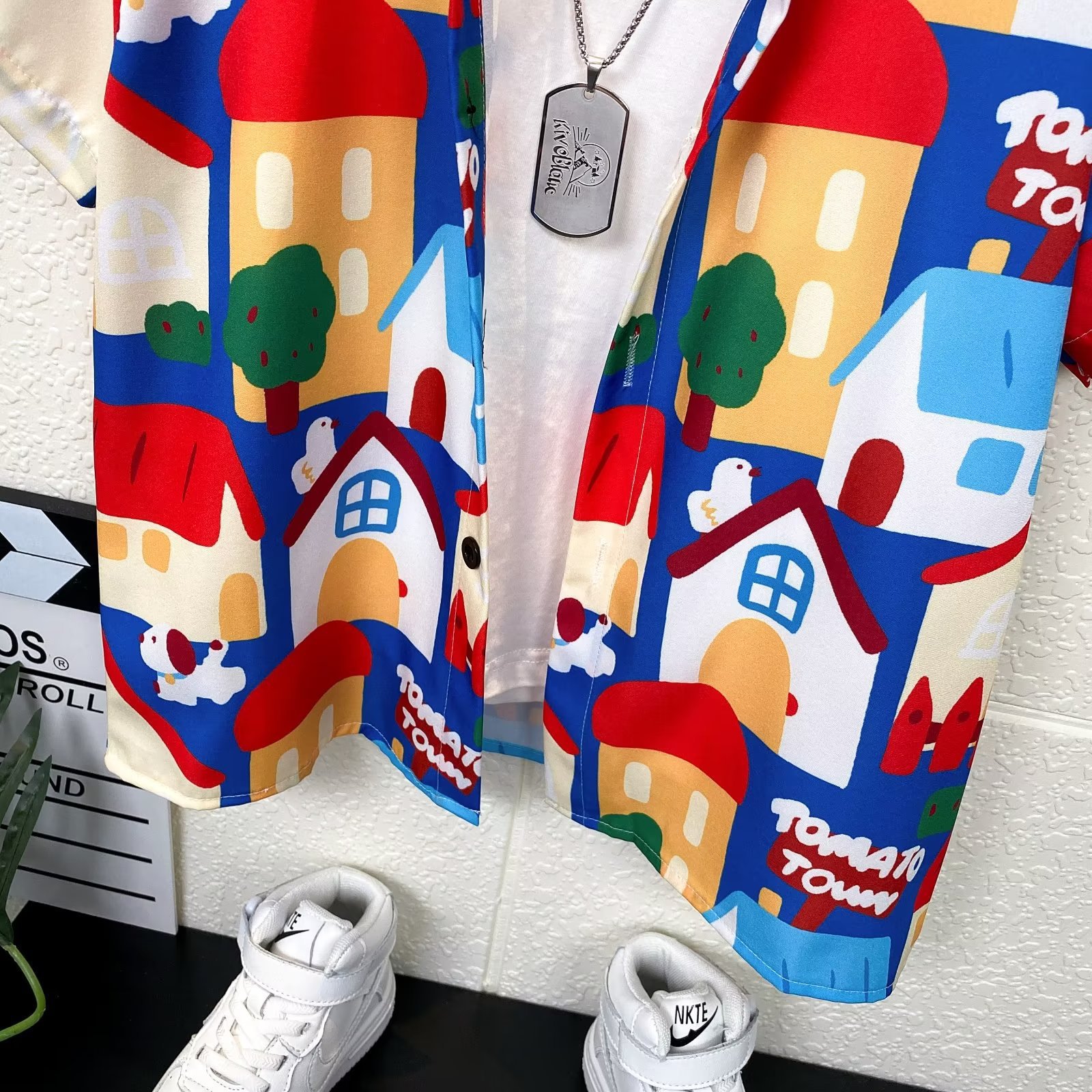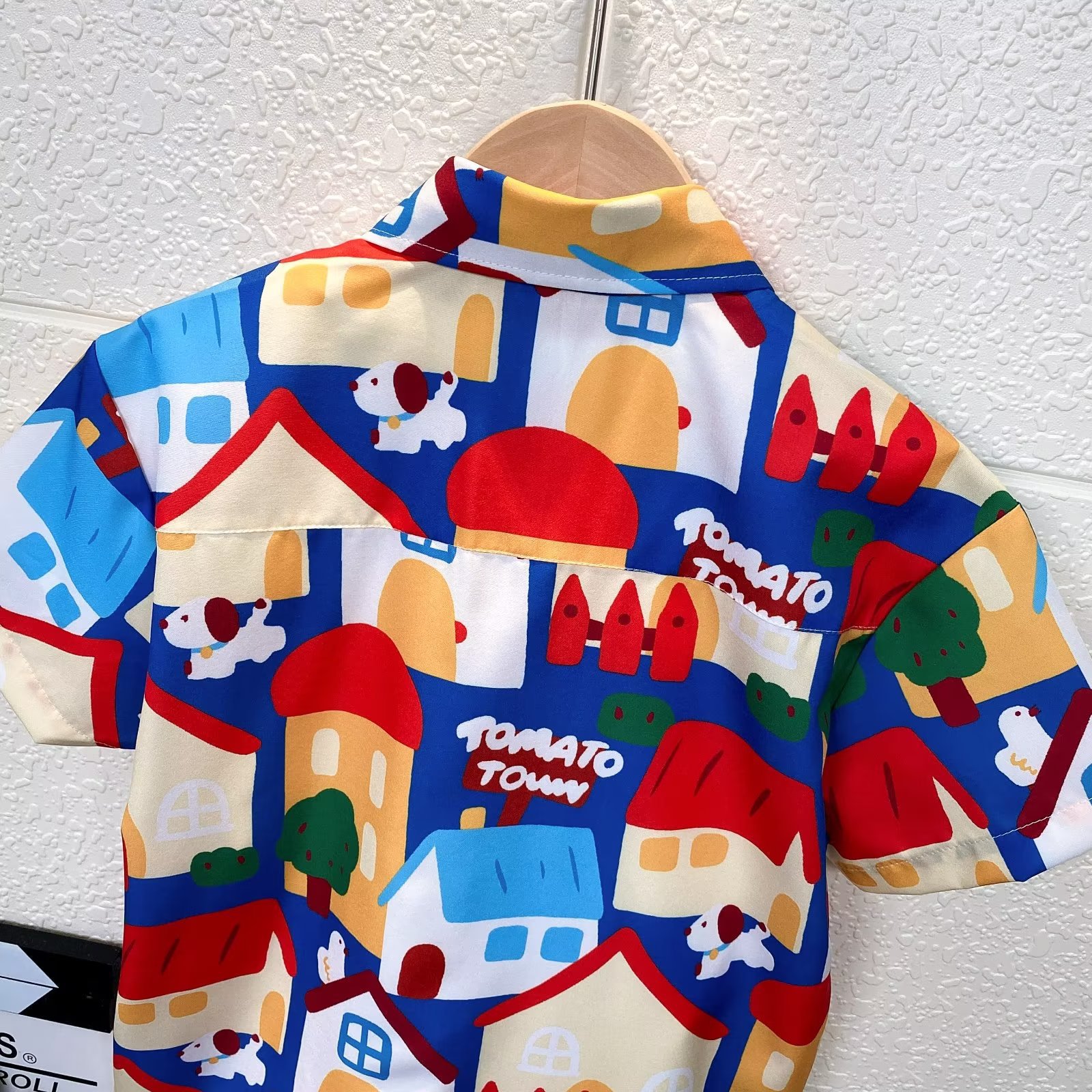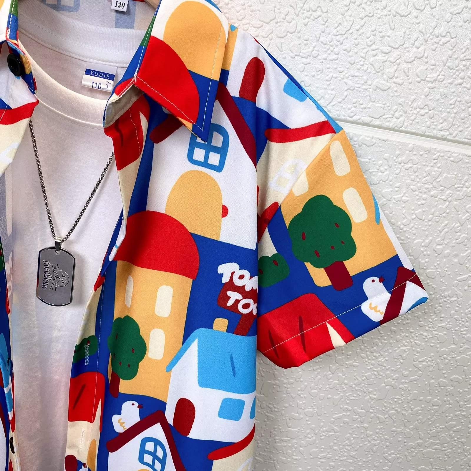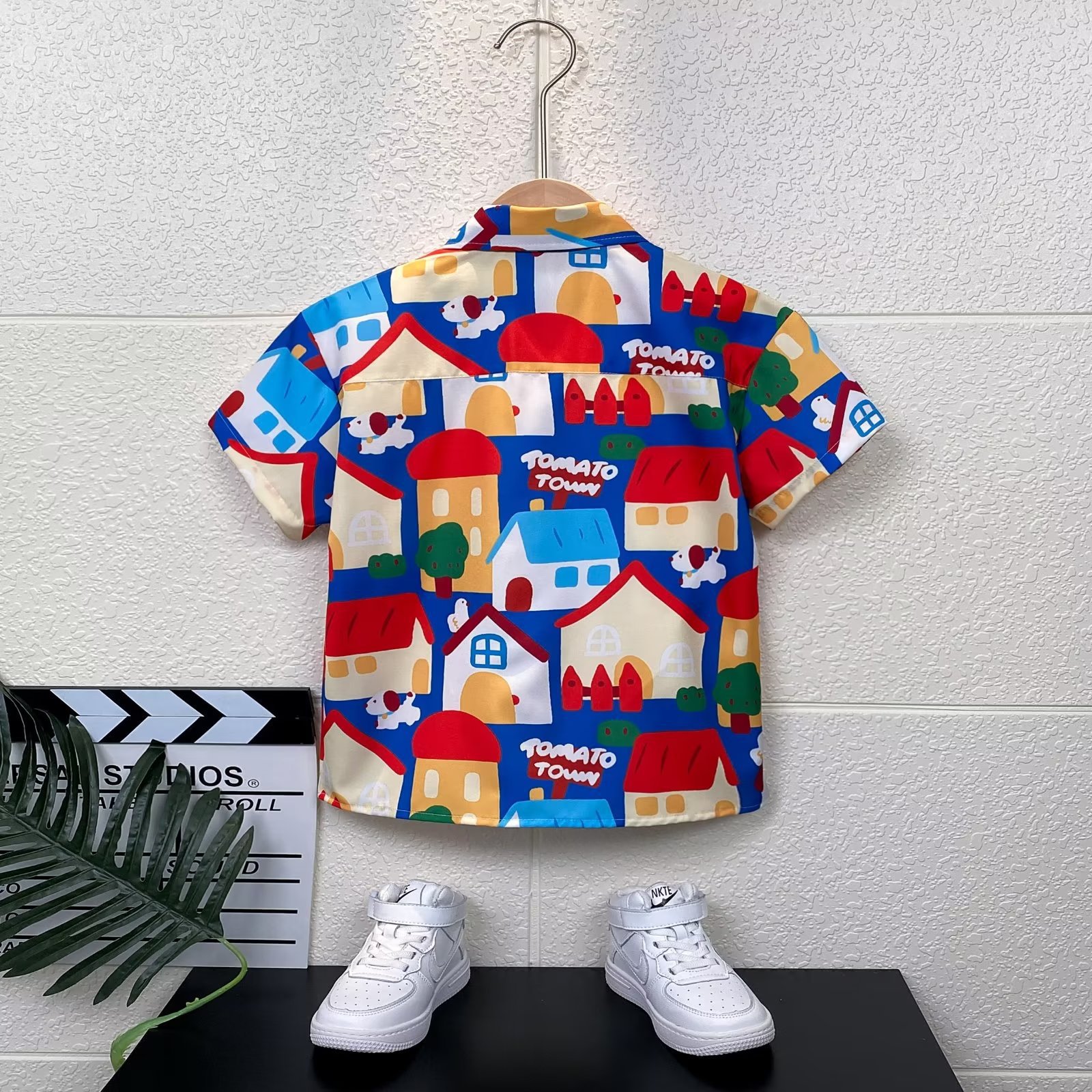 소년 얼음 실크 셔츠 정장 2023 여름 새 아기 가볍고 통기성 옷 어린이 잘 생긴 투피스 유행 세트스토어 가기