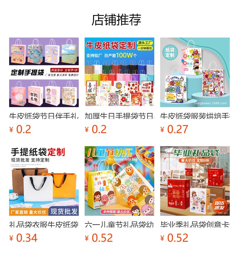 만화 패턴 종이 가방 유치원 대형 소형 간식 포장 가방 선물 포장 가방 해외 인기 상품스토어 가기