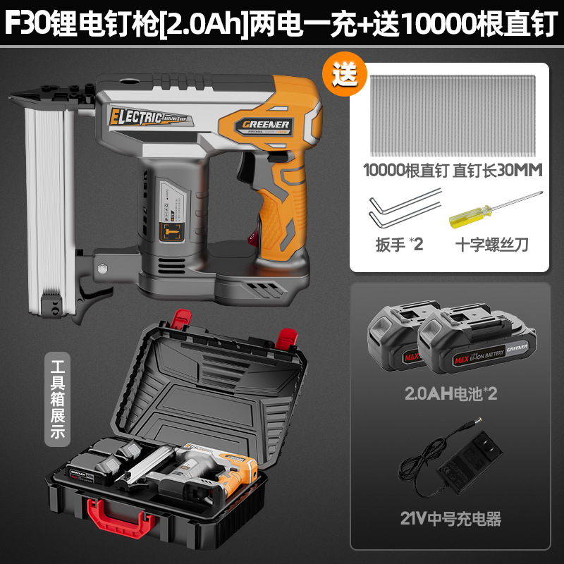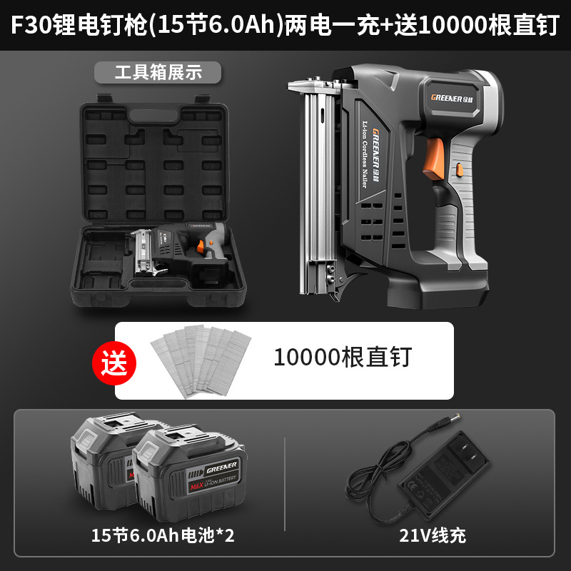 • F30 서징 파워 리튬 배터리 네일 건 10셀 배터리 2개 1회 충전 고급 버전 + 못 10,000개