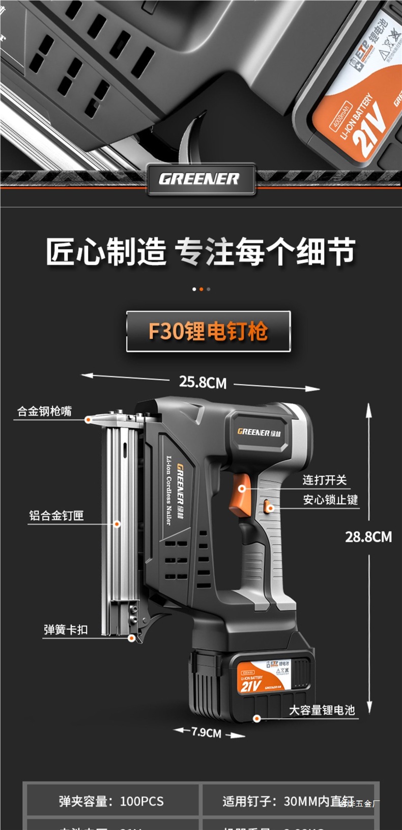 그린 포레스트 전기 네일건, 에어 네일건, 리튬 전기 네일건, 목공용 특수 코드 네일, 무선 충전식 스트레이트 진예스토어 가기