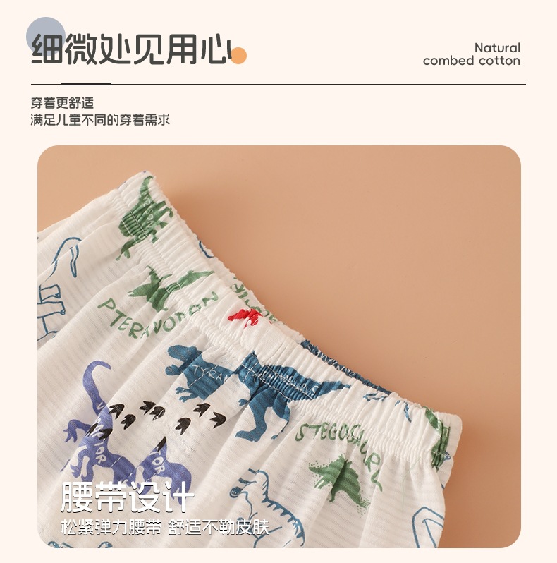 일본 대나무 면 얇은 어린이 반바지 여름 순수 면화 바지 소년 캐주얼 홈 잠옷 아기 바지스토어 가기