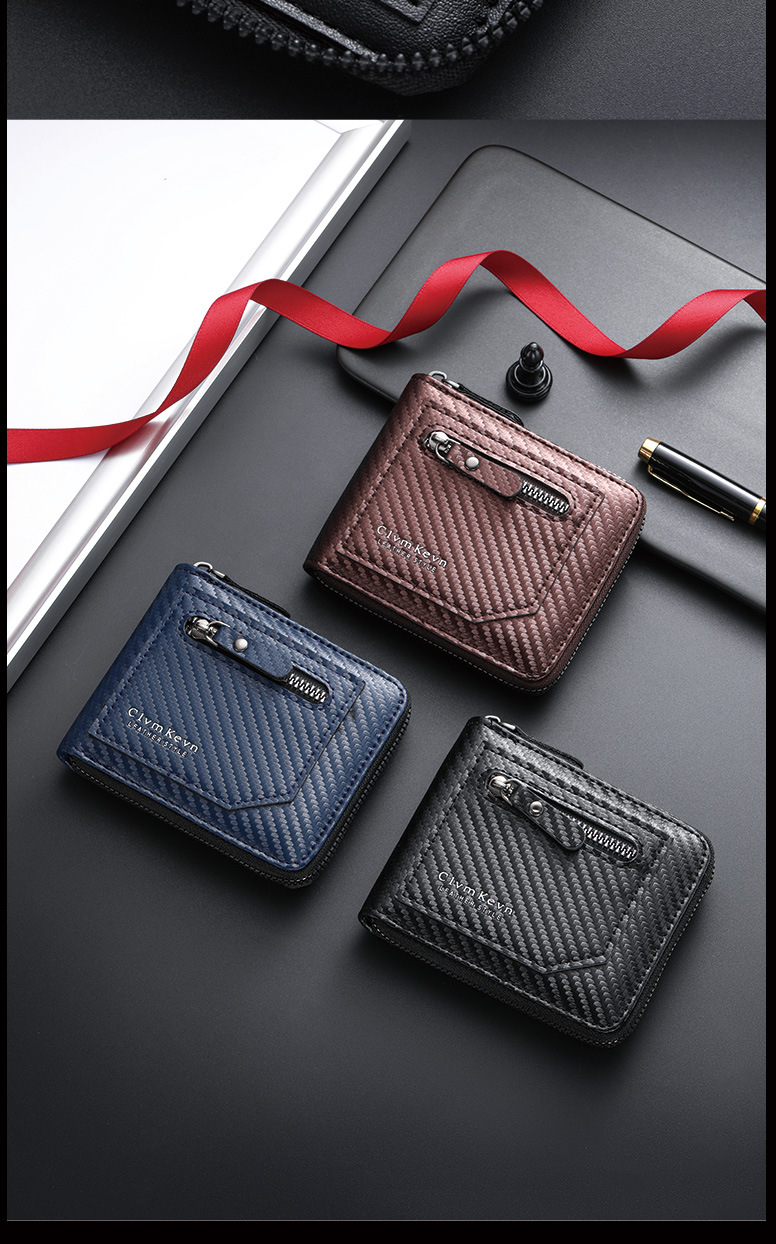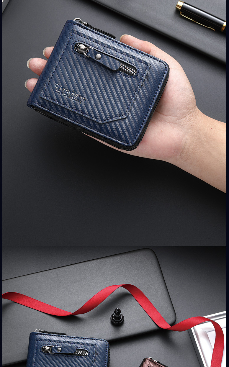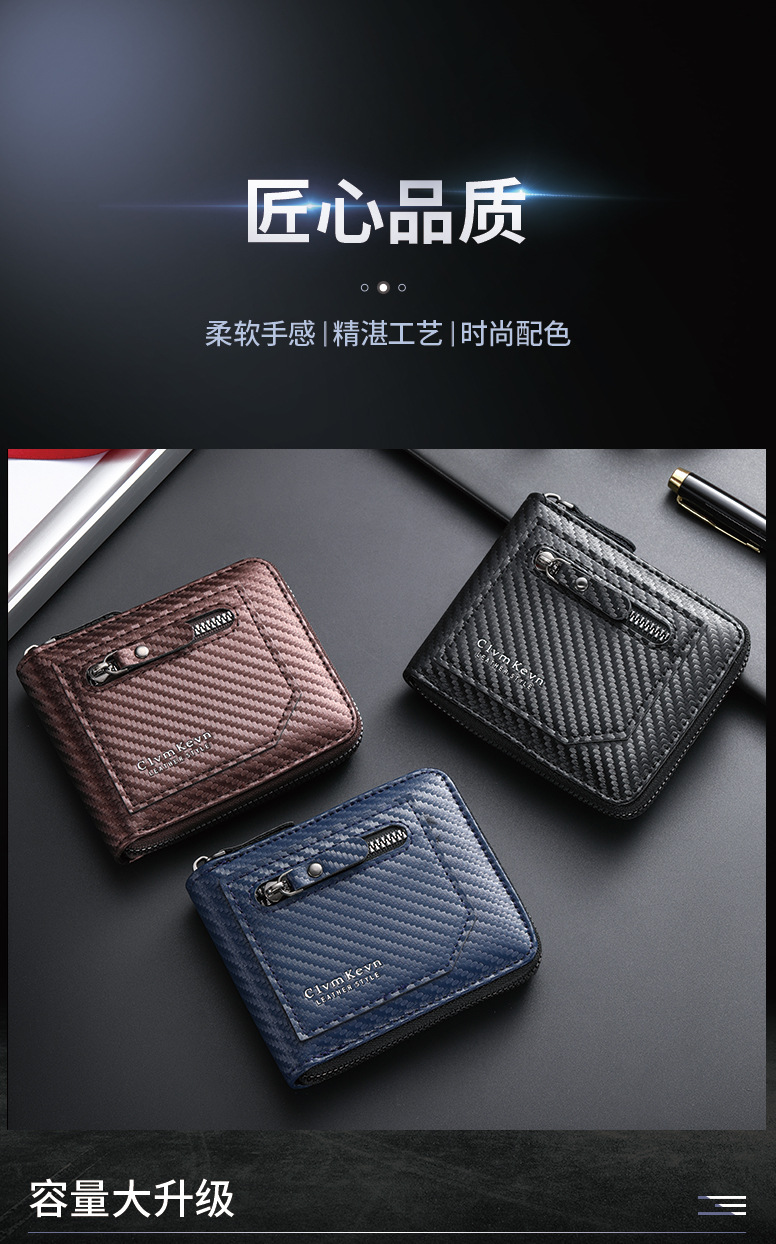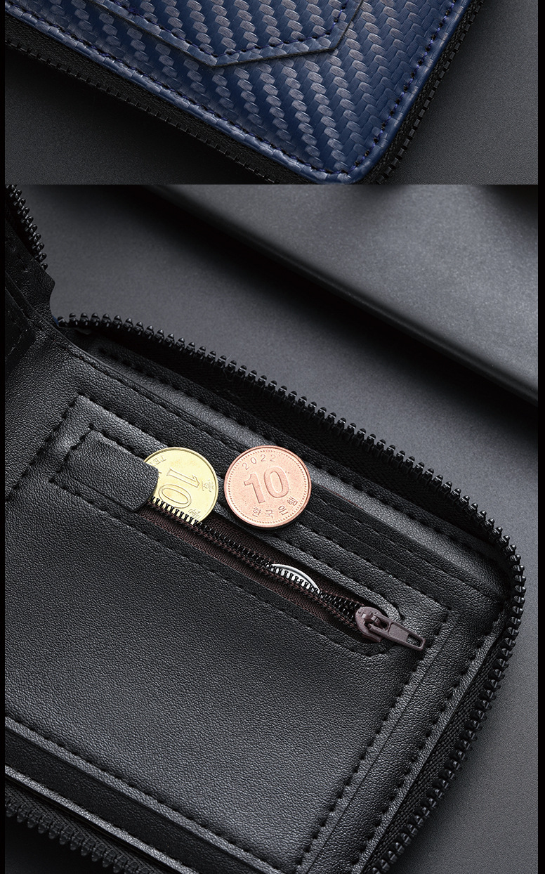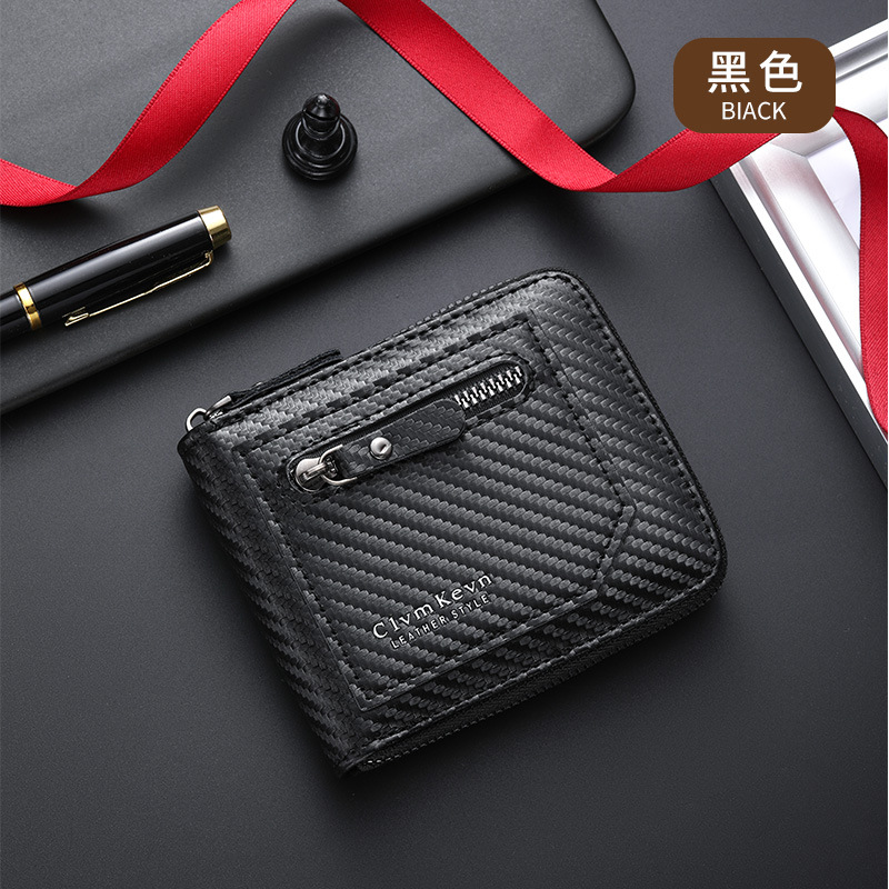 국경 새로운 탄소 섬유 패턴 지퍼 남성 지갑 멀티 카드 대용량 짧은 ID 카드 가방 지갑스토어 가기