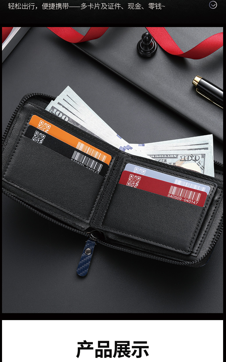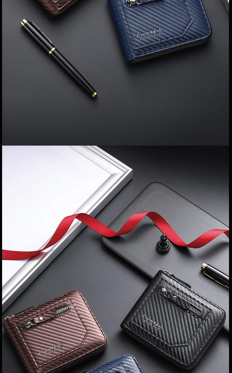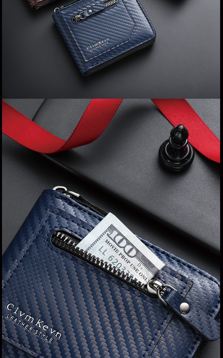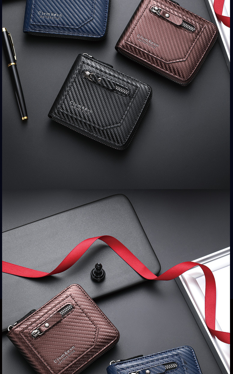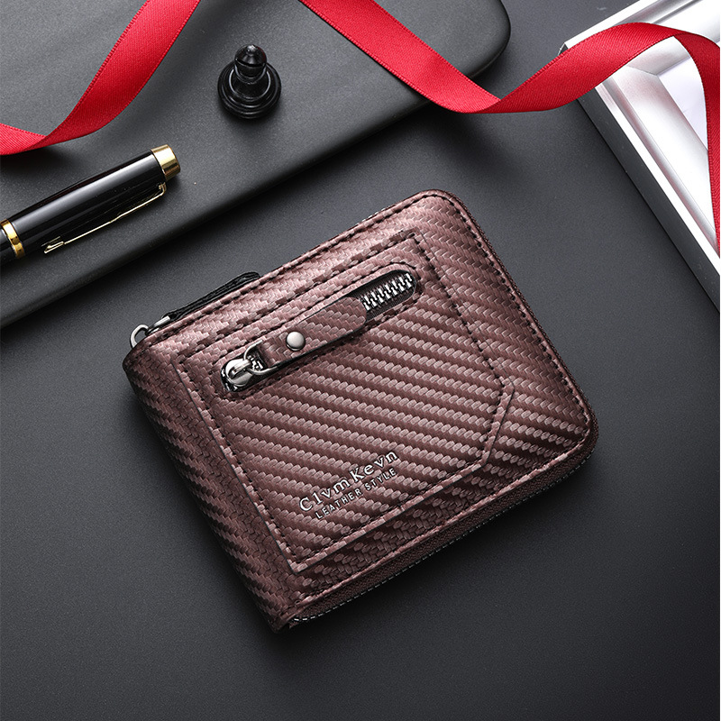 국경 새로운 탄소 섬유 패턴 지퍼 남성 지갑 멀티 카드 대용량 짧은 ID 카드 가방 지갑스토어 가기