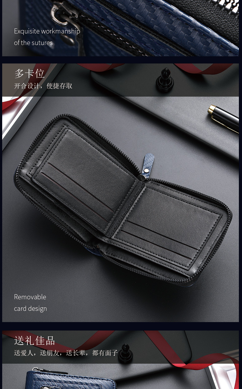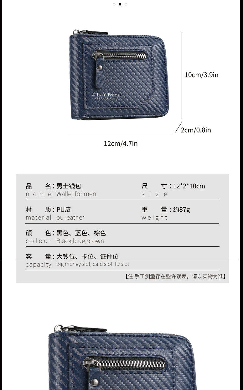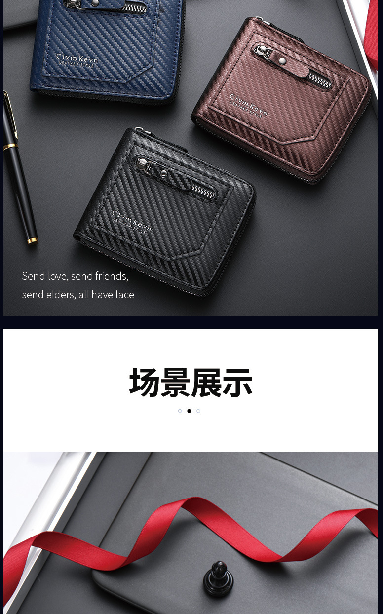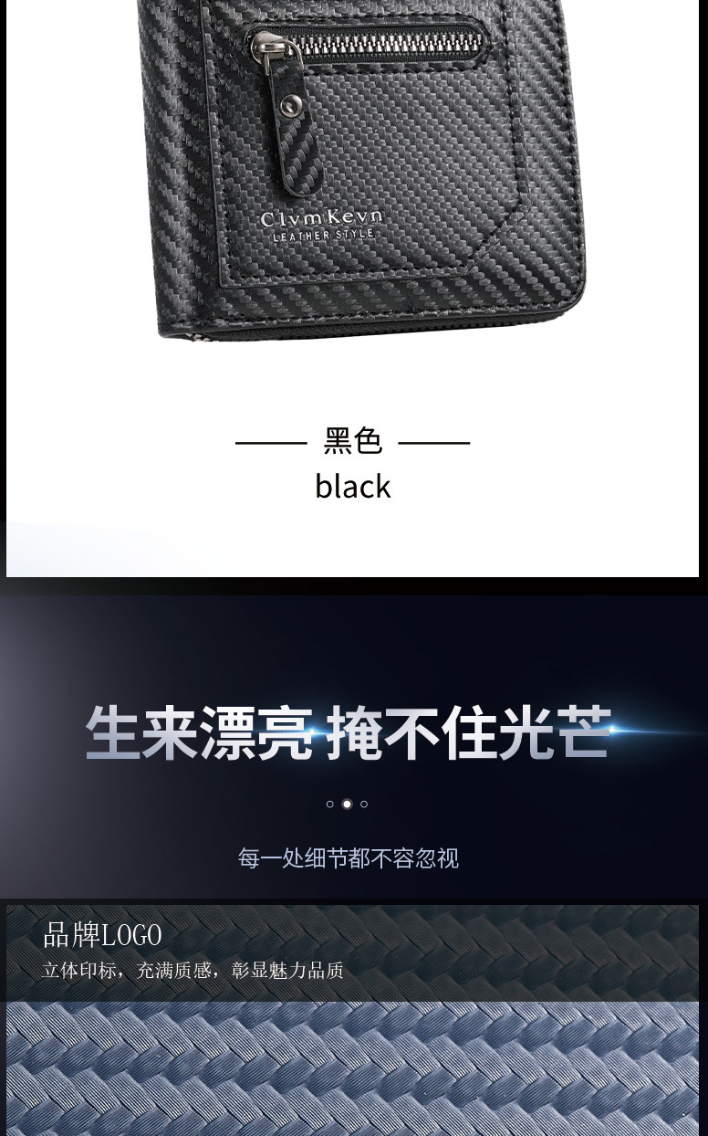 국경 새로운 탄소 섬유 패턴 지퍼 남성 지갑 멀티 카드 대용량 짧은 ID 카드 가방 지갑스토어 가기