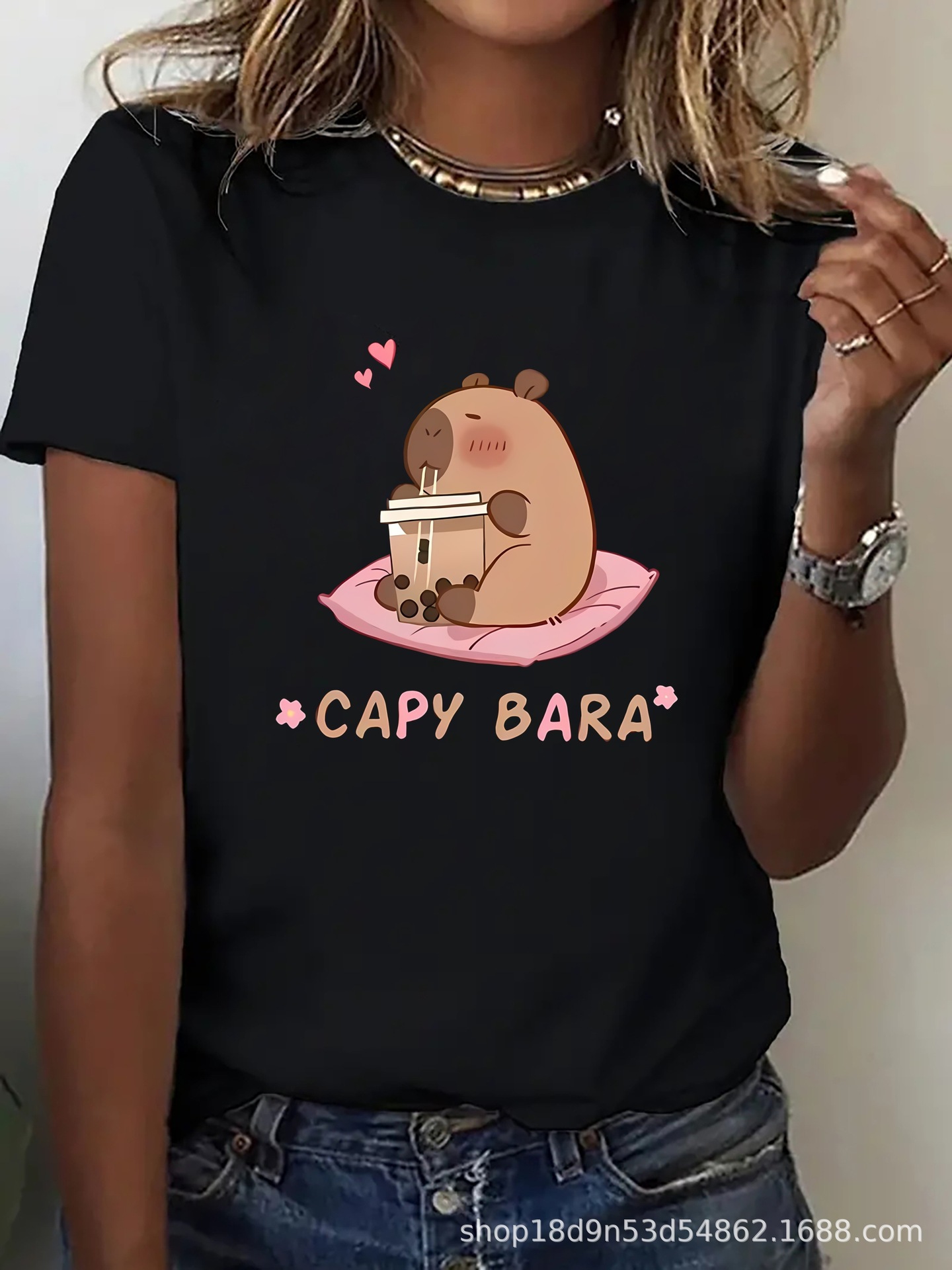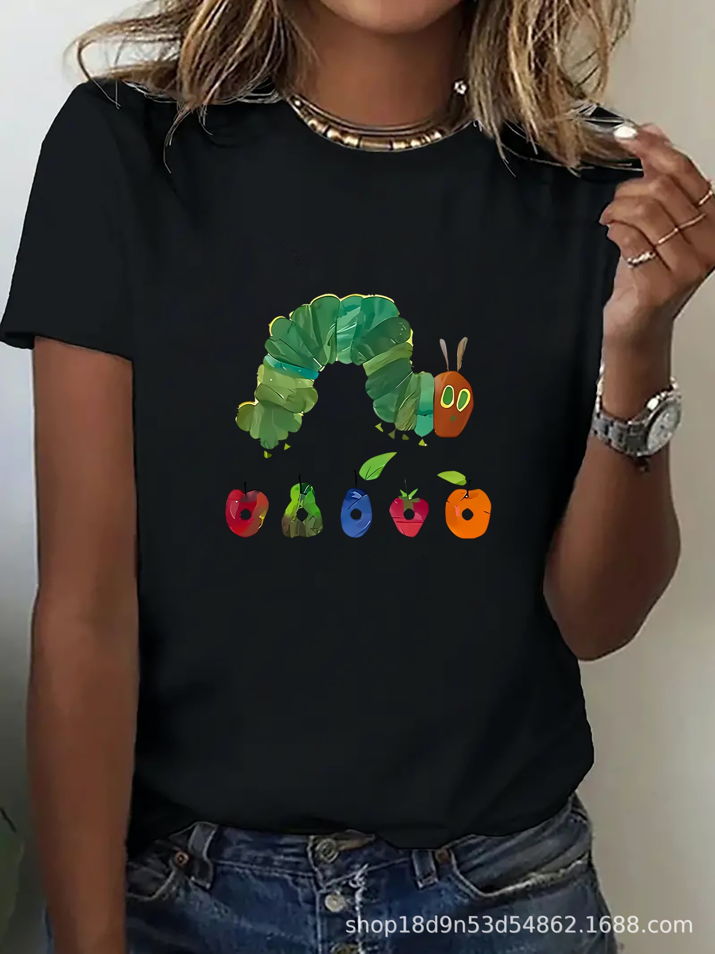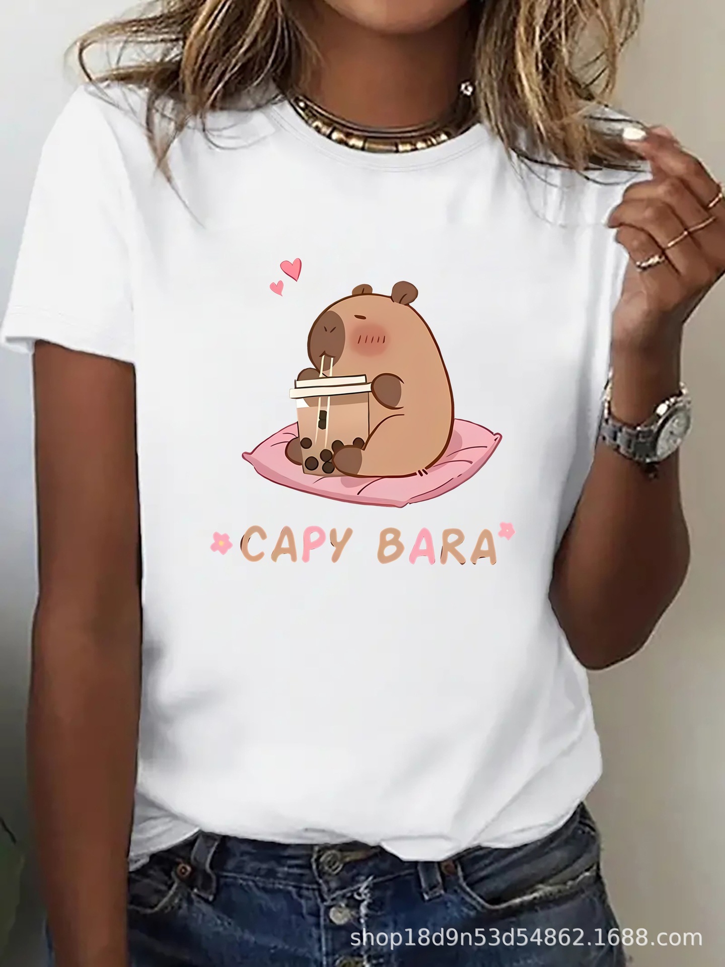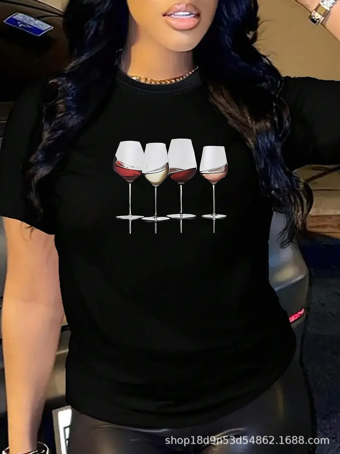 국경 간 스팟 반팔 티셔츠 프린트 탑 2025 유럽과 미국의 새로운 대형 아마존 핫 세일 캐주얼 여성 티셔츠
