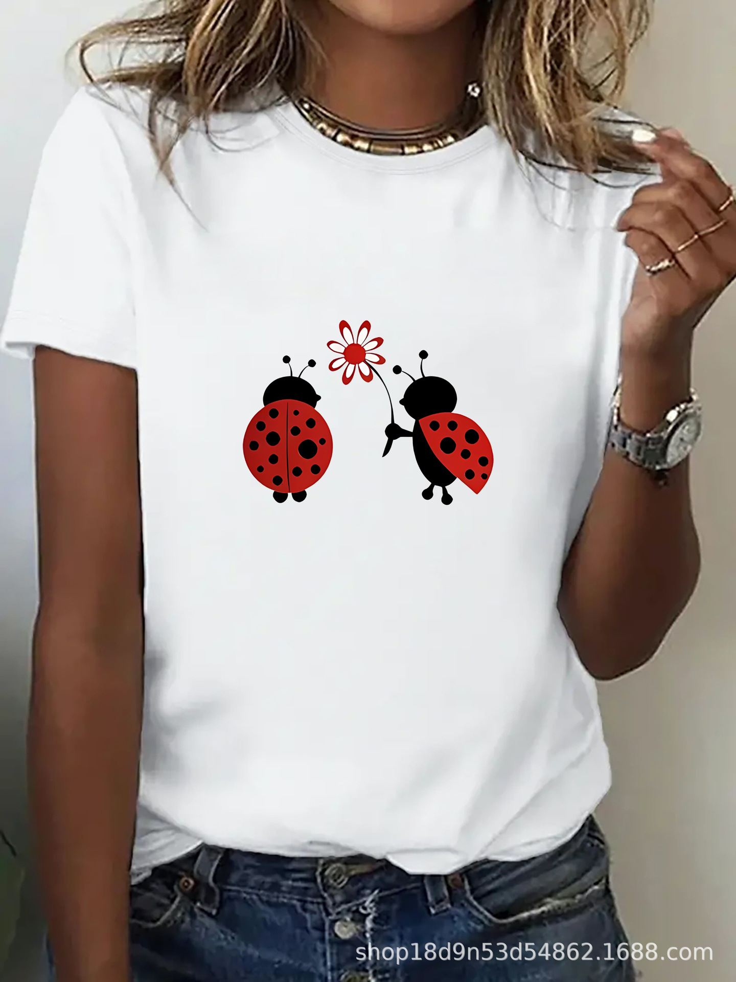 국경 간 스팟 반팔 티셔츠 프린트 탑 2025 유럽과 미국의 새로운 대형 아마존 핫 세일 캐주얼 여성 티셔츠스토어 가기