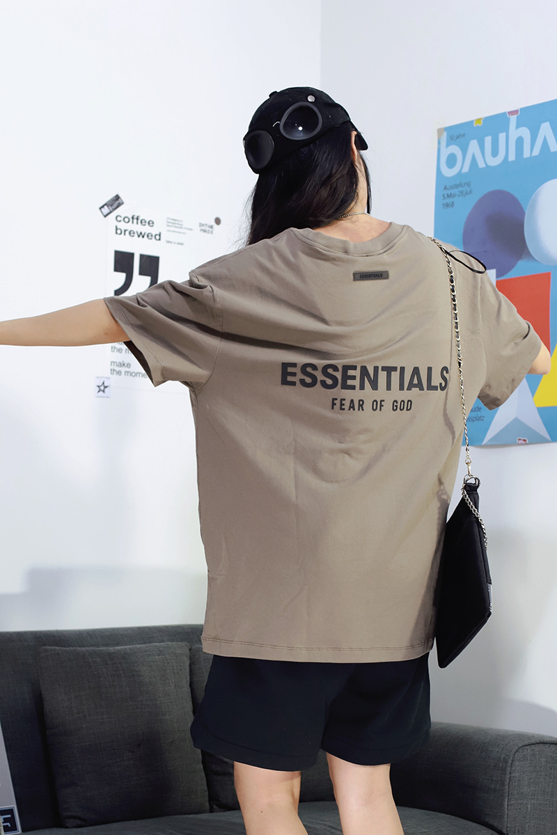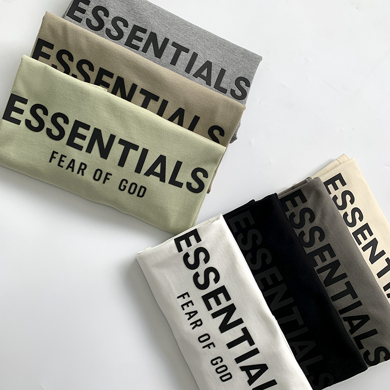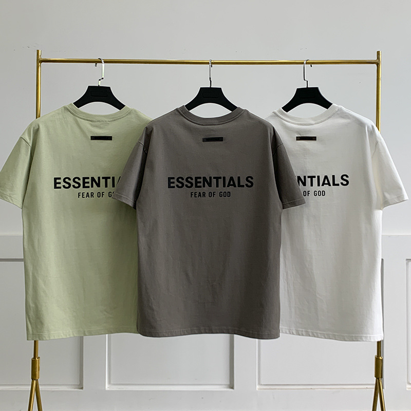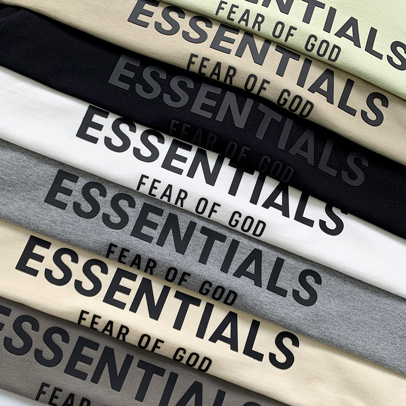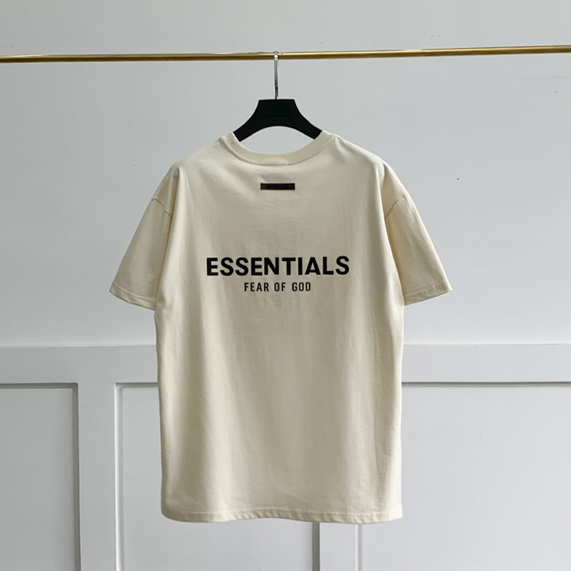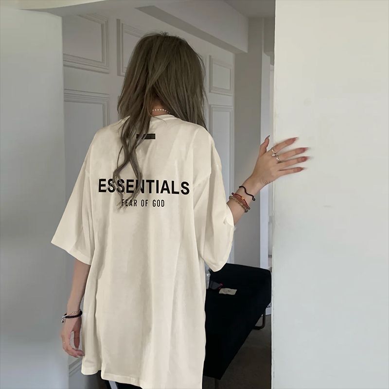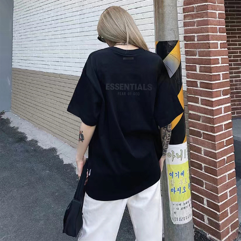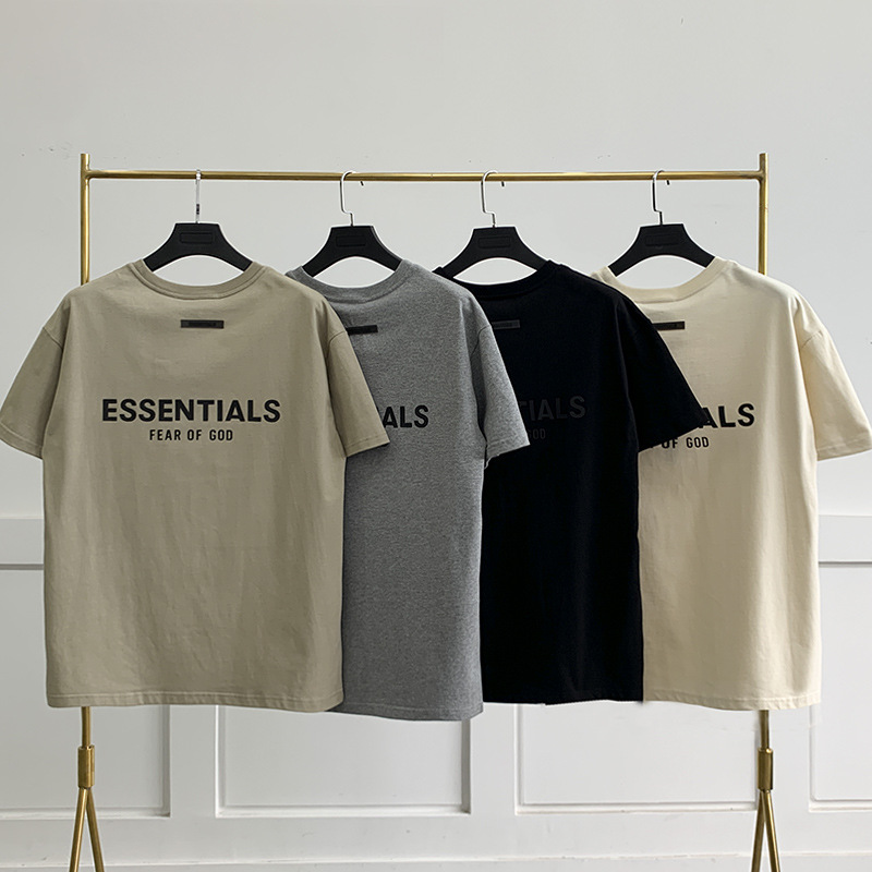 FOG 더블 라인 코튼 백 더블 행 실리콘 인쇄 ESSENTIALS 느슨한 미국 티셔츠 하이 스트리트 짧은 소매 티셔츠 남성용스토어 가기