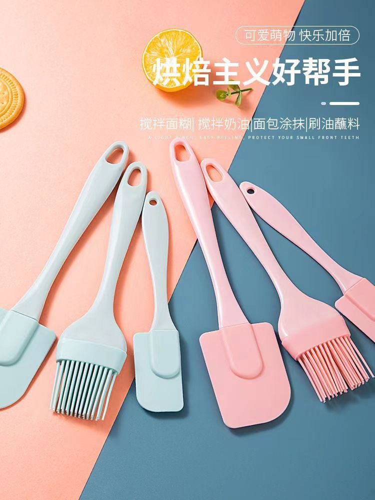 국경 간 스팟 3 피스 케이크 크림 주걱 오일 브러시 베이킹 세트 소프트 스크레이퍼 실리콘 스크레이퍼 베이킹 도구스토어 가기