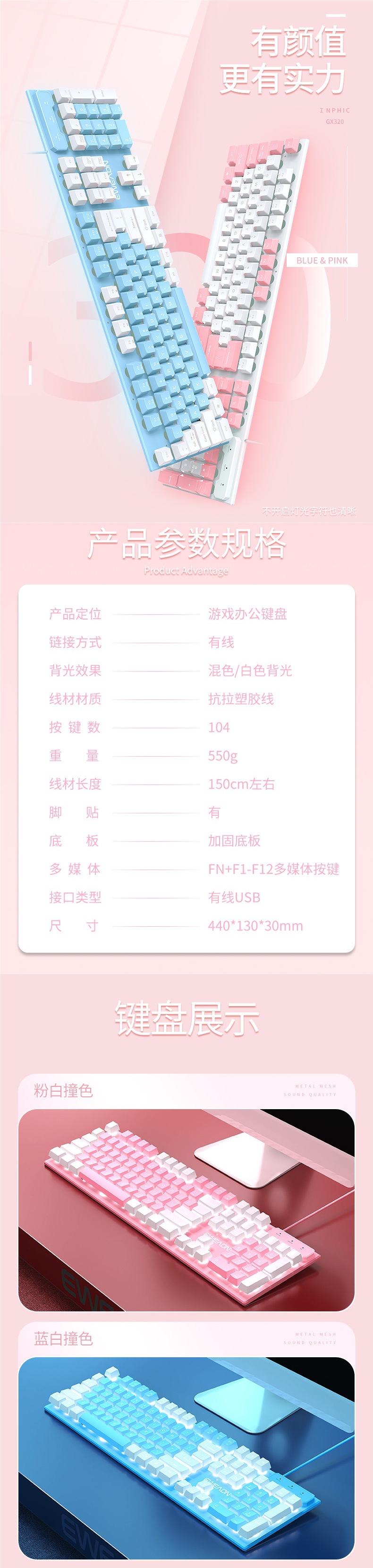 노트북 Gx320 Esports 유선 키보드 색상 매칭 빛나는 기계적 느낌 데스크탑 컴퓨터 액세서리 국경 간 도매스토어 가기