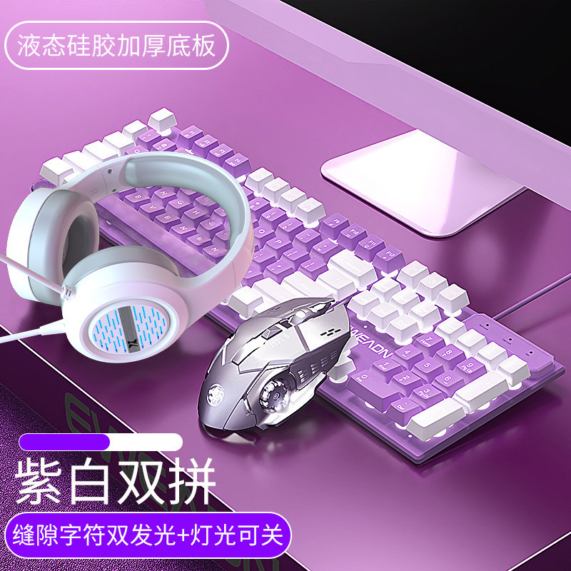 • 보라색과 흰색 조합 [백색광] + 마우스 + 헤드폰