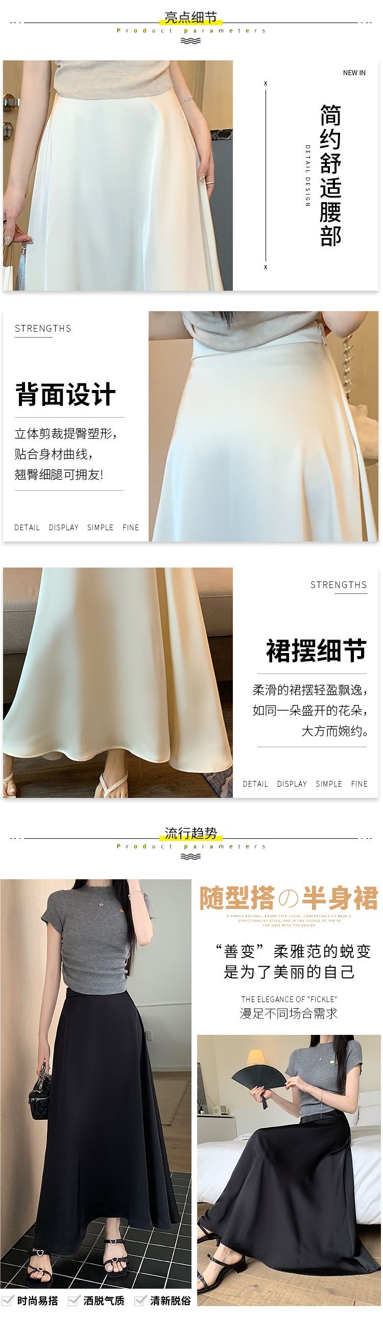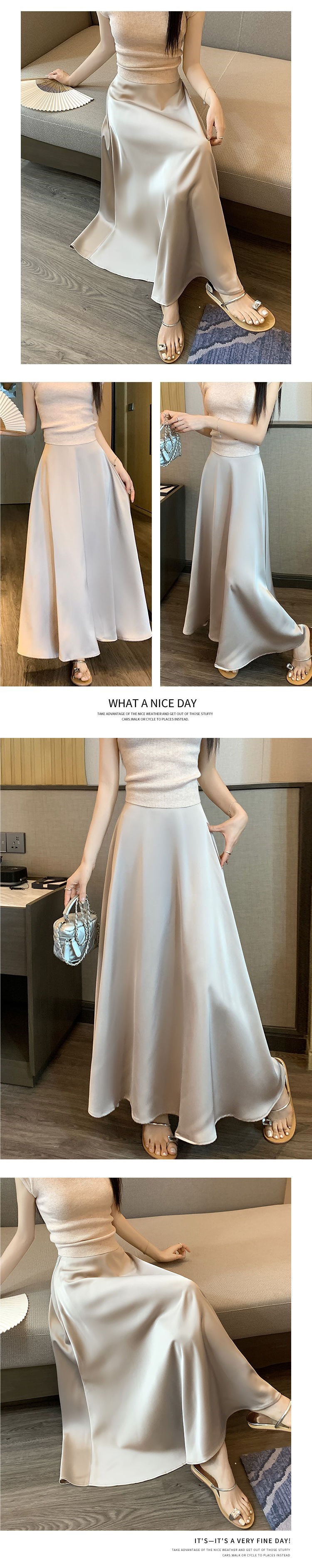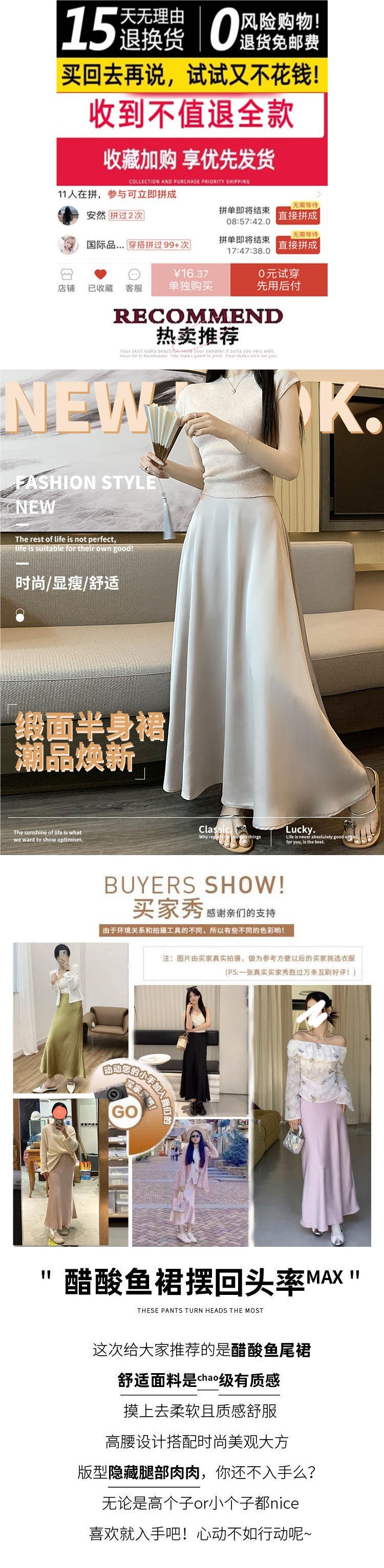 여름 여성을 위한 프렌치 아세테이트 새틴 피쉬테일 스커트 새로운 스타일의 하이웨이스트 힙 커버 슬리밍 드레이프 A라인 롱 스커트스토어 가기
