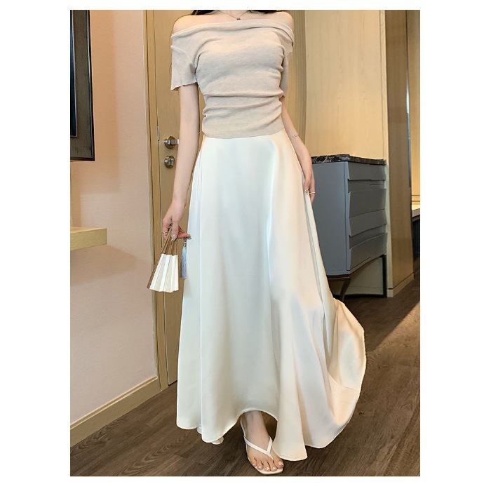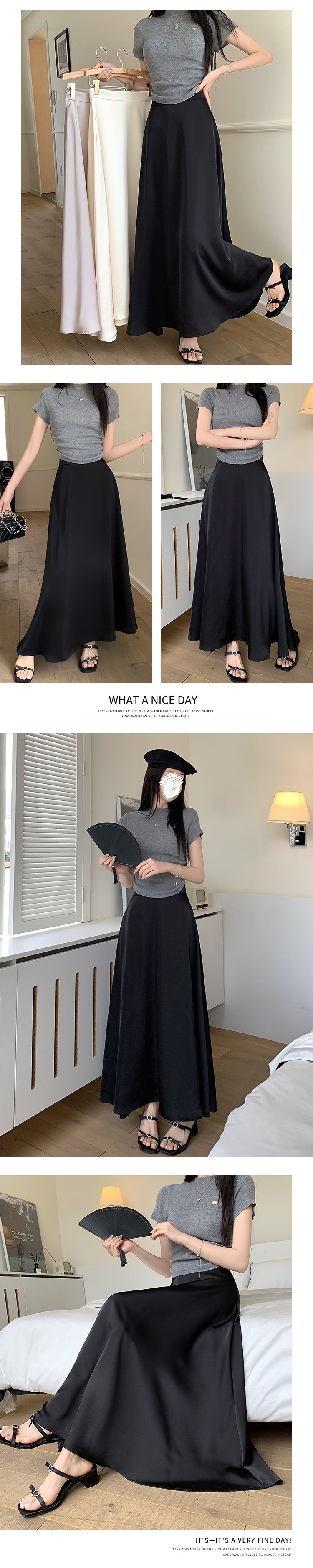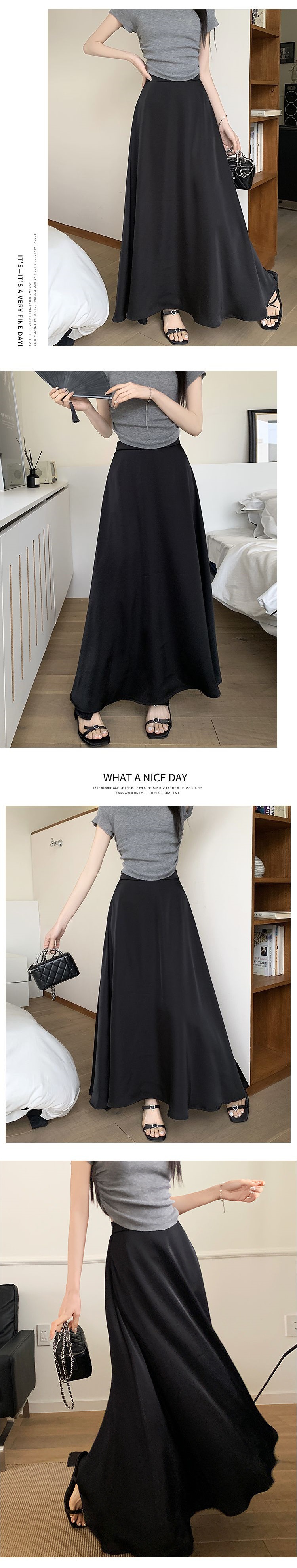 여름 여성을 위한 프렌치 아세테이트 새틴 피쉬테일 스커트 새로운 스타일의 하이웨이스트 힙 커버 슬리밍 드레이프 A라인 롱 스커트스토어 가기