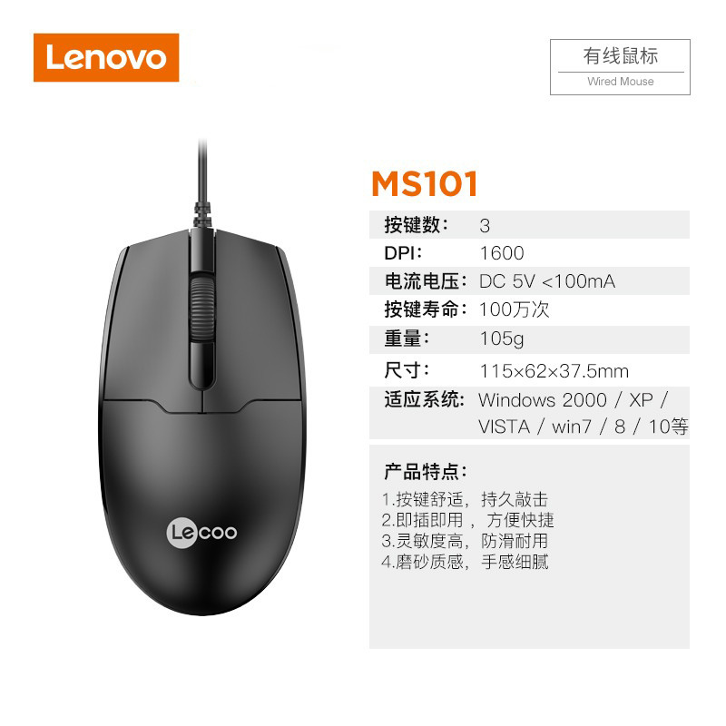 Laiku MS101 유선 광 마우스 USB 노트북 데스크탑 컴퓨터 비즈니스 오피스 게임 범용 마우스