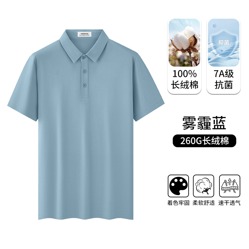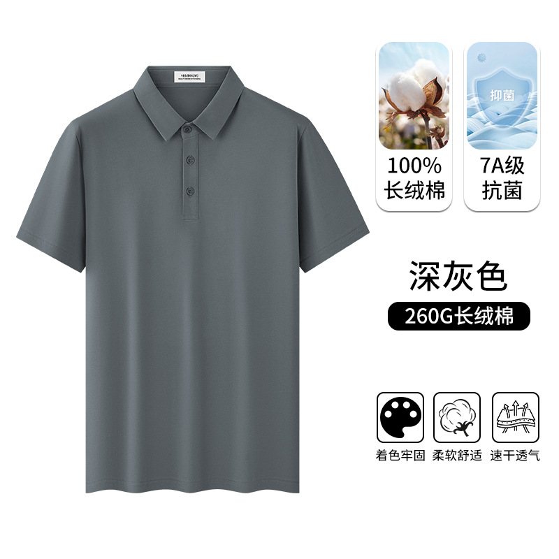 260G 헤비급 순면 폴로 셔츠 남성용 반팔 여름 하이 엔드 반팔 심플 다용도 라펠 티셔츠 반소매