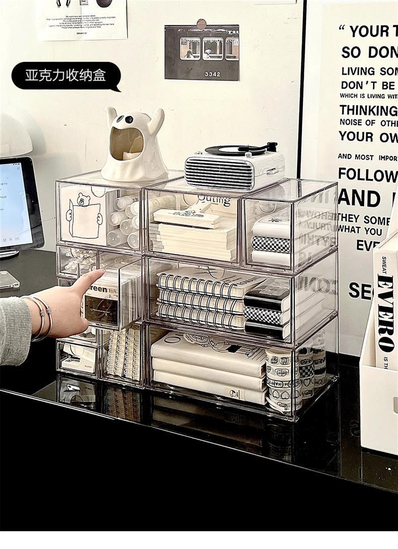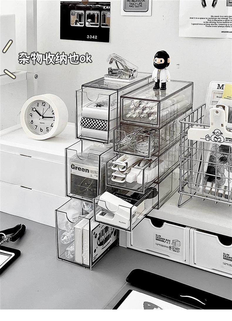 데스크탑 서랍 보관 상자 투명 아크릴 문구류 기타 상자 책상 화장품 마스크 보관 랙 캐비닛스토어 가기