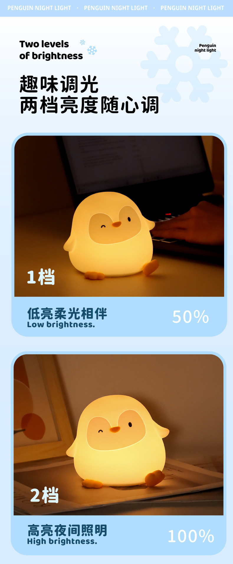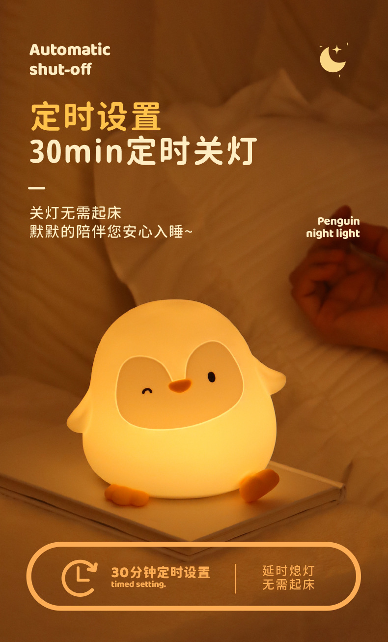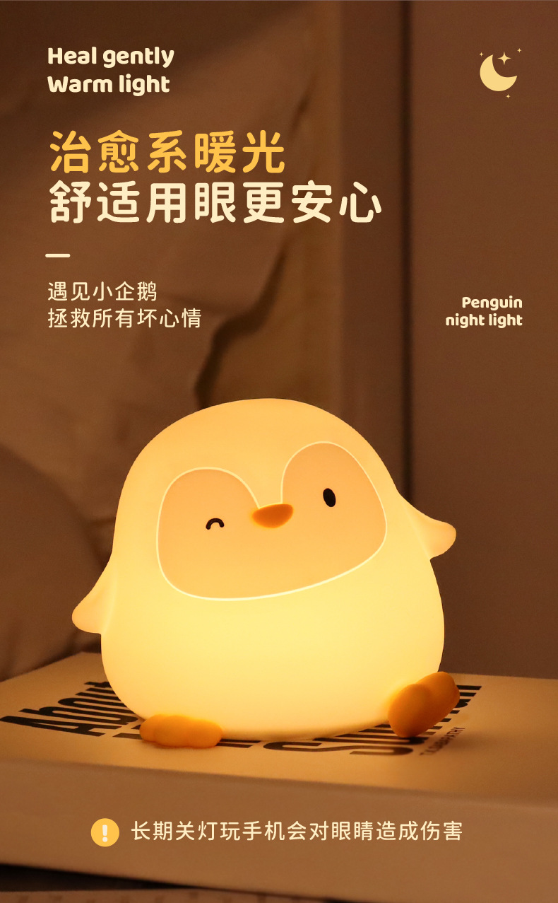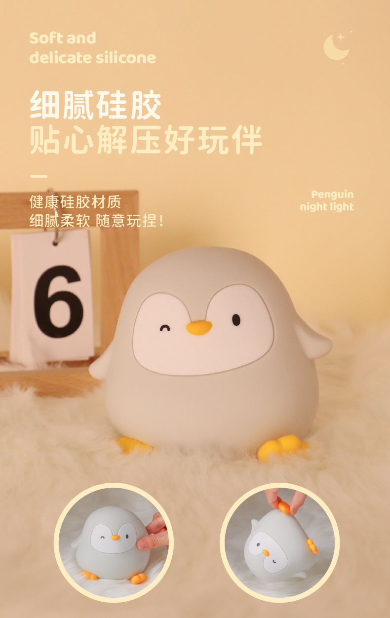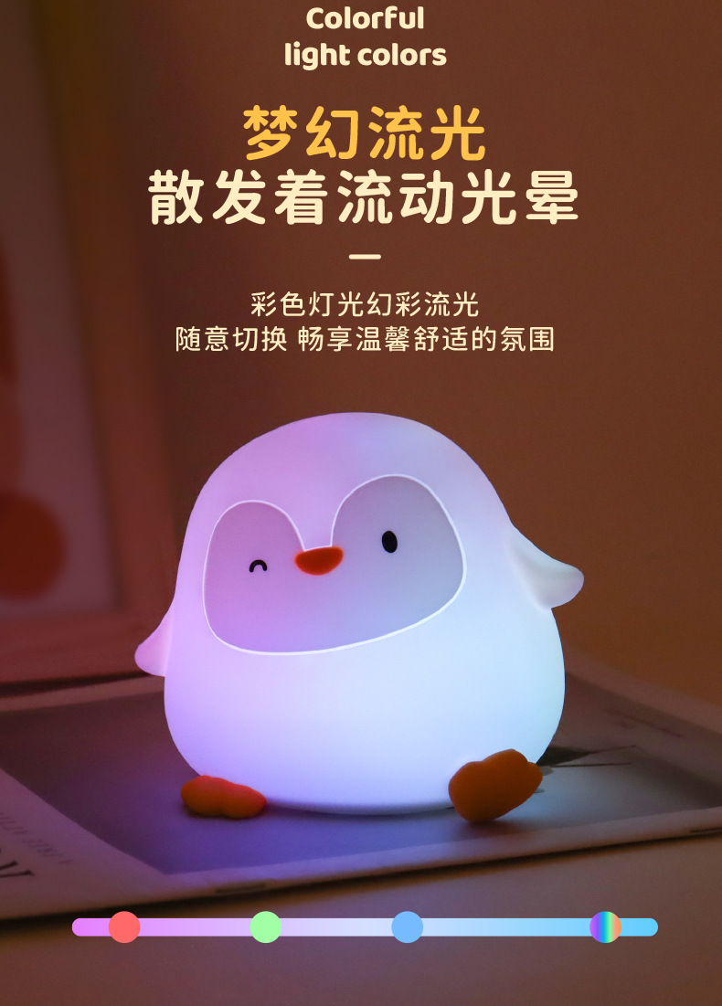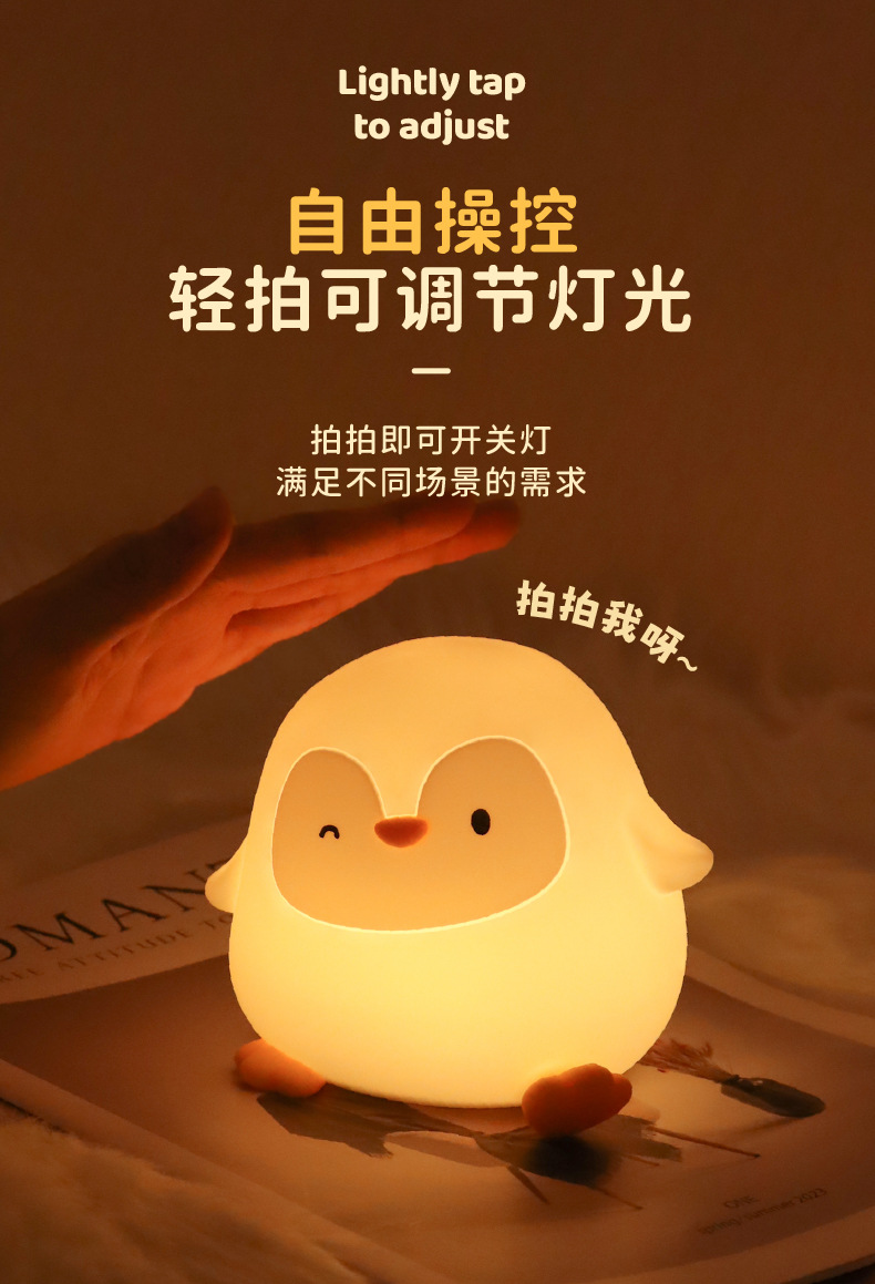 크로스보더 아마존 펭귄 실리콘 무드등 창의적인 분위기 조명 생일 선물 크리스마스 선물 터치 램프스토어 가기