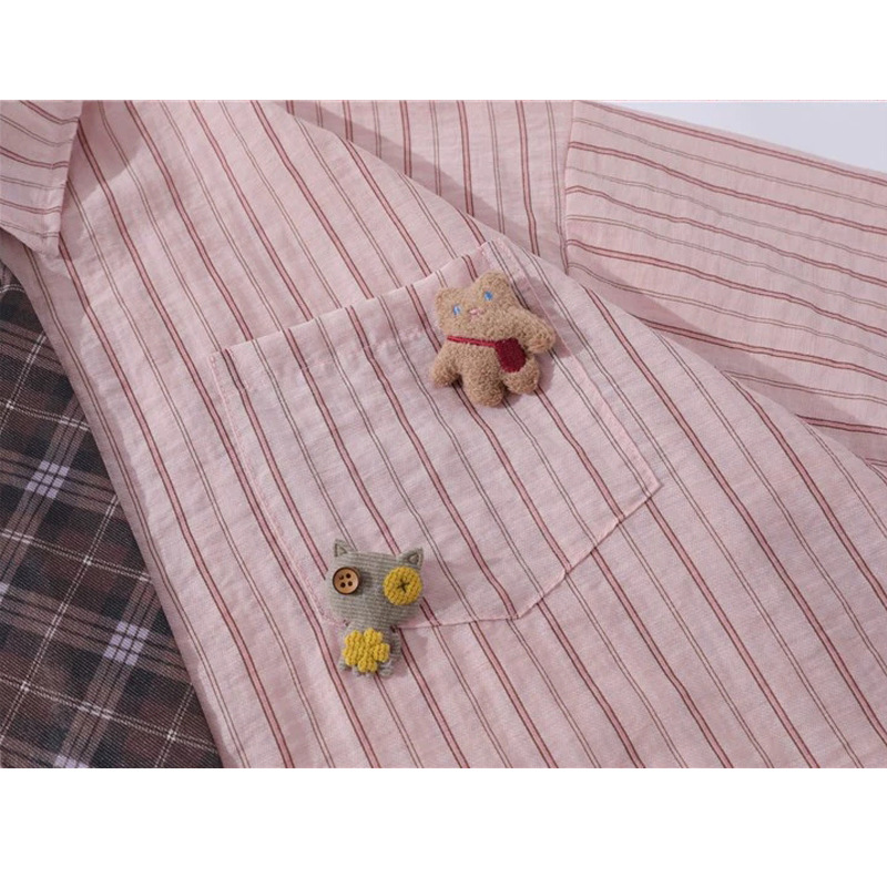 일본 복고풍 대학 스타일 디자인 스트라이프 넥타이 반팔 셔츠 여성 2025 여름 새로운 루즈 탑 트렌드