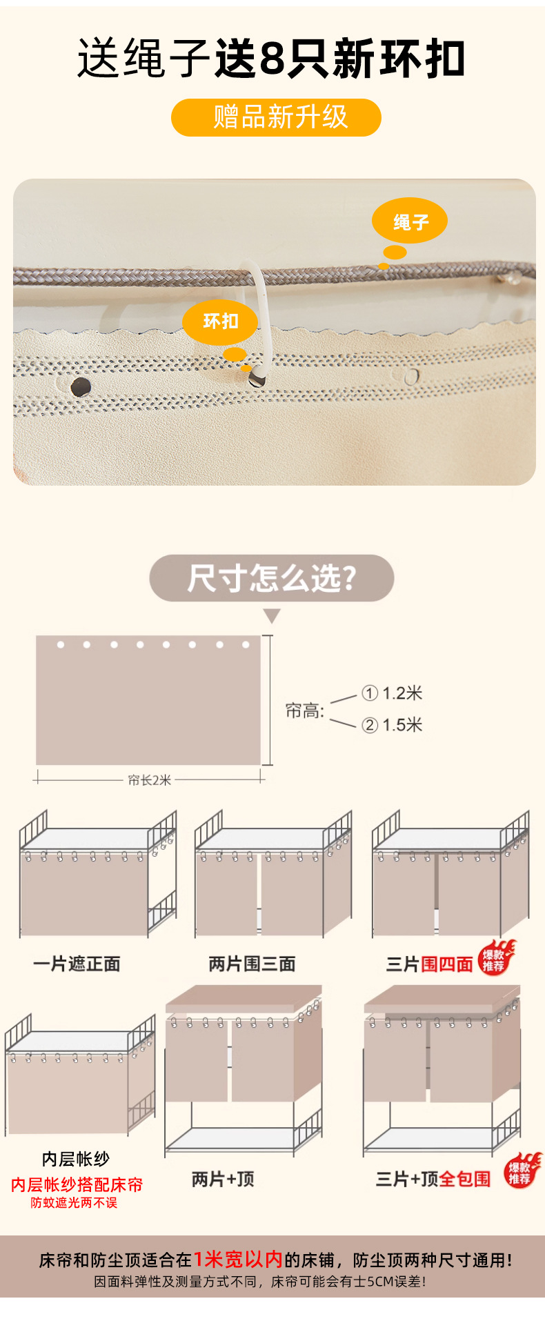 2024년 신입생 기숙사 비통합형 차광 침대 커튼