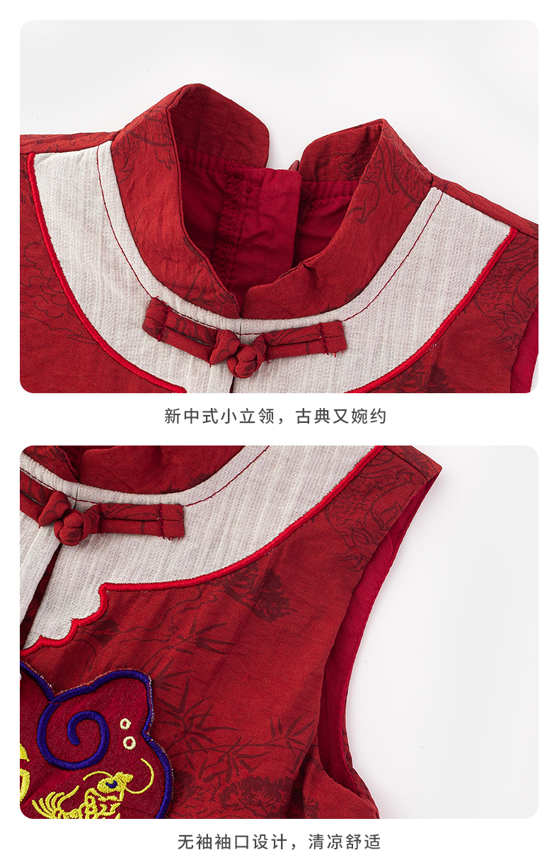 2025 소녀 새로운 중국 빨간 원피스 여름 얇은 공주 원피스 메쉬 국립 스타일 원피스 아기 소녀 5296