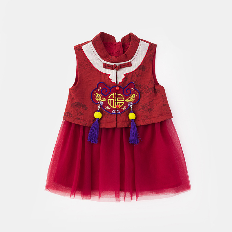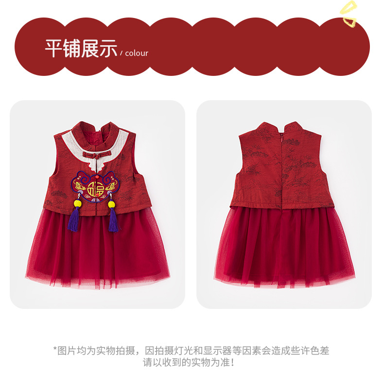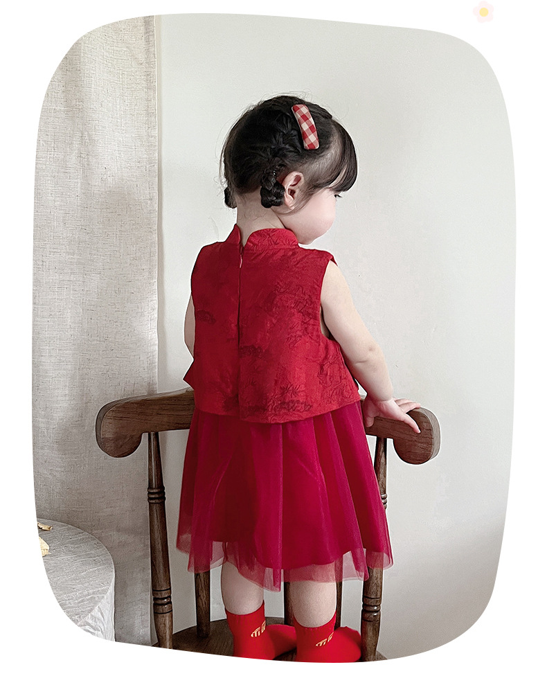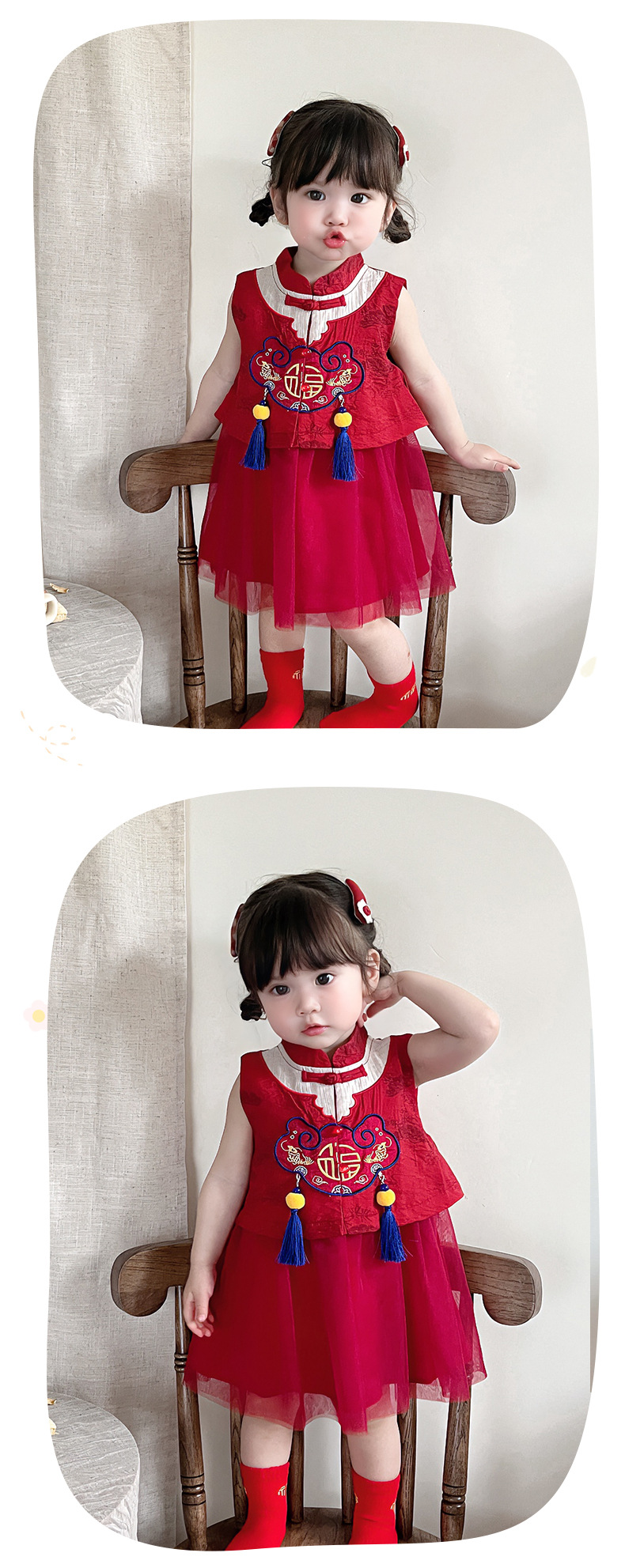2025 소녀 새로운 중국 빨간 원피스 여름 얇은 공주 원피스 메쉬 국립 스타일 원피스 아기 소녀 5296스토어 가기