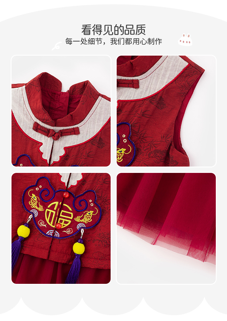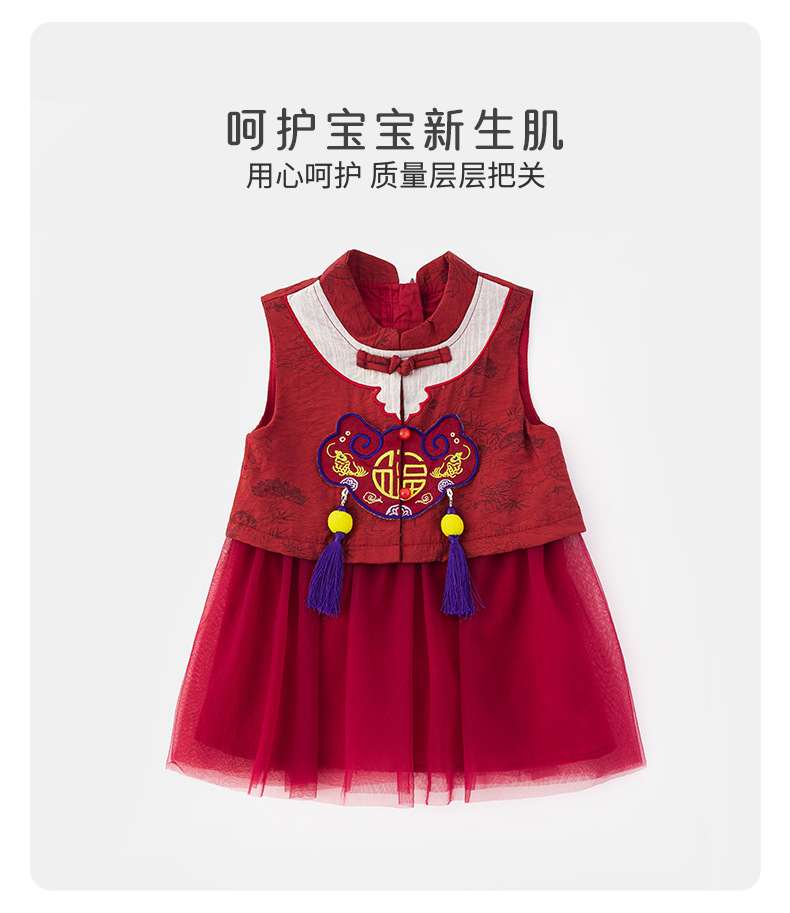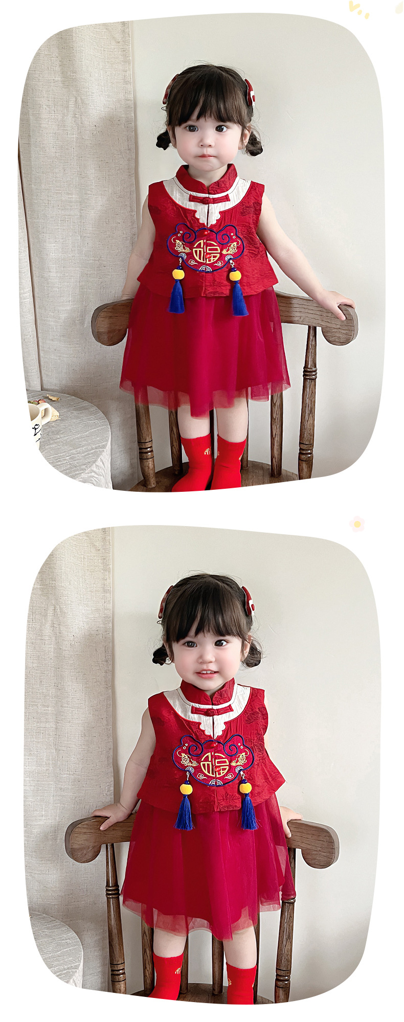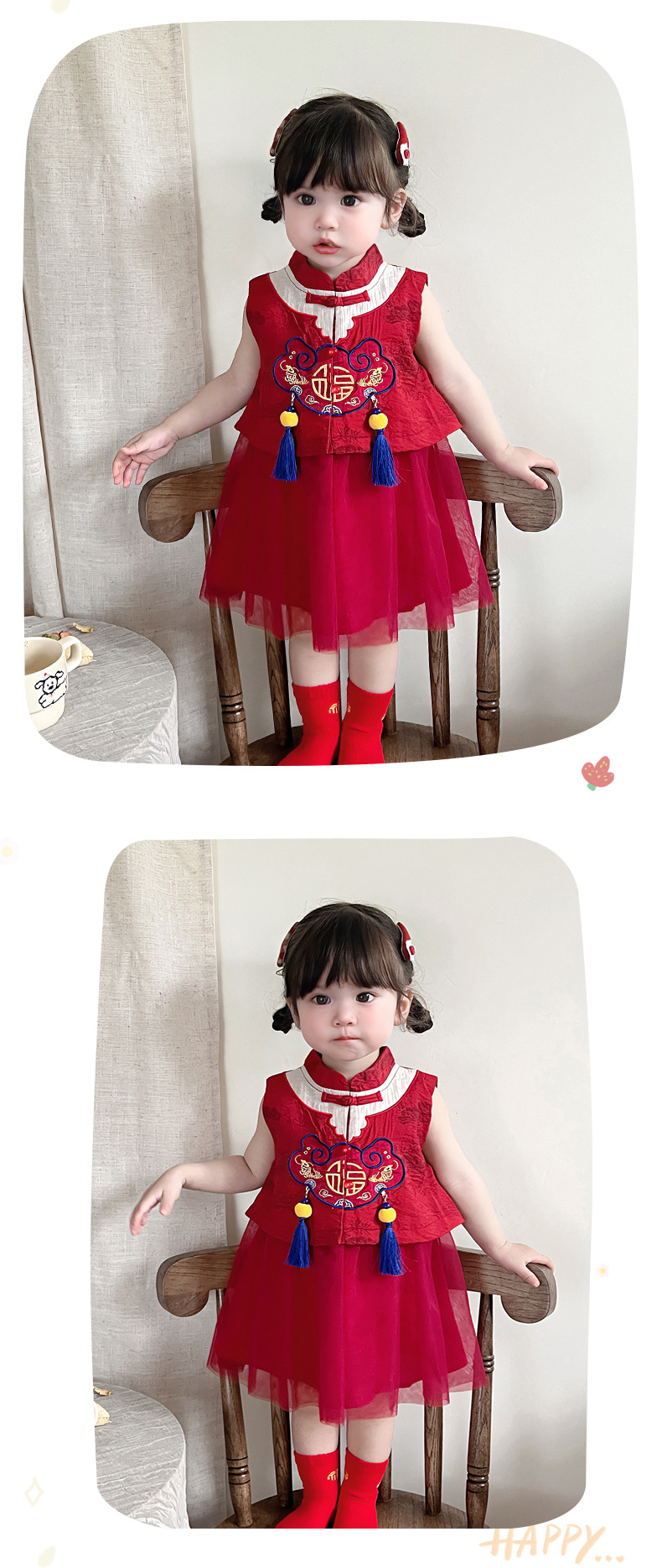 2025 소녀 새로운 중국 빨간 원피스 여름 얇은 공주 원피스 메쉬 국립 스타일 원피스 아기 소녀 5296스토어 가기