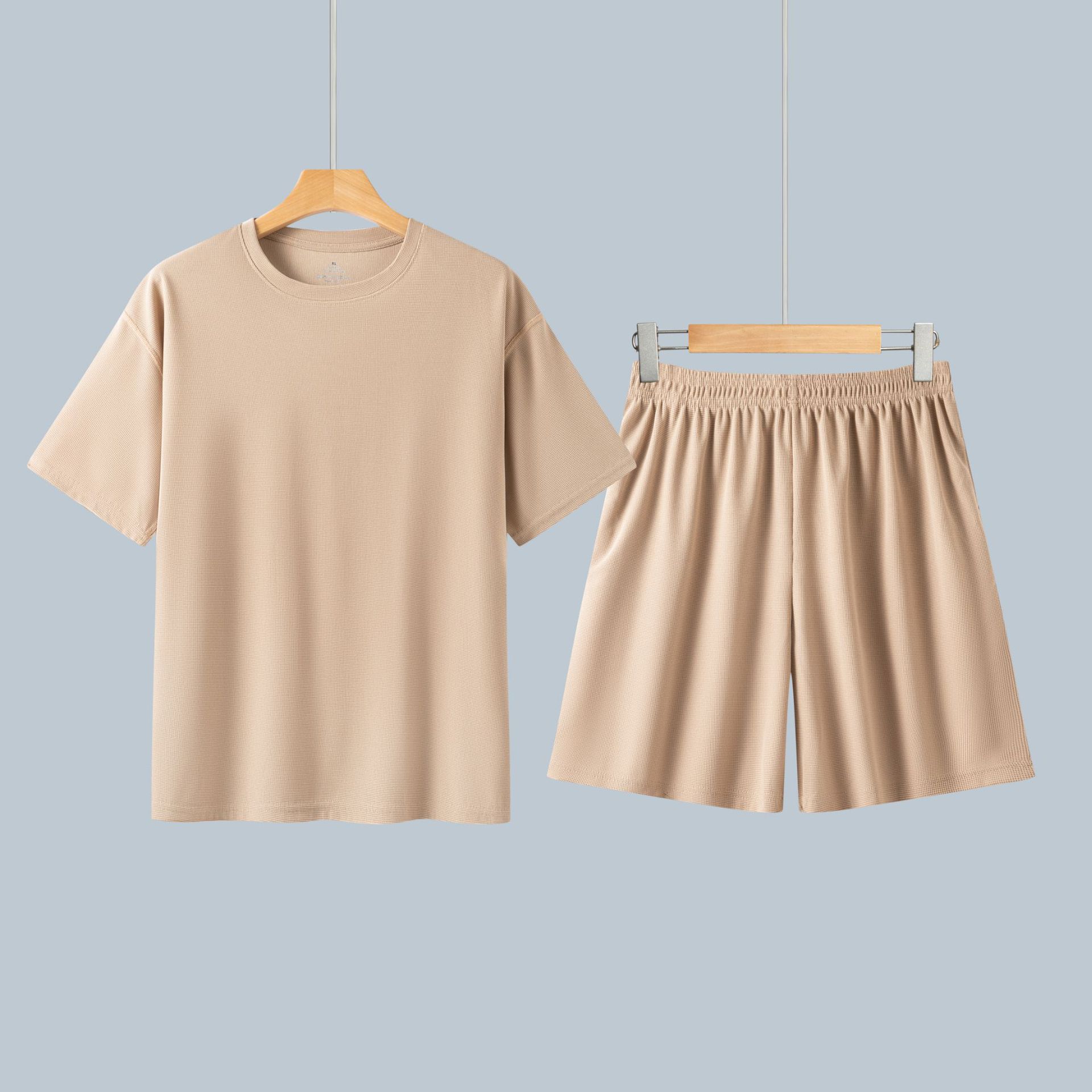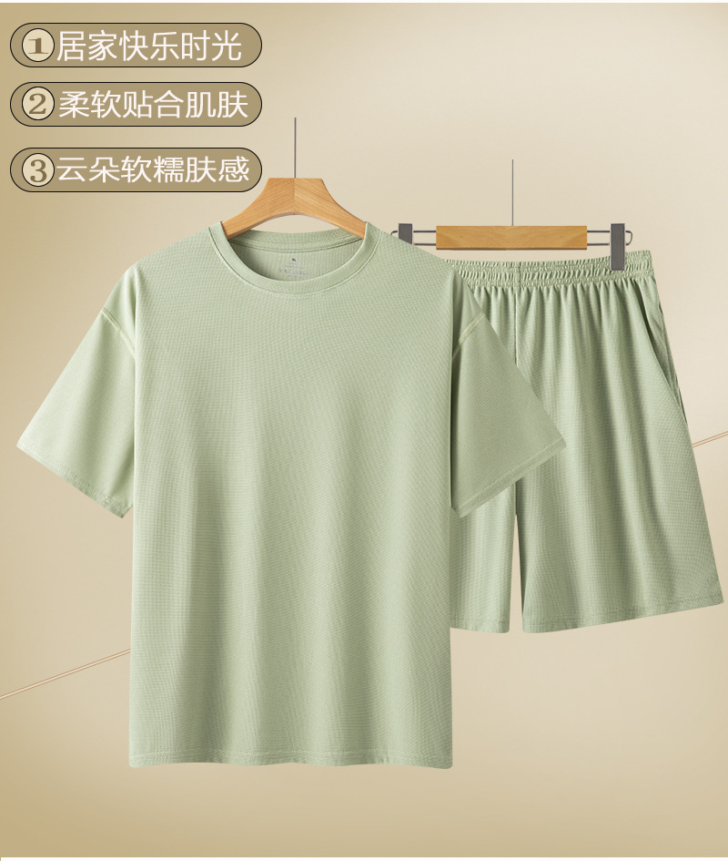 와플 커플 잠옷 봄 여름 신작 남성 및 여성 홈웨어 심플 루즈 캐주얼 야외 스포츠 슈트스토어 가기