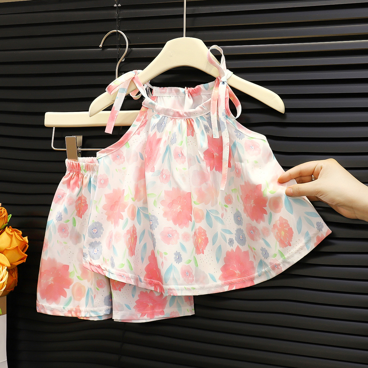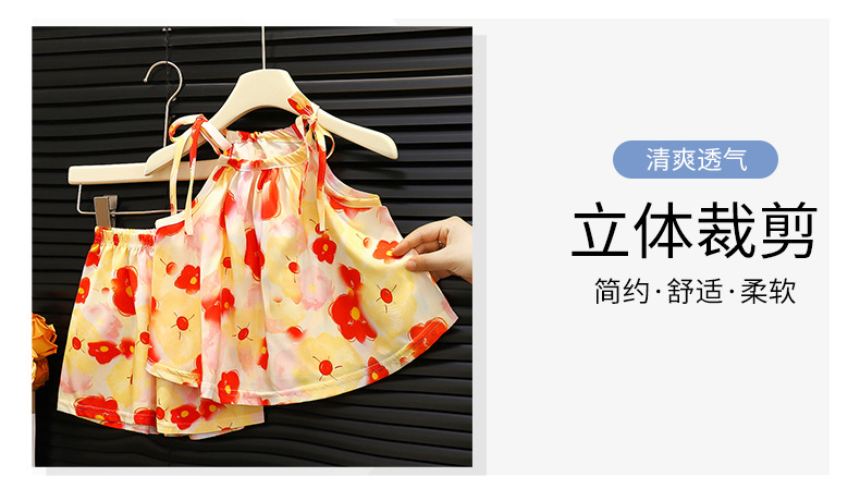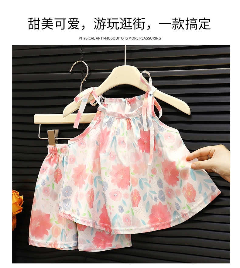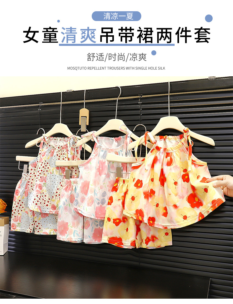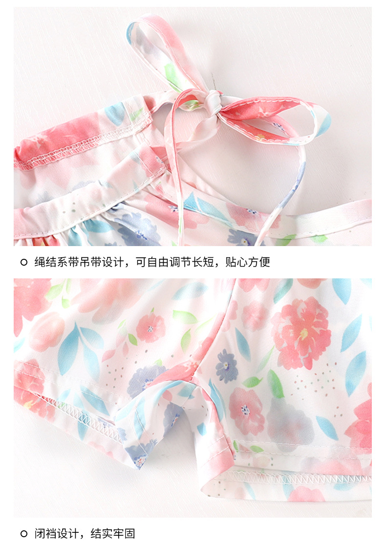 여아 여름 멜빵 원피스 세트 2025 한국 스타일 민소매 프린트 반바지 허리끈 스커트 공주 드레스 유아용스토어 가기