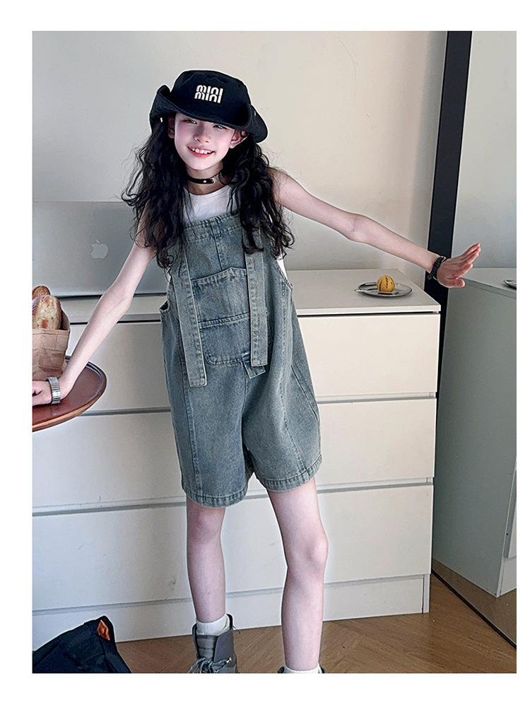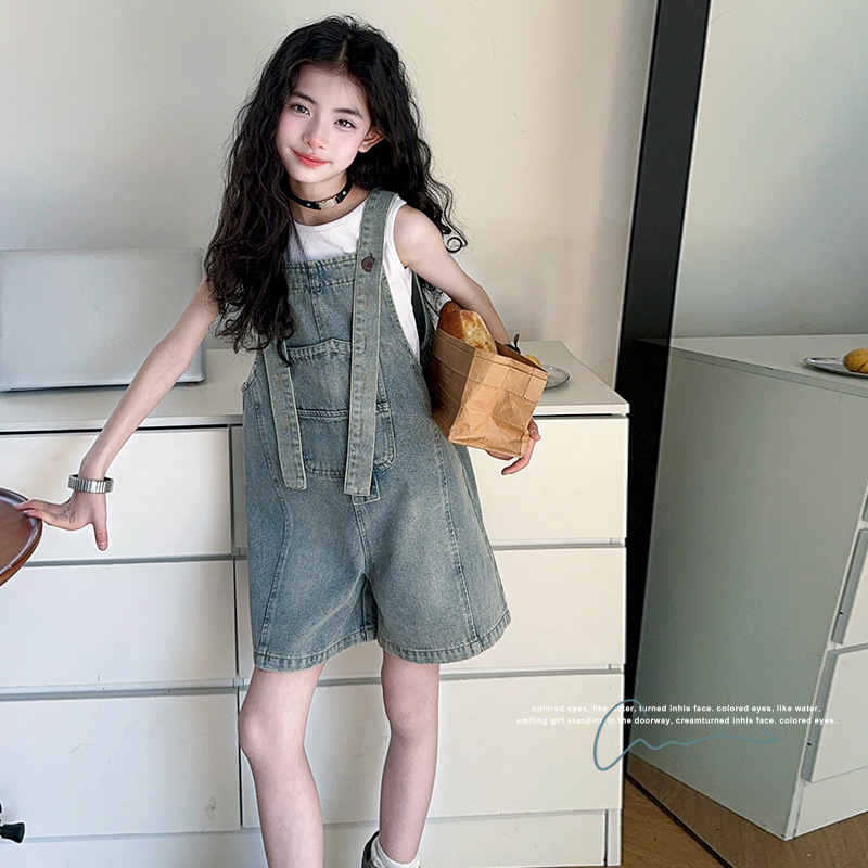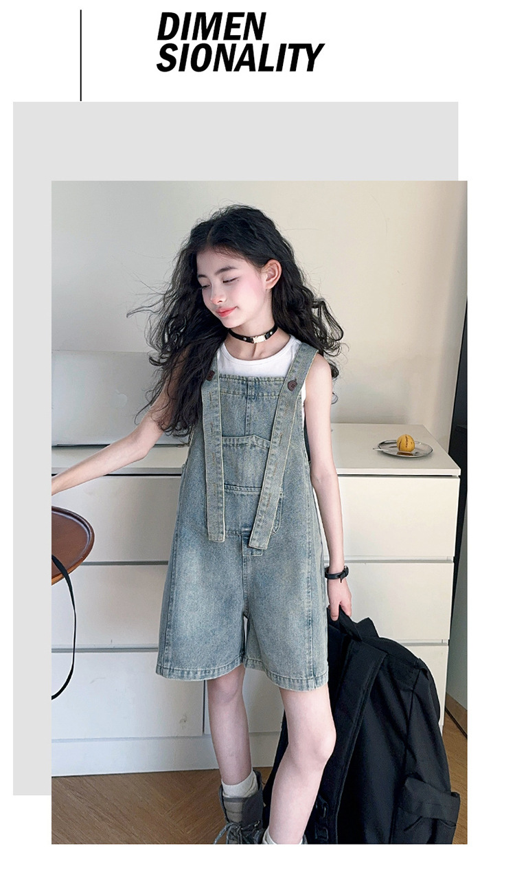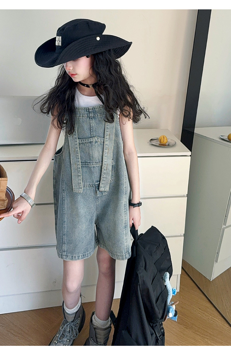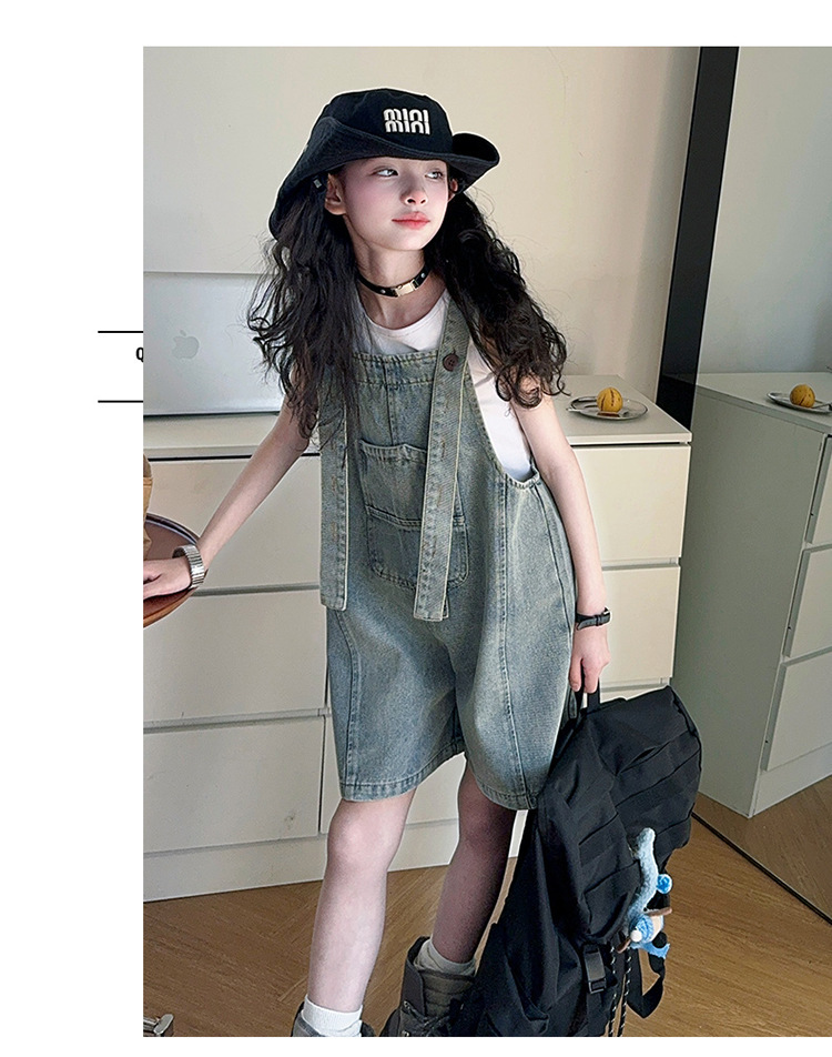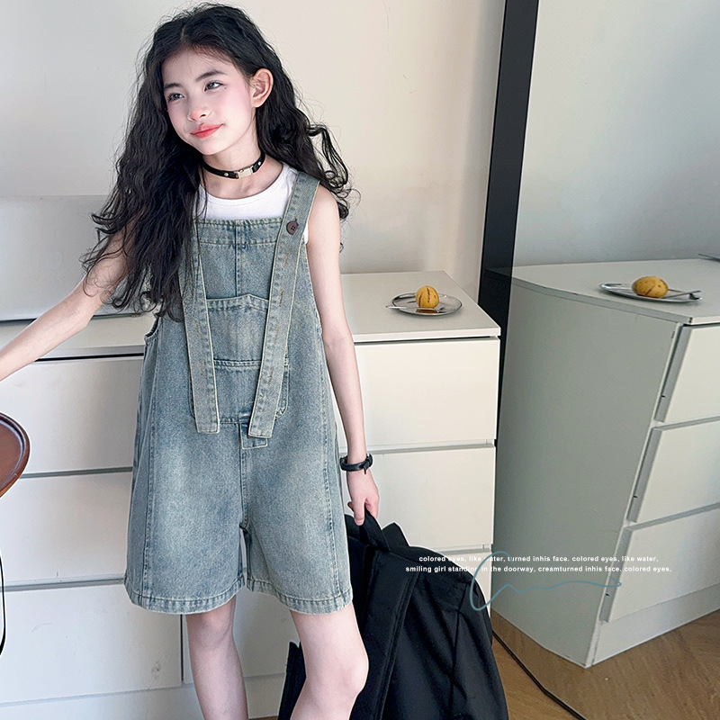 2025 여아 데님 작업복 반바지 여름 새 스타일 여아 한국 스타일 루즈한 중대형 아동 기질 원피스 반바지