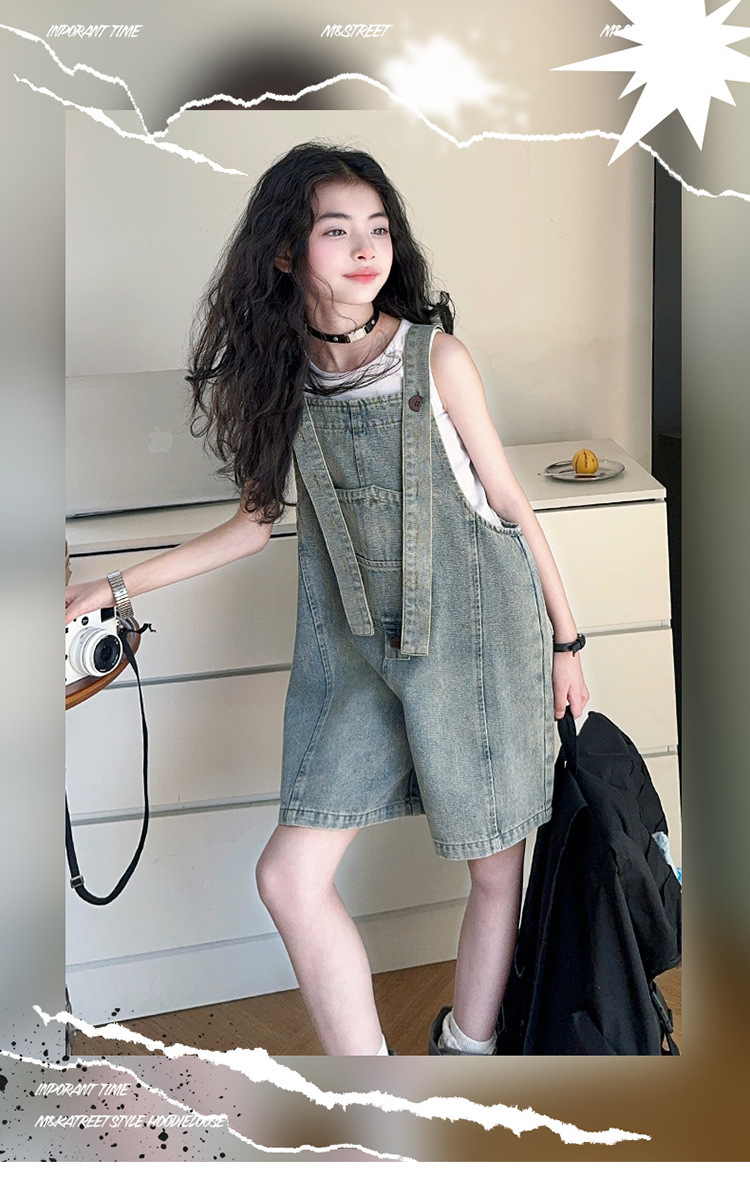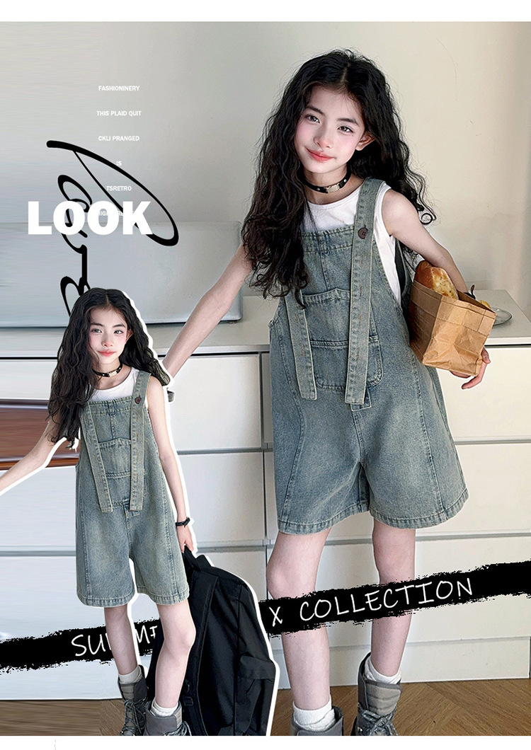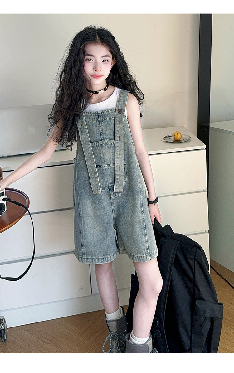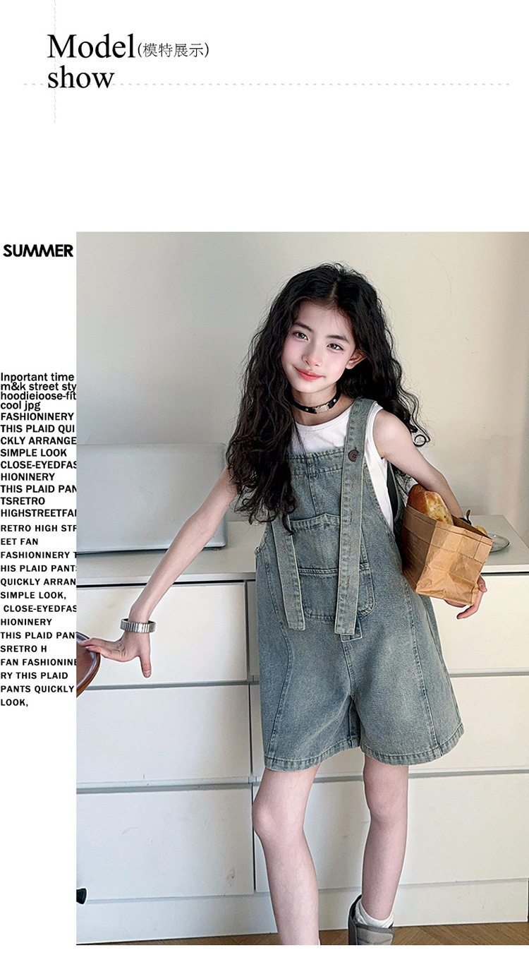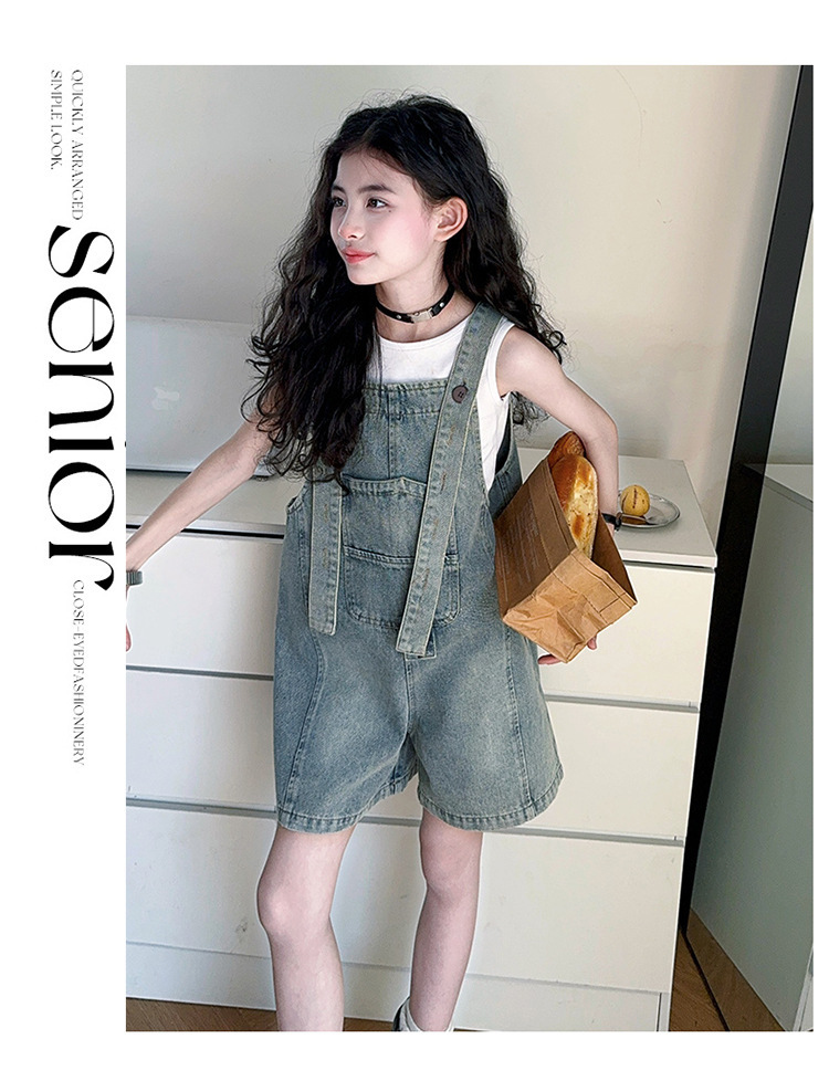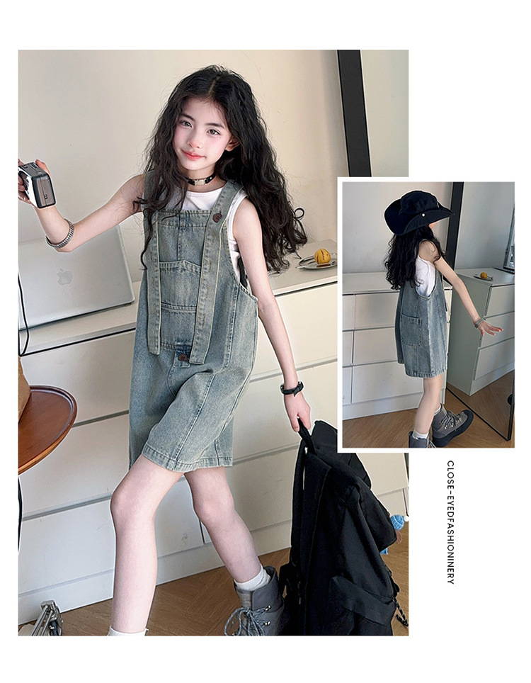 2025 여아 데님 작업복 반바지 여름 새 스타일 여아 한국 스타일 루즈한 중대형 아동 기질 원피스 반바지