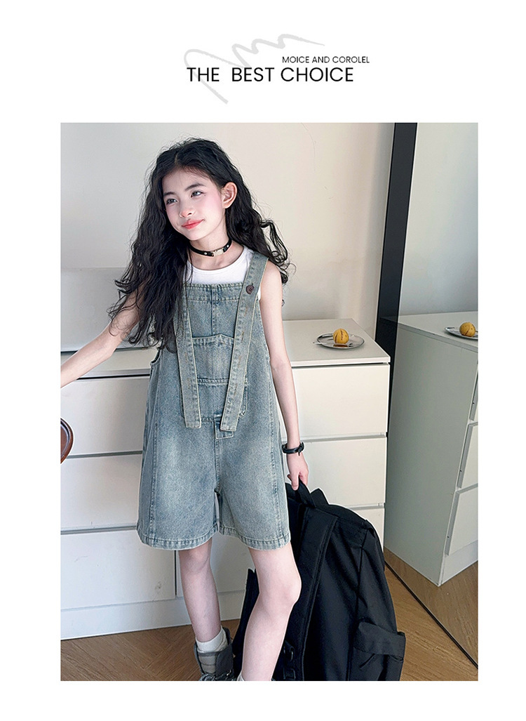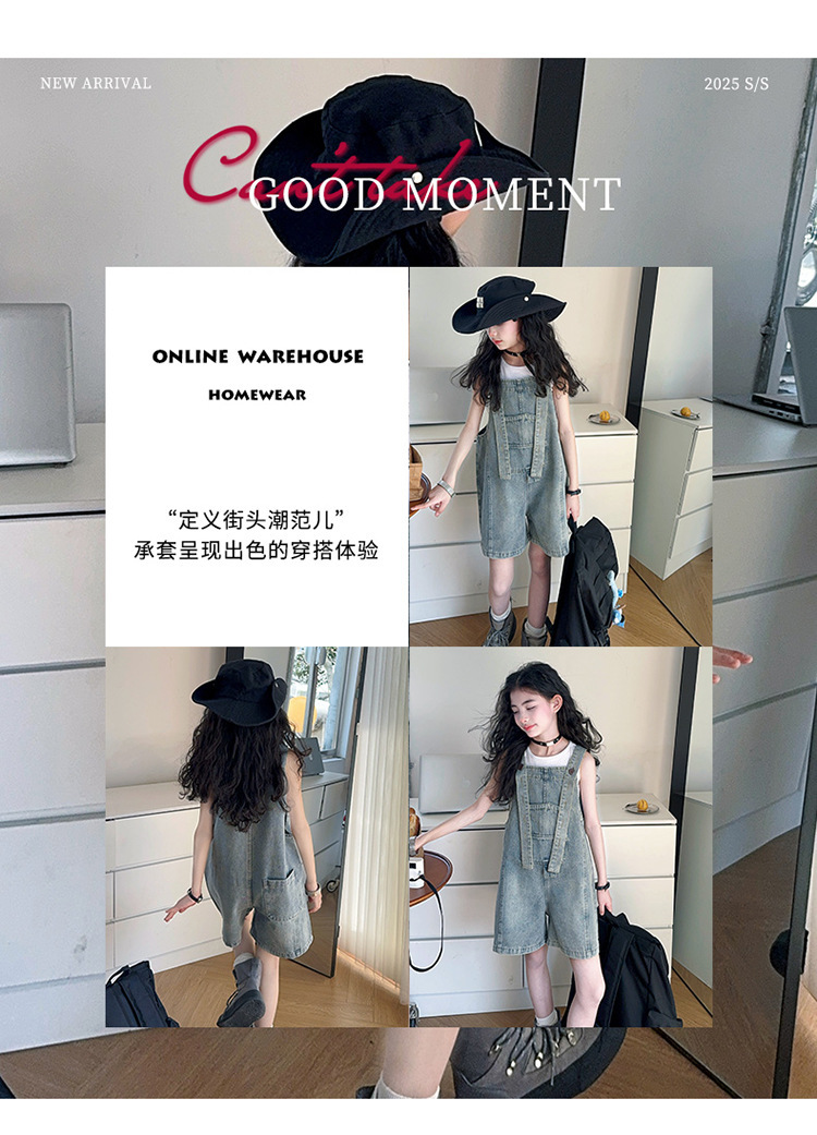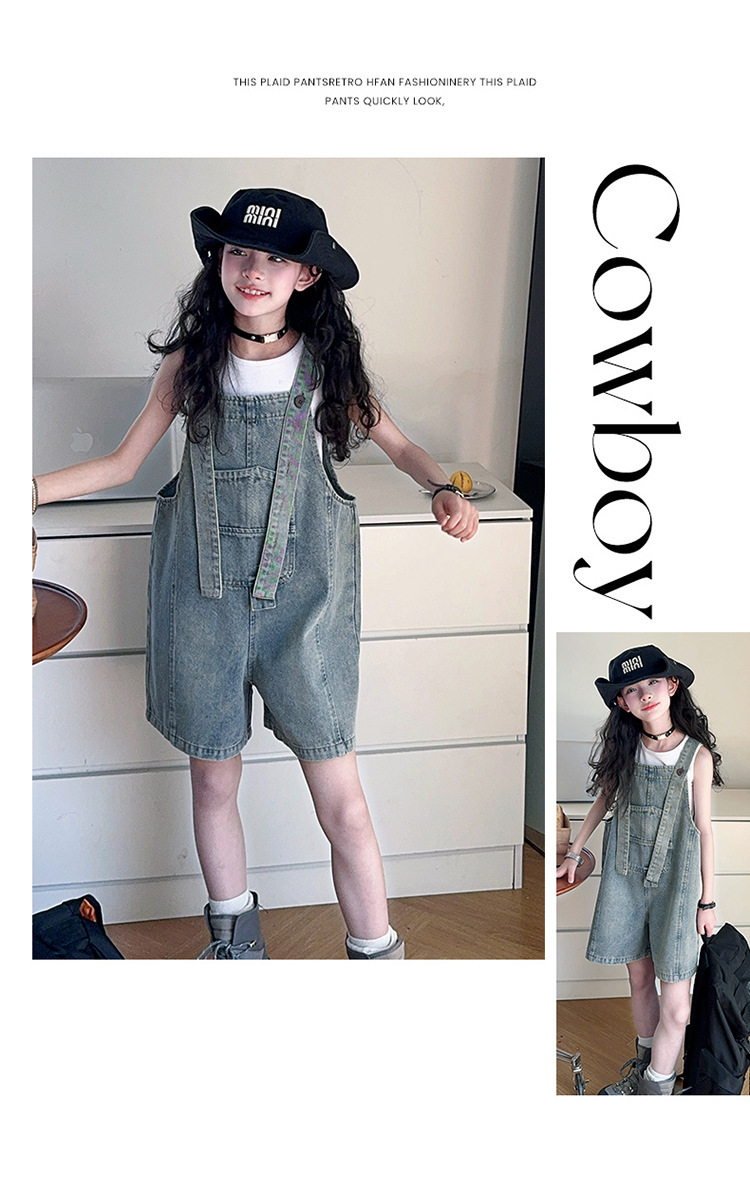 2025 여아 데님 작업복 반바지 여름 새 스타일 여아 한국 스타일 루즈한 중대형 아동 기질 원피스 반바지스토어 가기