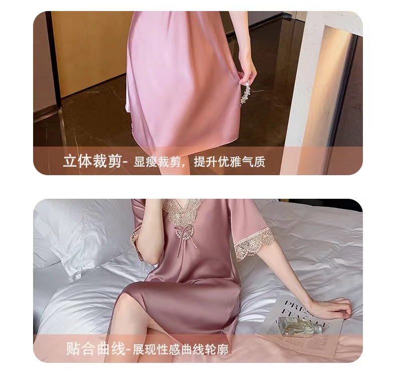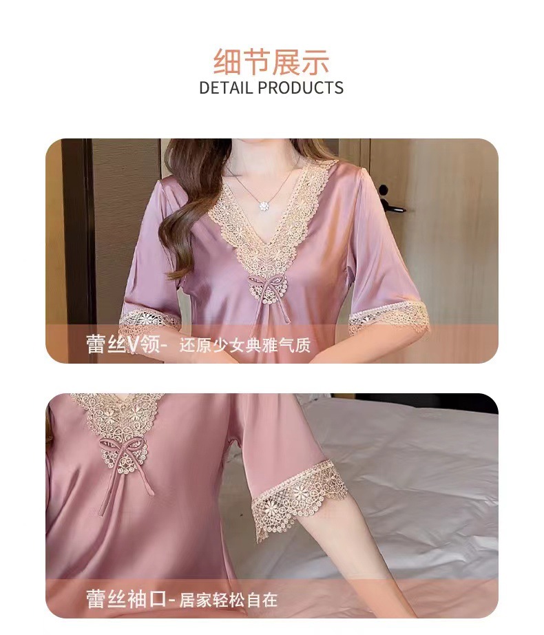 새로운 봄 여름 가을 얇은 실크 반팔 레이스 캐주얼 여성 아이스 실크 홈 의류 풀오버 파자마스토어 가기