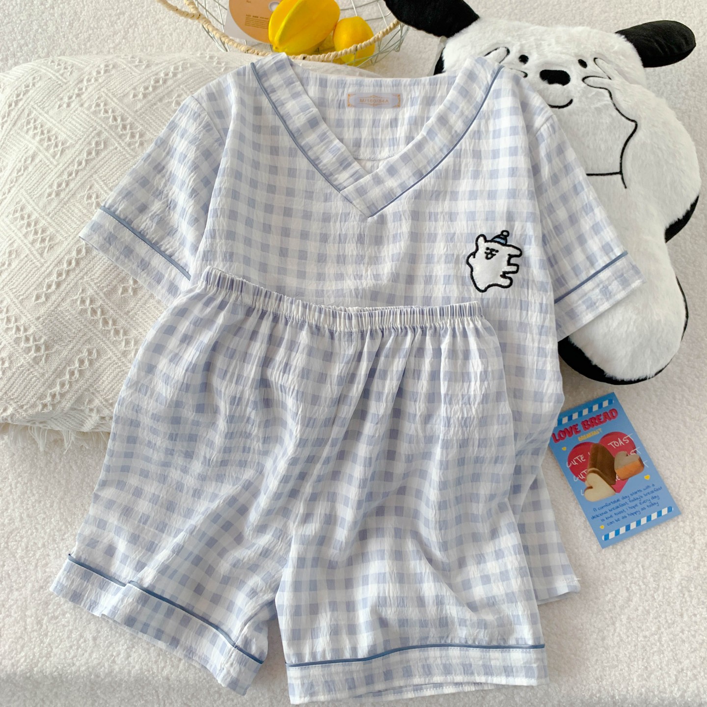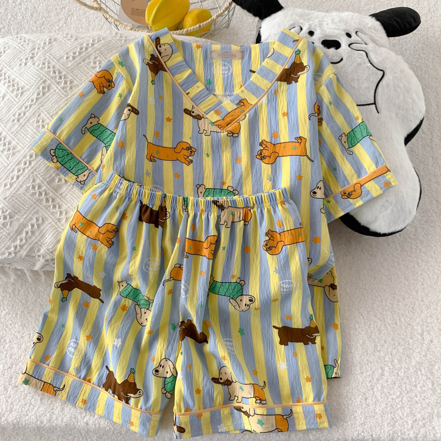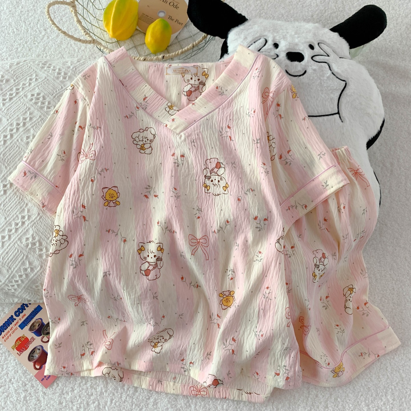 새로운 여름 구름 코튼 파자마 여성 여름 반팔 반바지 귀여운 만화 소녀는 외부 홈 옷을 입을 수 세트스토어 가기