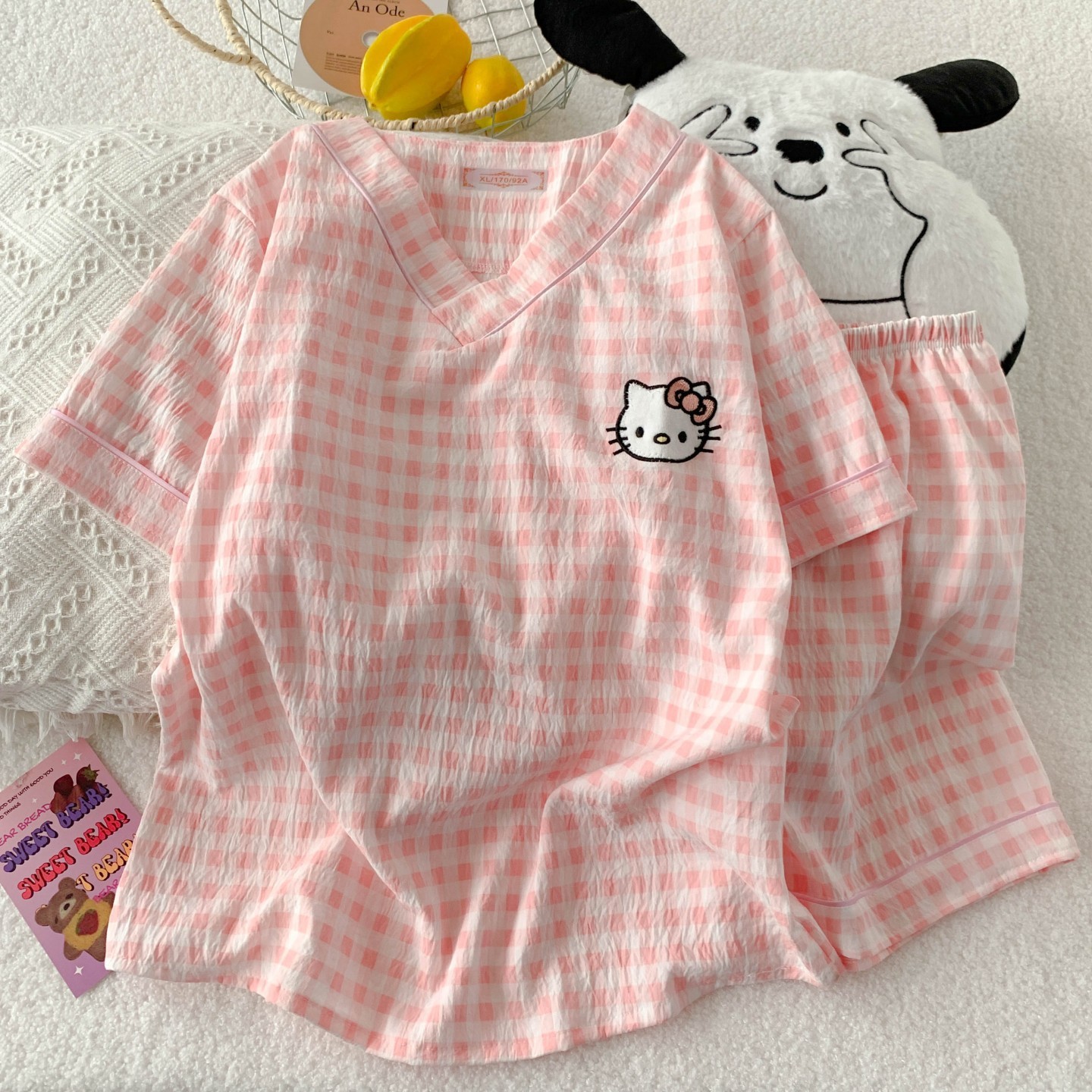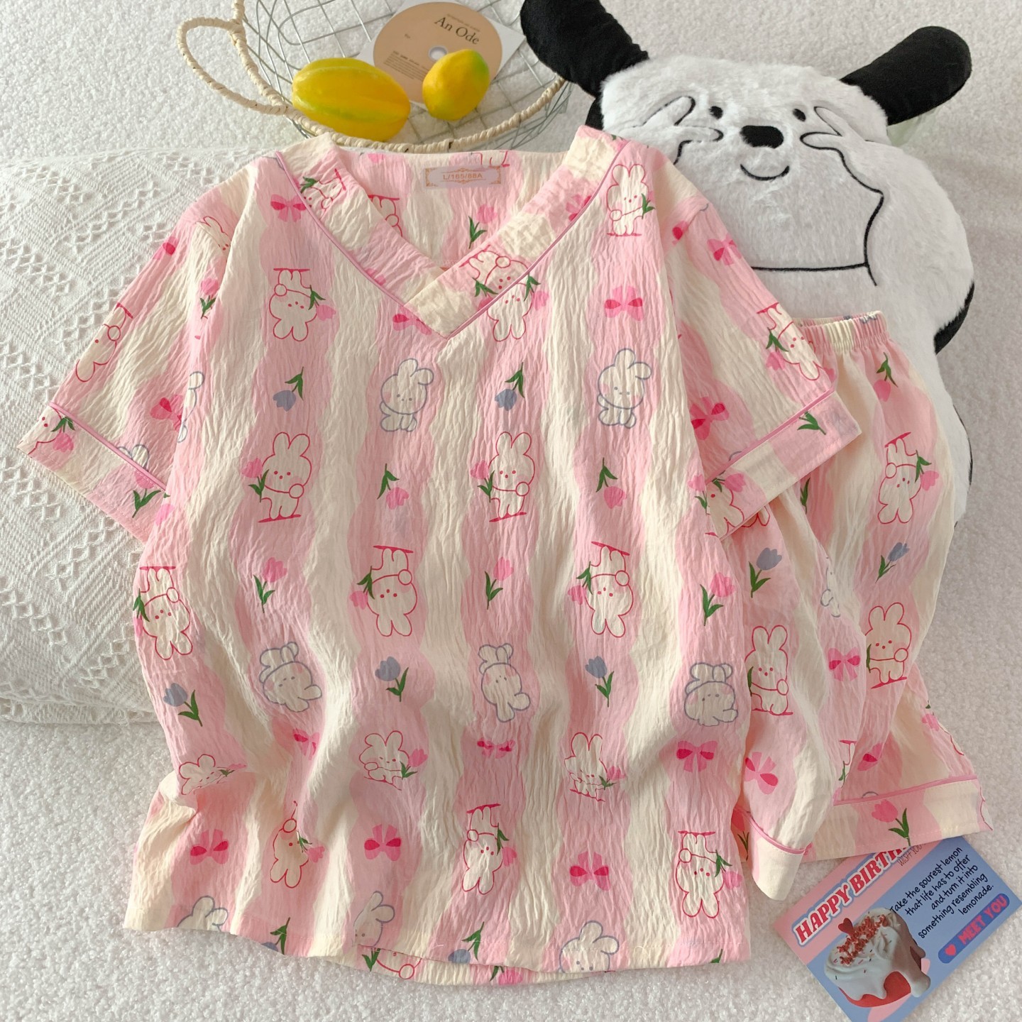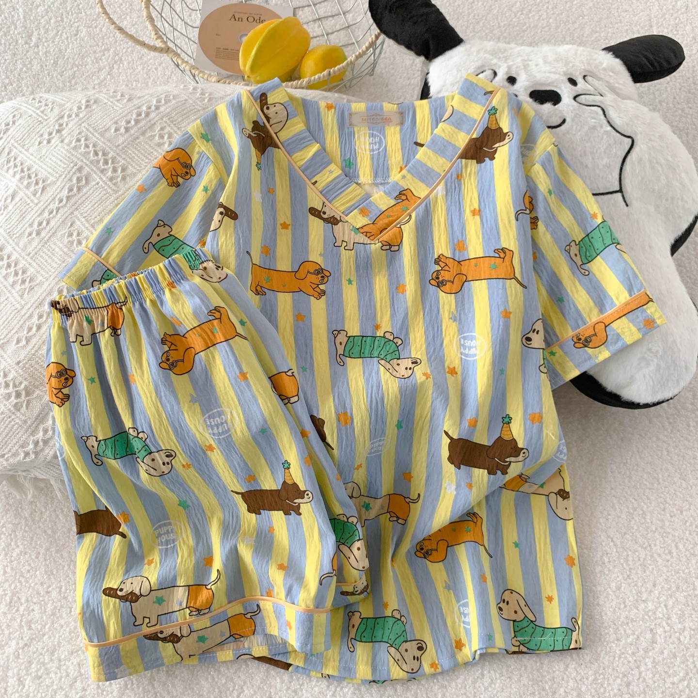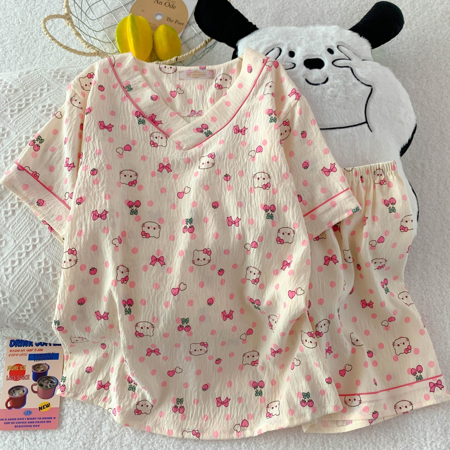 새로운 여름 구름 코튼 파자마 여성 여름 반팔 반바지 귀여운 만화 소녀는 외부 홈 옷을 입을 수 세트스토어 가기