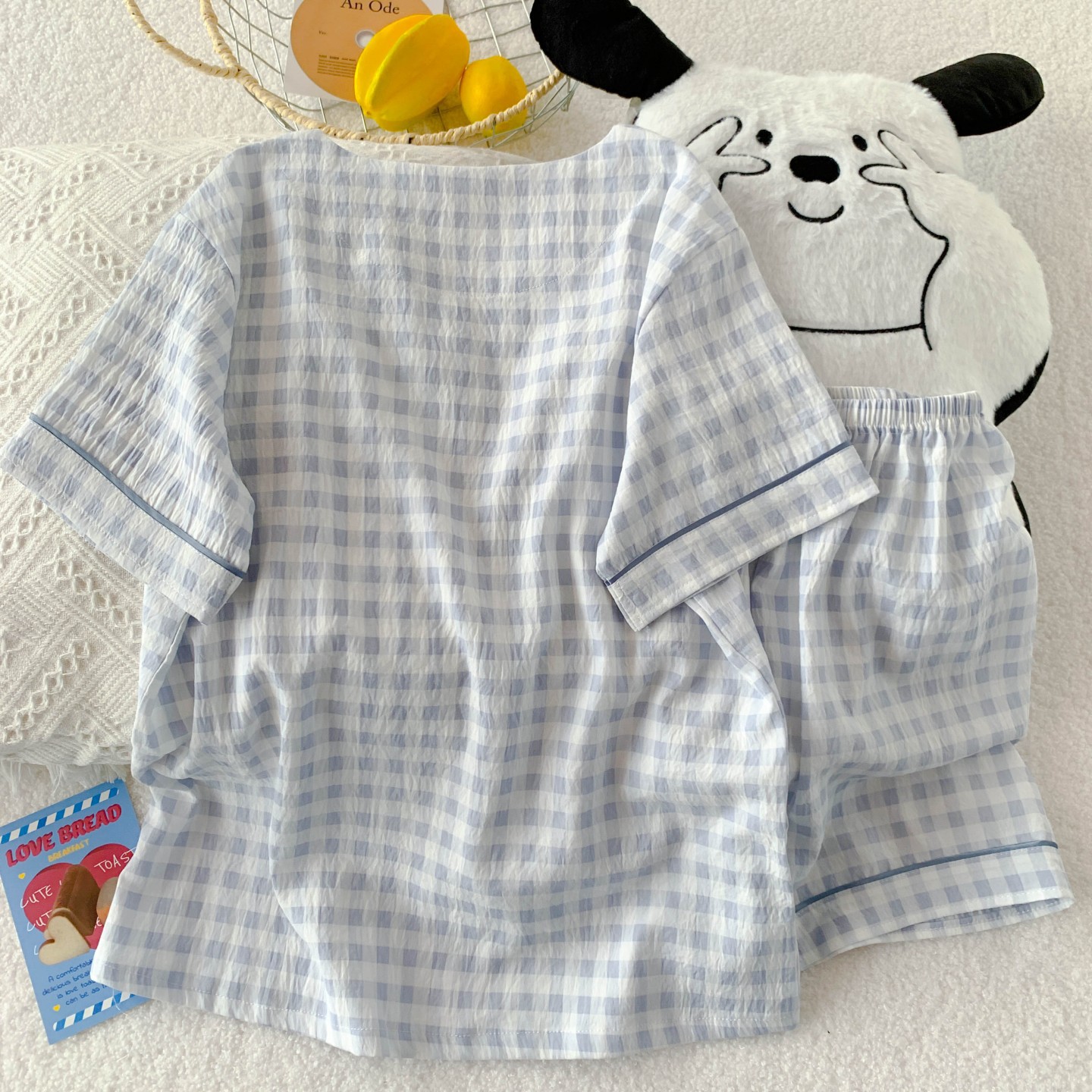 새로운 여름 구름 코튼 파자마 여성 여름 반팔 반바지 귀여운 만화 소녀는 외부 홈 옷을 입을 수 세트