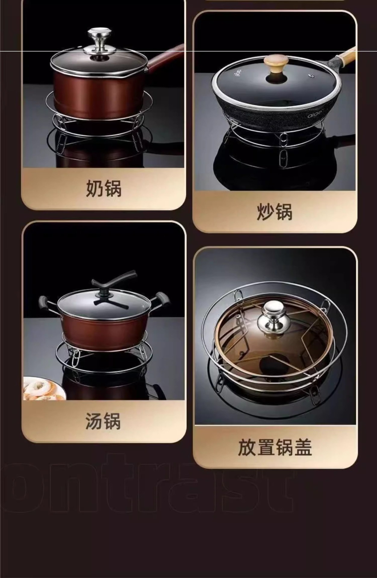 스테인레스 스틸 포트 랙 주방 가정용 스토리지 랙 팟 뚜껑 단열 방지 냄비 홀더 냄비 홀더 스팀 랙 보관스토어 가기